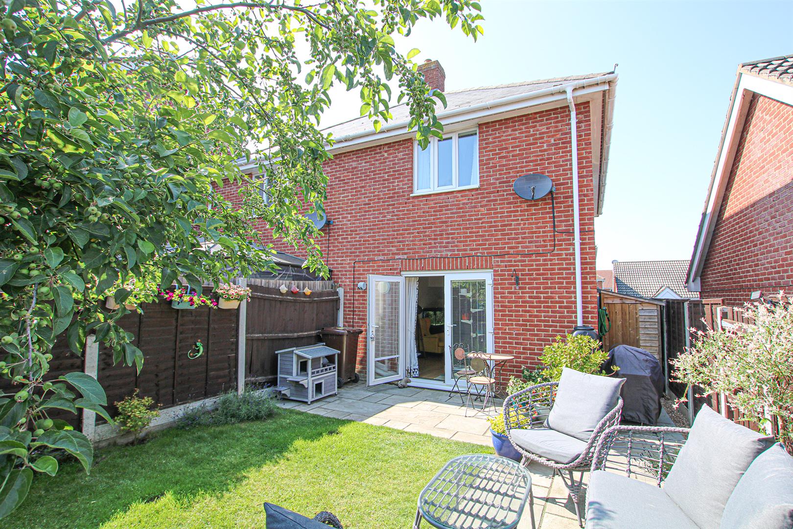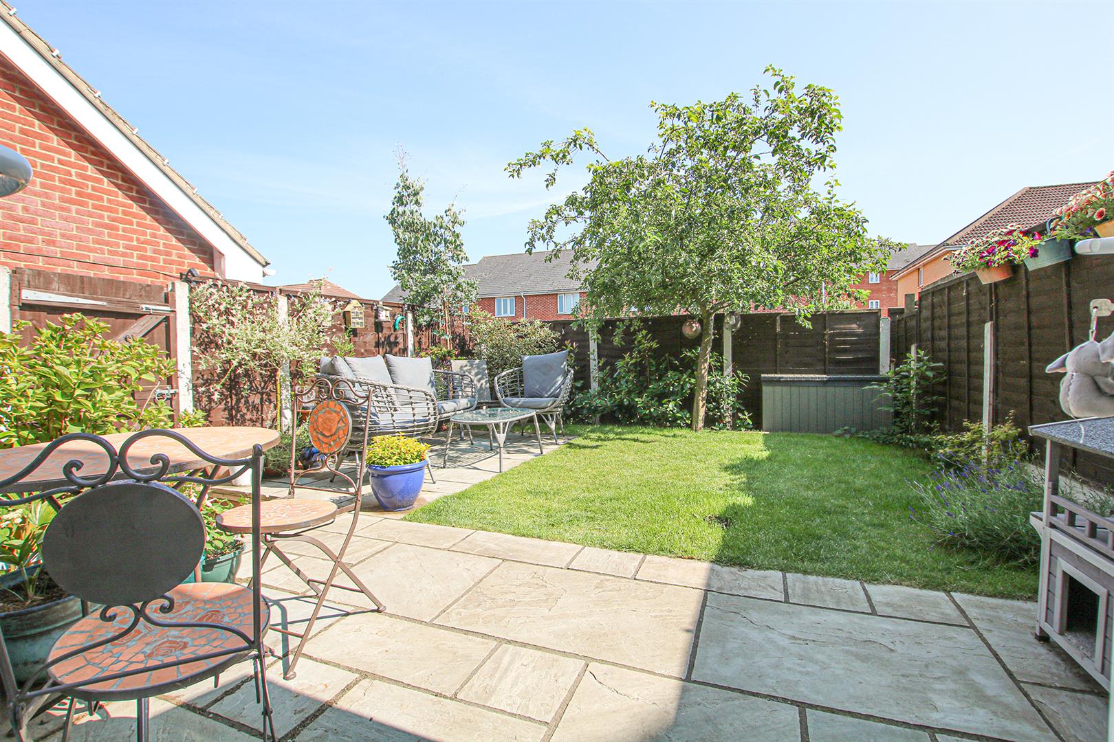 Delightful rear garden with flagstone patio area to the rear of the house, French doors leading to living/dining room. Lawned area with some mature shrub and tree planting. Timber shed. Outside tap. Side access gate.