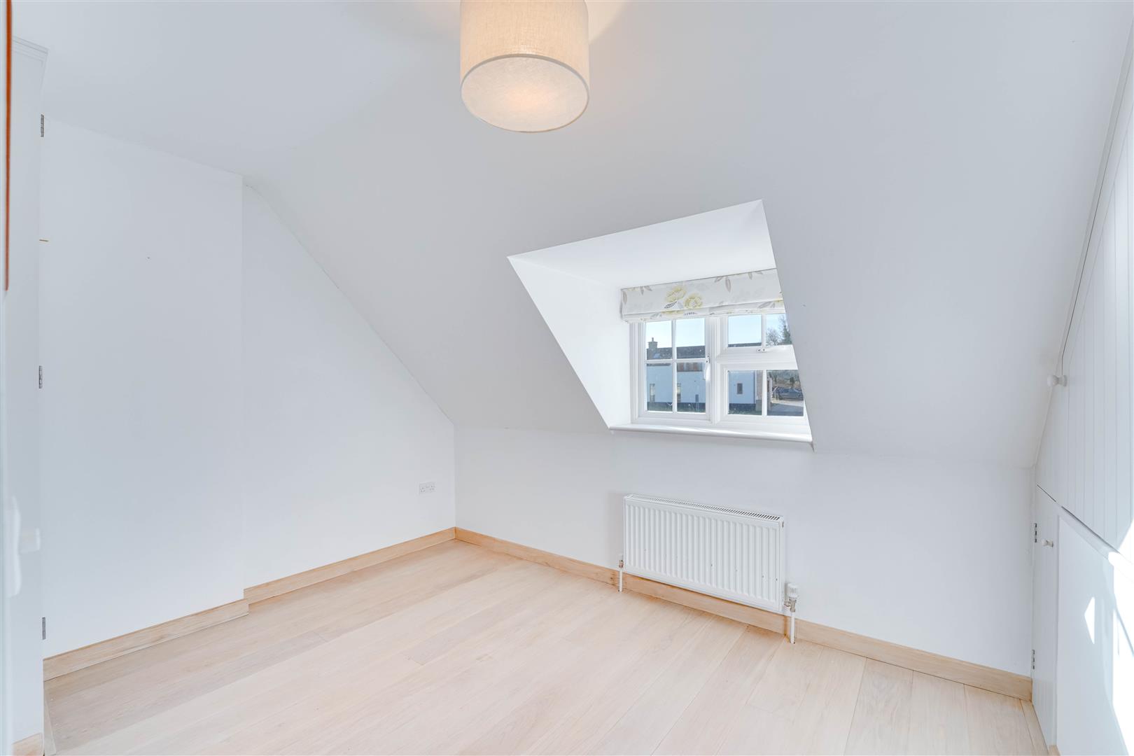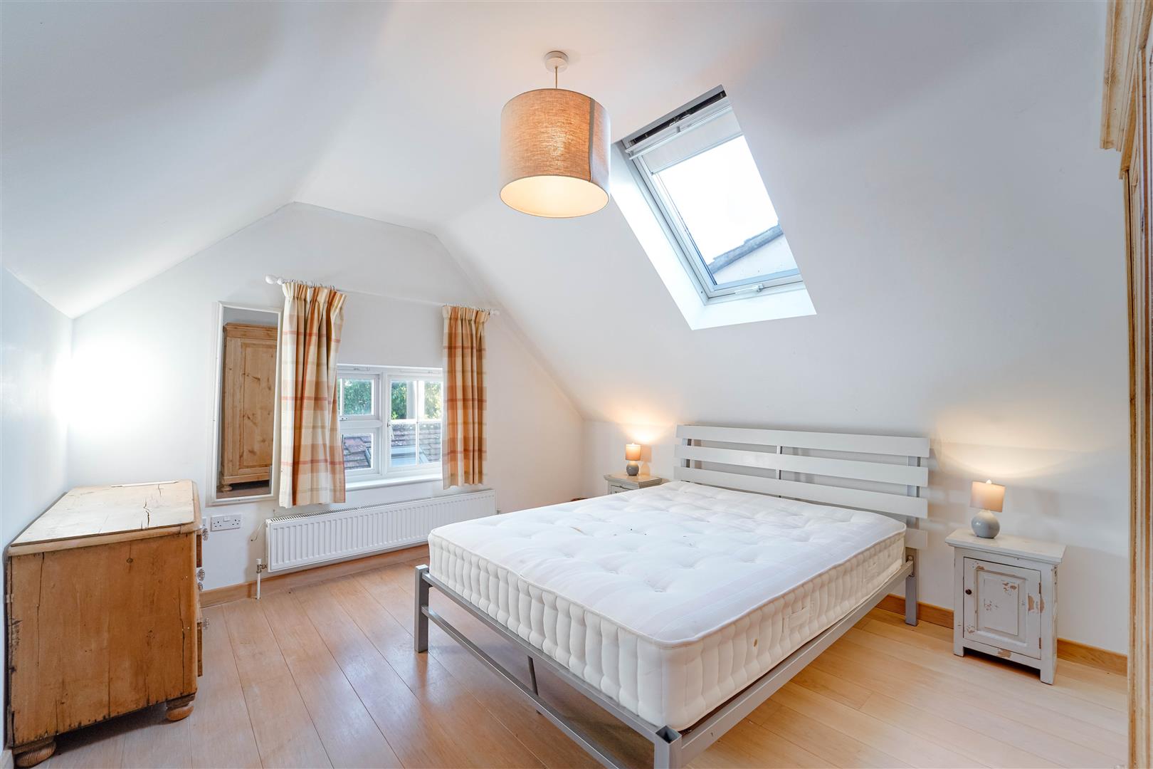 Double bedroom with eaves storage, laid wooden flooring, radiator, skylight and window to the rear aspect.