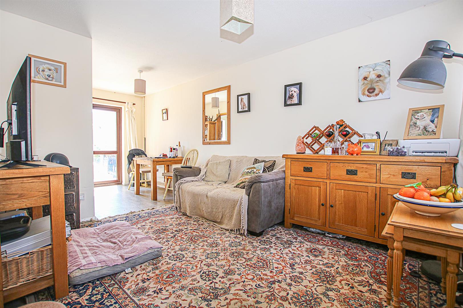 Good sized lounge/diner with TV connection point, laid wooden style flooring, radiators, staircase rising up to the first floor with storage cupboard under, window to the front aspect and rear external door. Opening through to the: