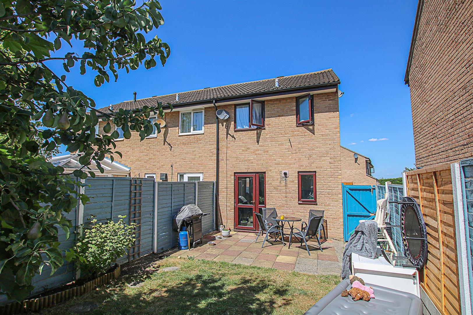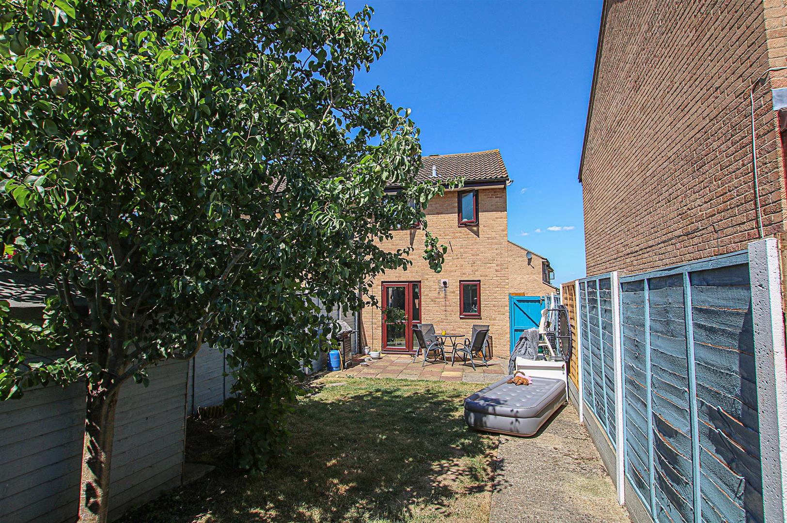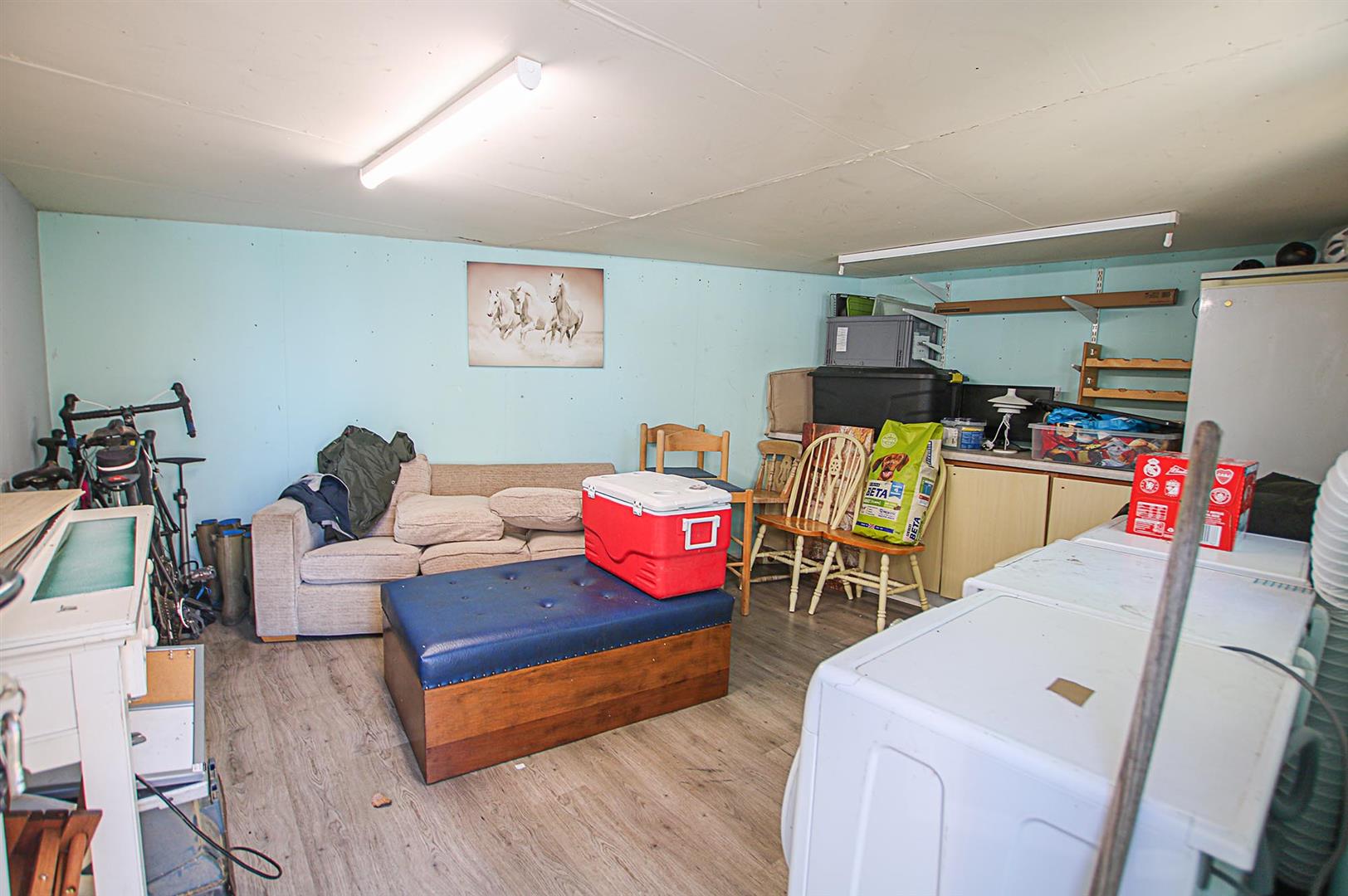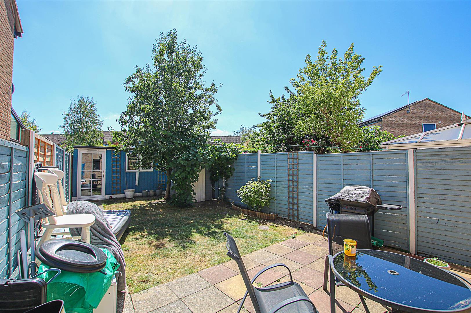 Enclosed rear garden mostly laid to lawn with paved patio seating area and useful outhouse/shed/workshop.