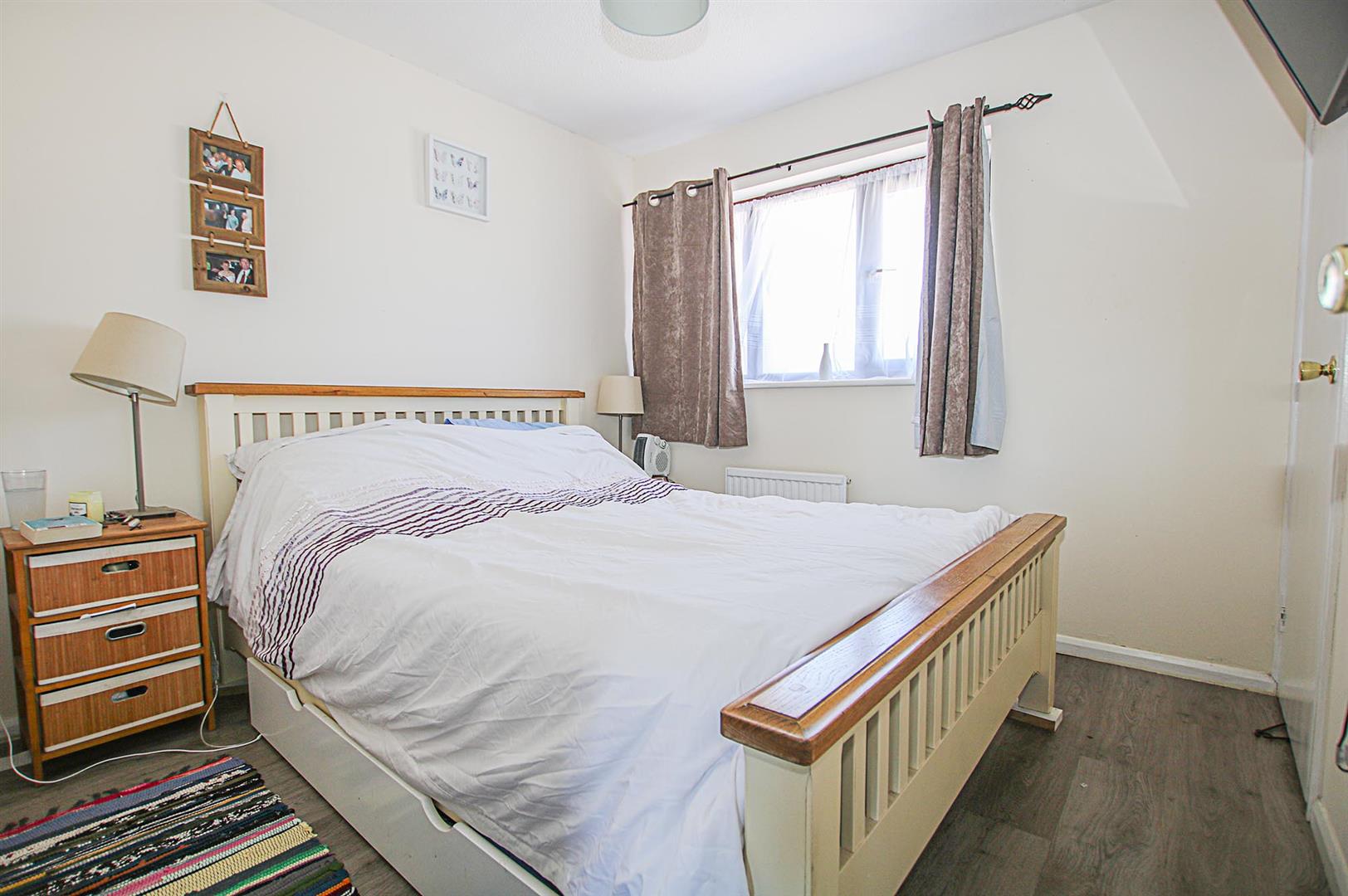 Double bedroom with storage cupboard, laid wooden style flooring and window to the front aspect.