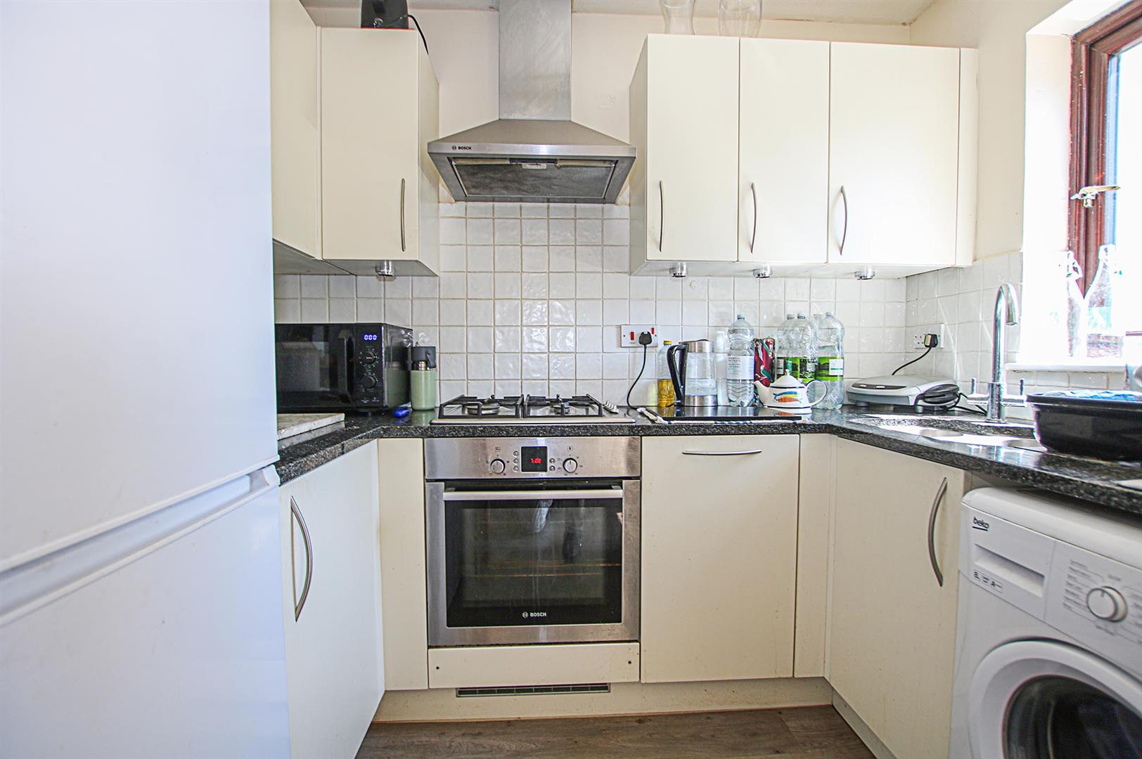 Fitted with a range of matching eye and base level storage units and work surfaces over, tiled splashback areas, undermounted stainless steel sink and drainer with mixer tap over, integrated BOSCH oven with extractor hood above. Space and plumbing for a fridge/freezer and washing machine. Laid wooden style floor and window to the rear aspect.