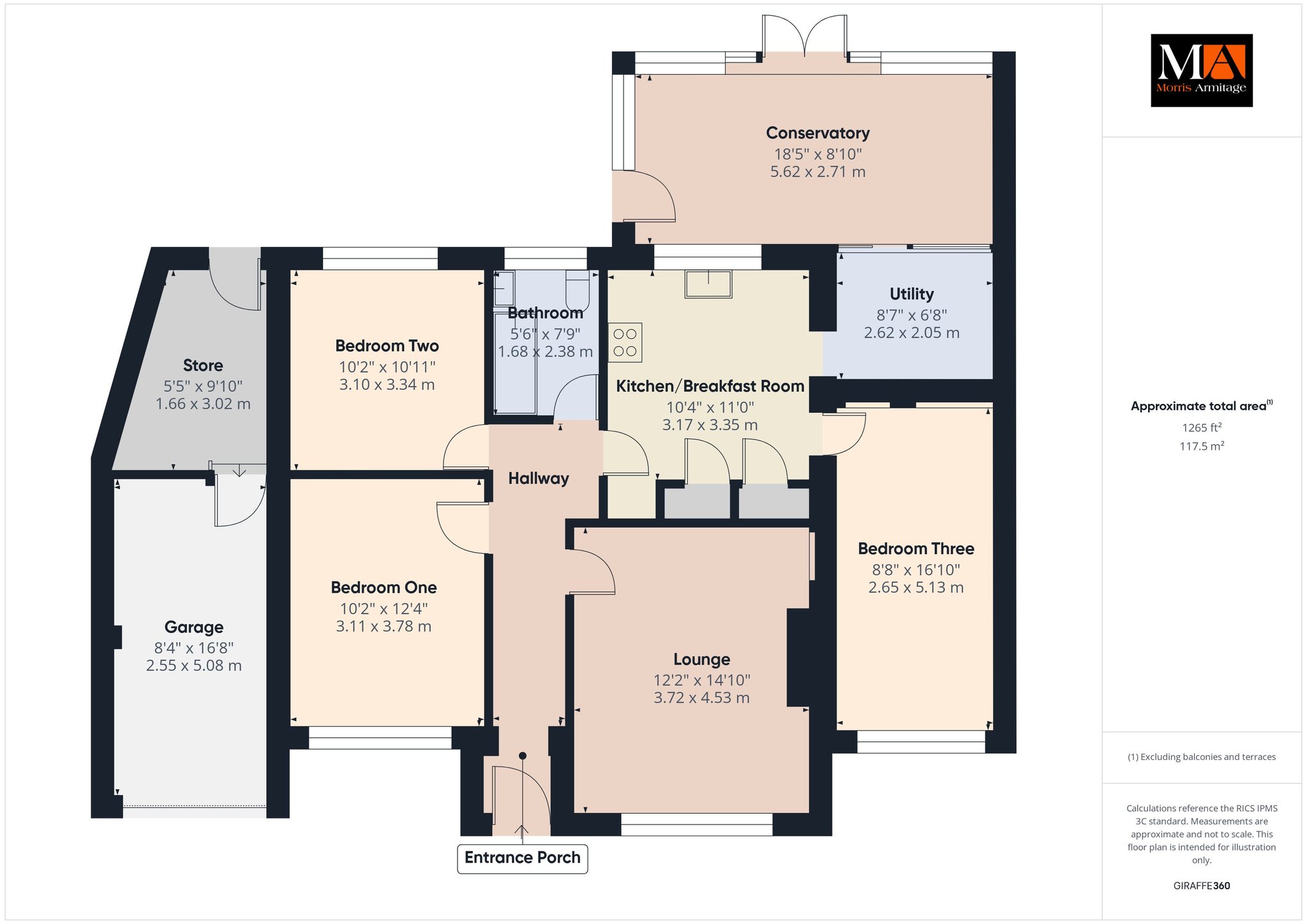 Conservatory 18’5” x 8’10” (5.62m x 2.71m)