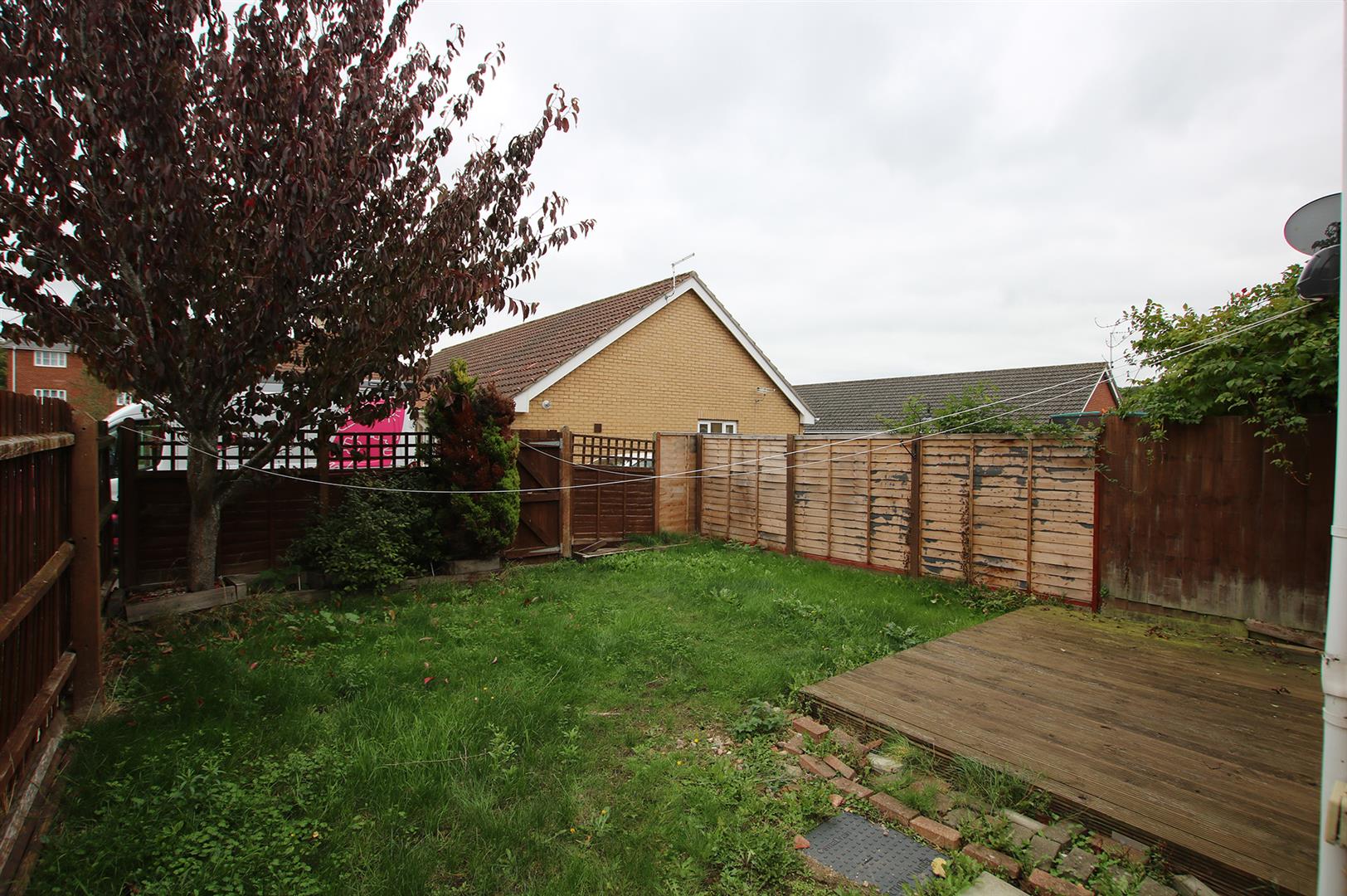 Decking and grassed areas. Shed. Outside tap. Single track driveway with space for two cars behind the property, accessed via garden gate. One allocated visitors parking space opposite property.