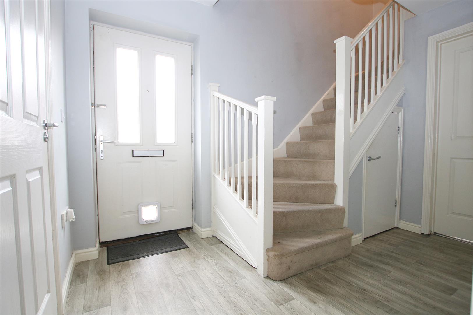 With stairs rising to first floor, understairs storage. Door to WC, door to kitchen and door to sitting/dining room.