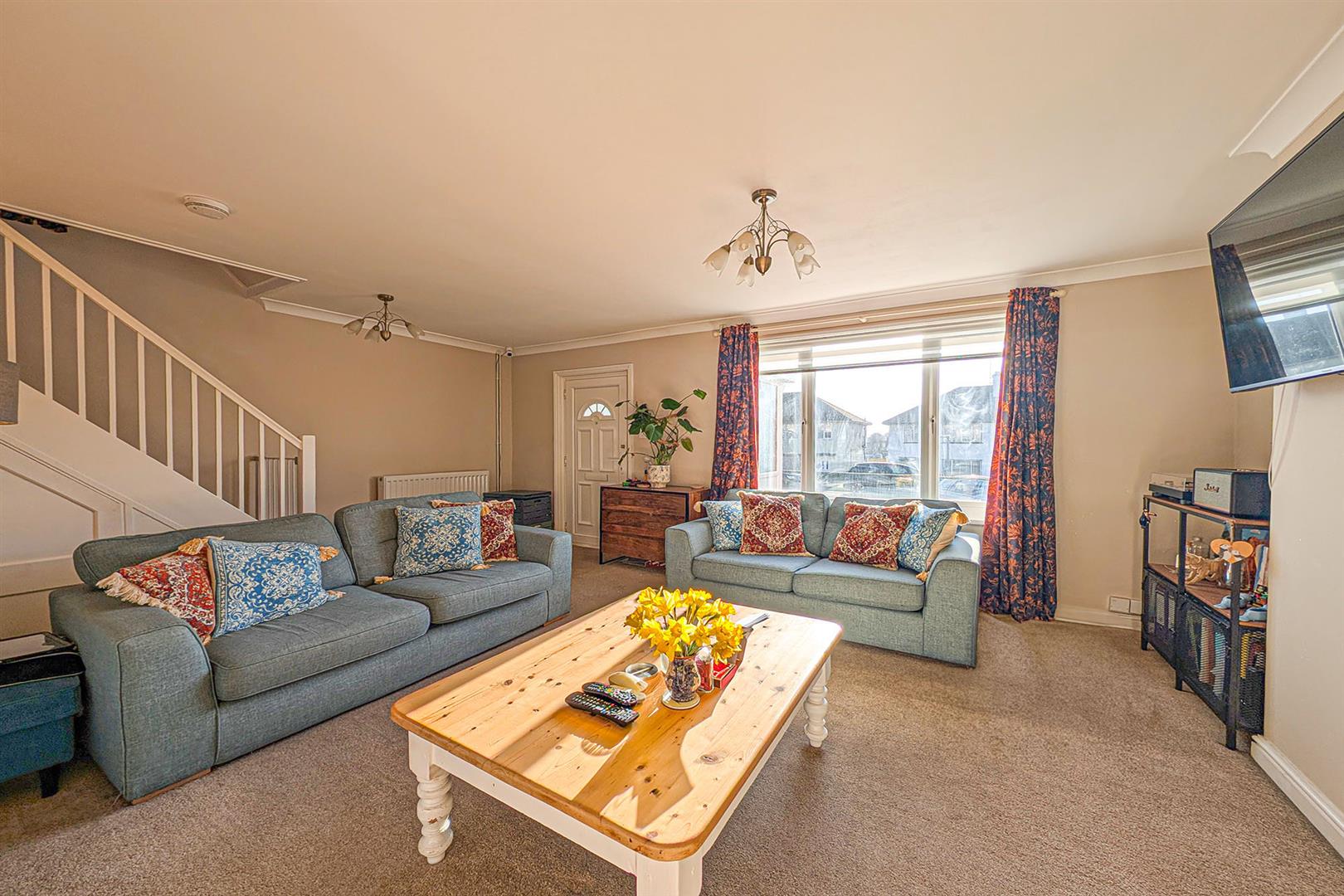 Spacious, well presented sitting room with window to the front aspect. Radiators. Opening to the dining room. Door to front porch. Stairs leading to the first floor landing.