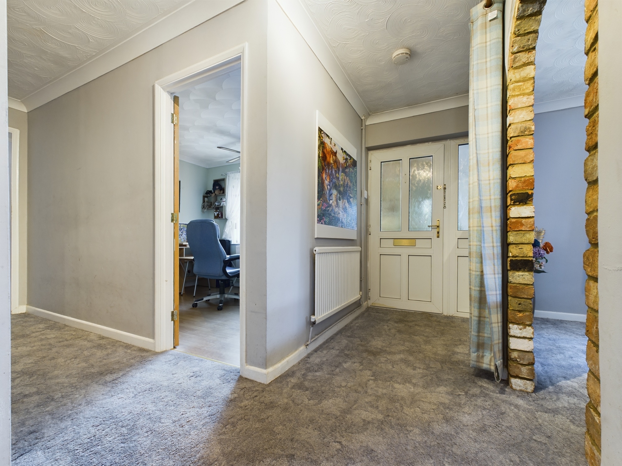 uPVC double glazed doors to front and rear, wall mounted coat pegs, part glazed door to:-