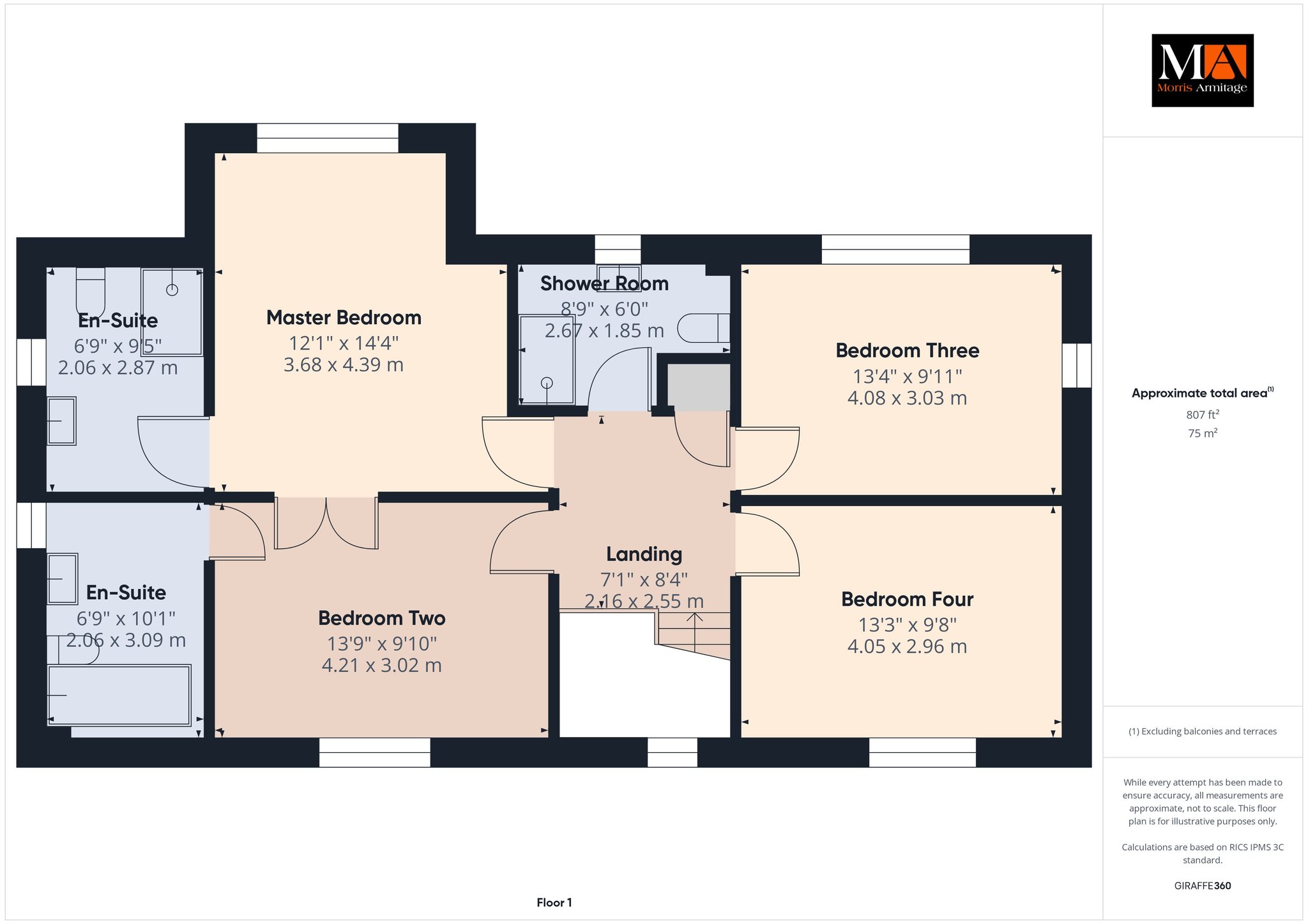 Master Bedroom 14’4” x 12’1” (4.39m x 3.68m)