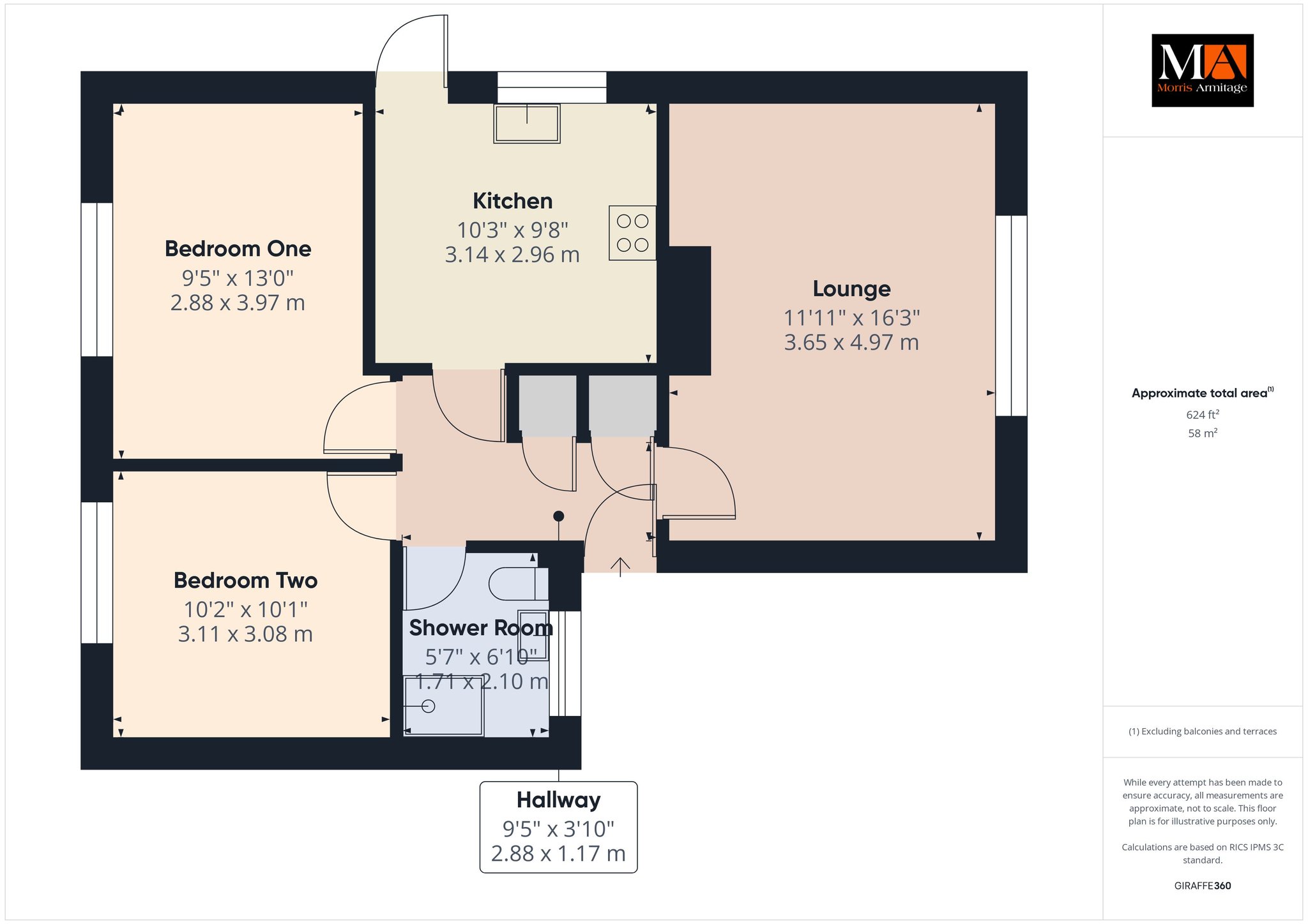 Kitchen 10’3” x 9’8” (3.14m x 2.96m)