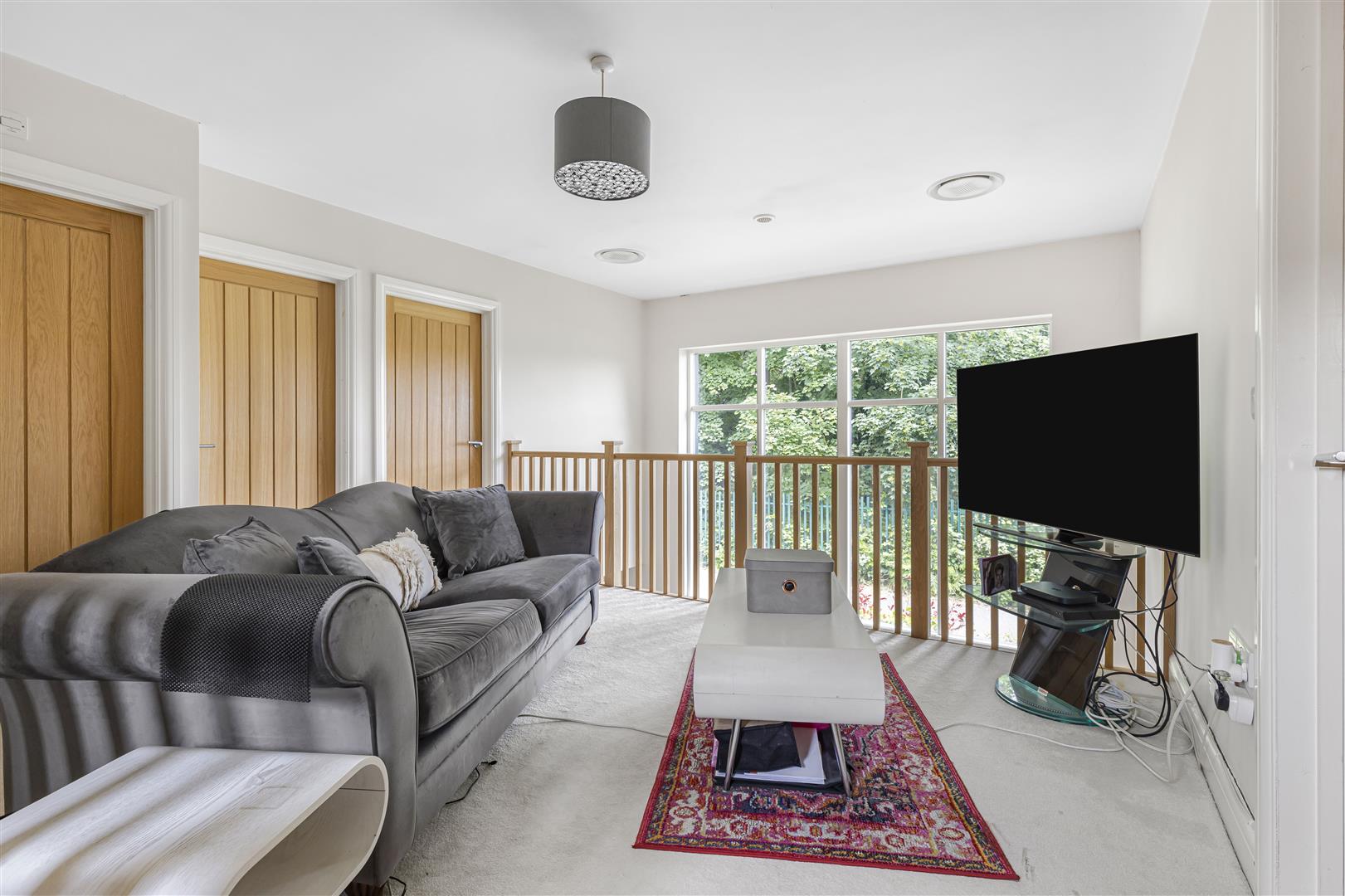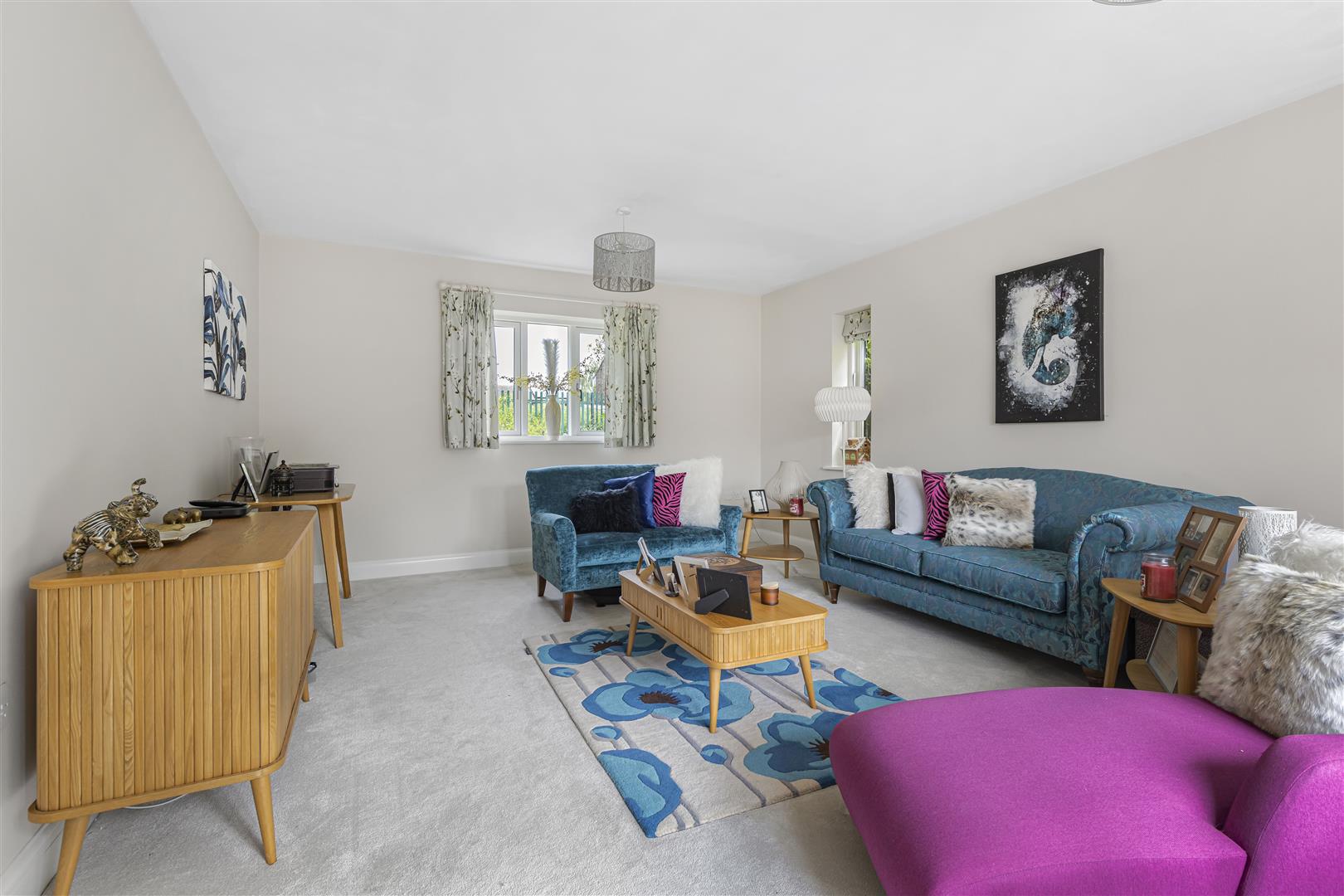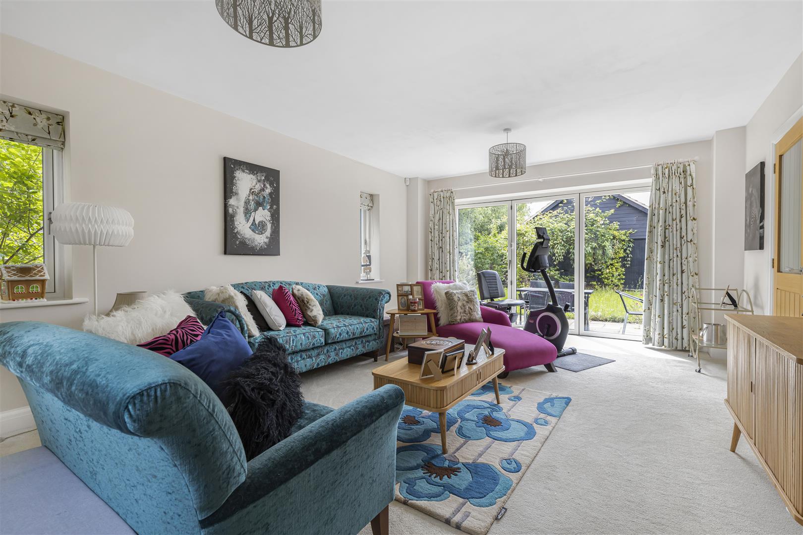 Spacious living room with TV connection point, window to the the side and rear aspect and bi-folding door out to the garden.