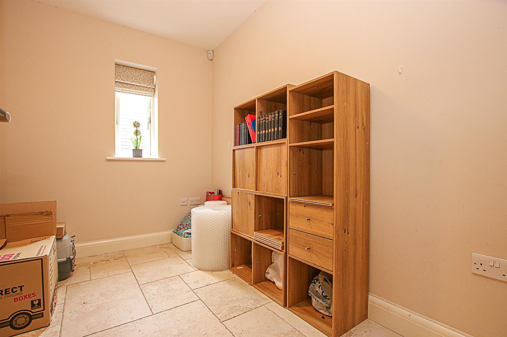 Laid Porcelanosa tiled flooring and window to the front aspect.