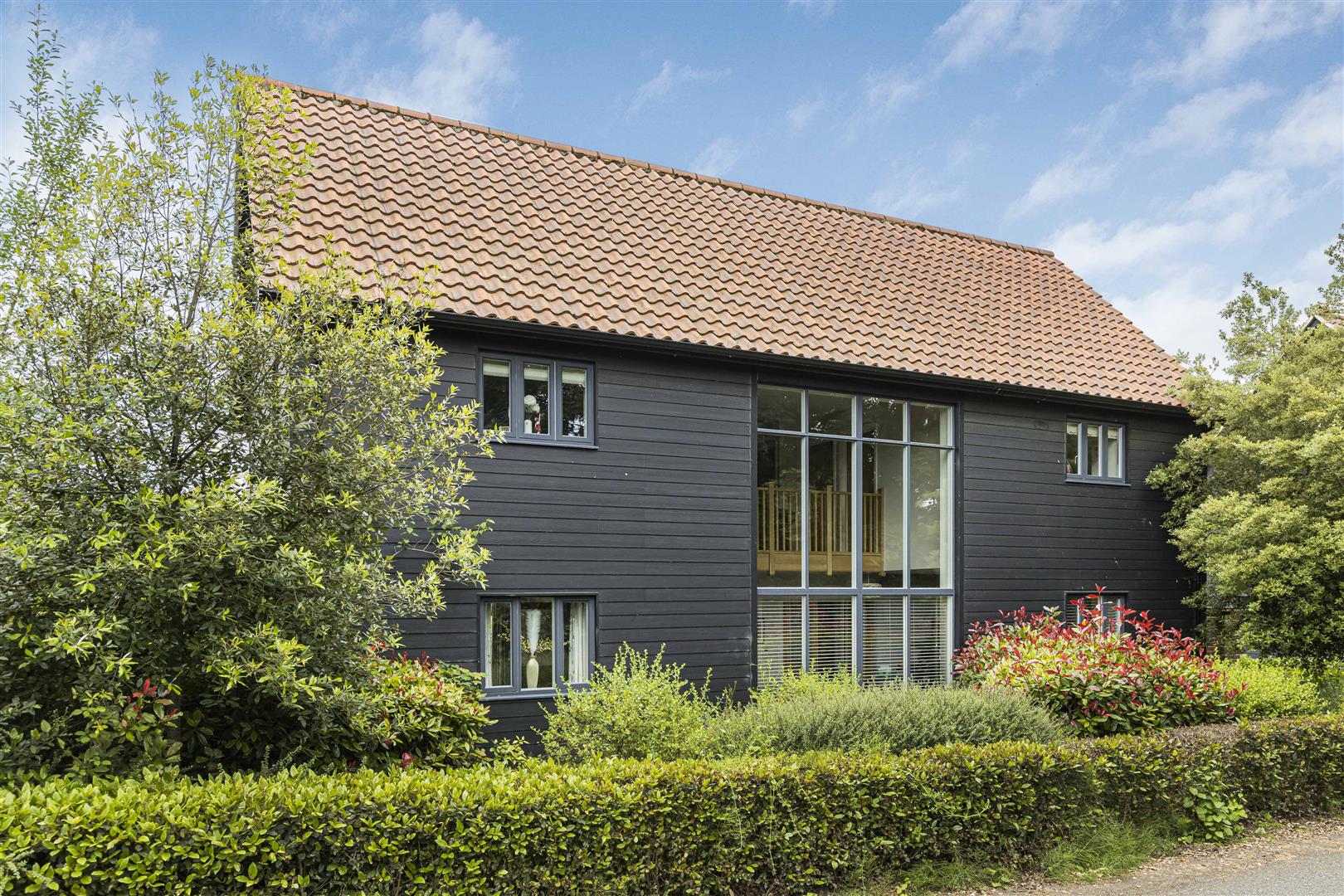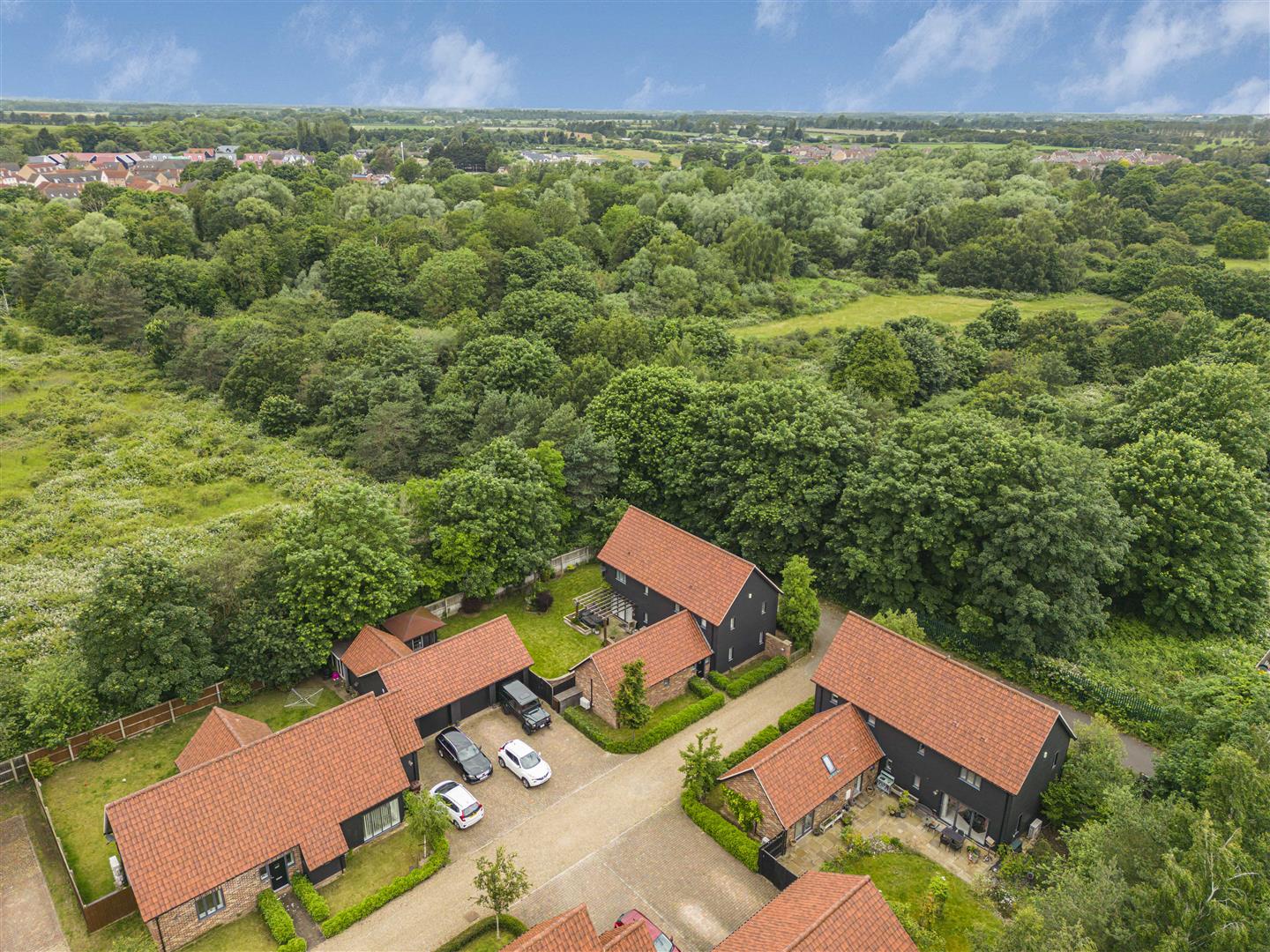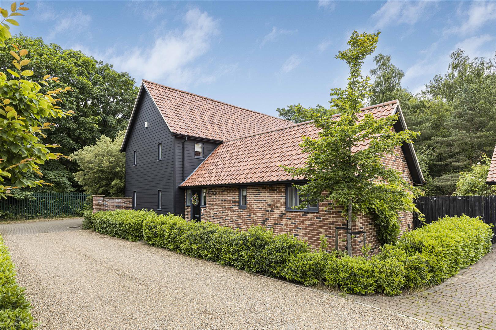 Boarded by mature hedging with pathway leading to the front entrance. Blocked paved drive creating parking spaces for up to four vehicles.