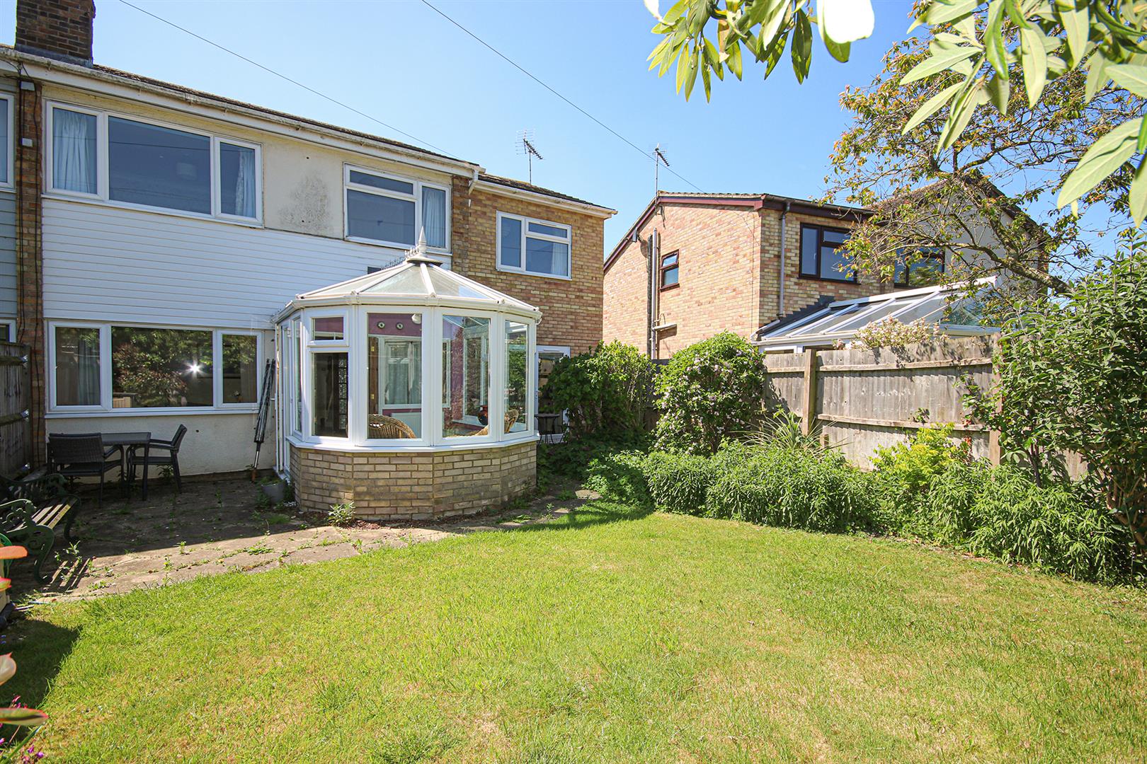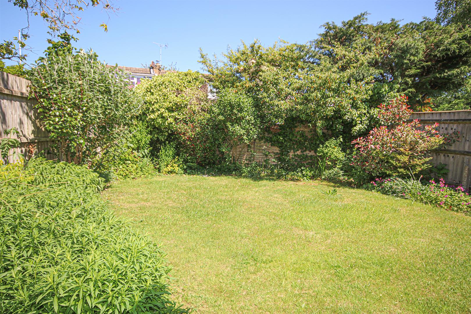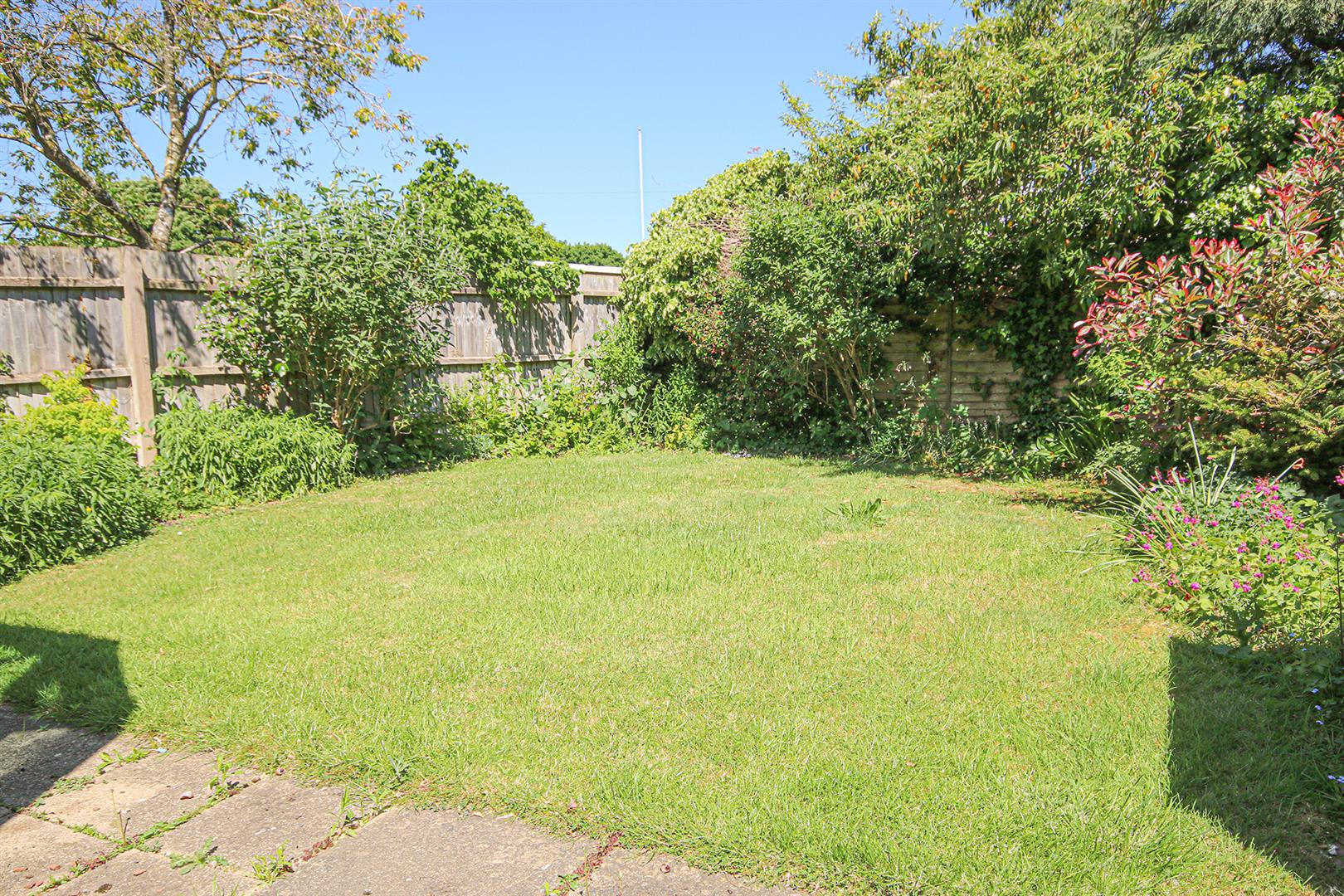 Enclosed rear garden mainly laid to lawn with some mature shrub and small tree planting. Patio area to rear of house.