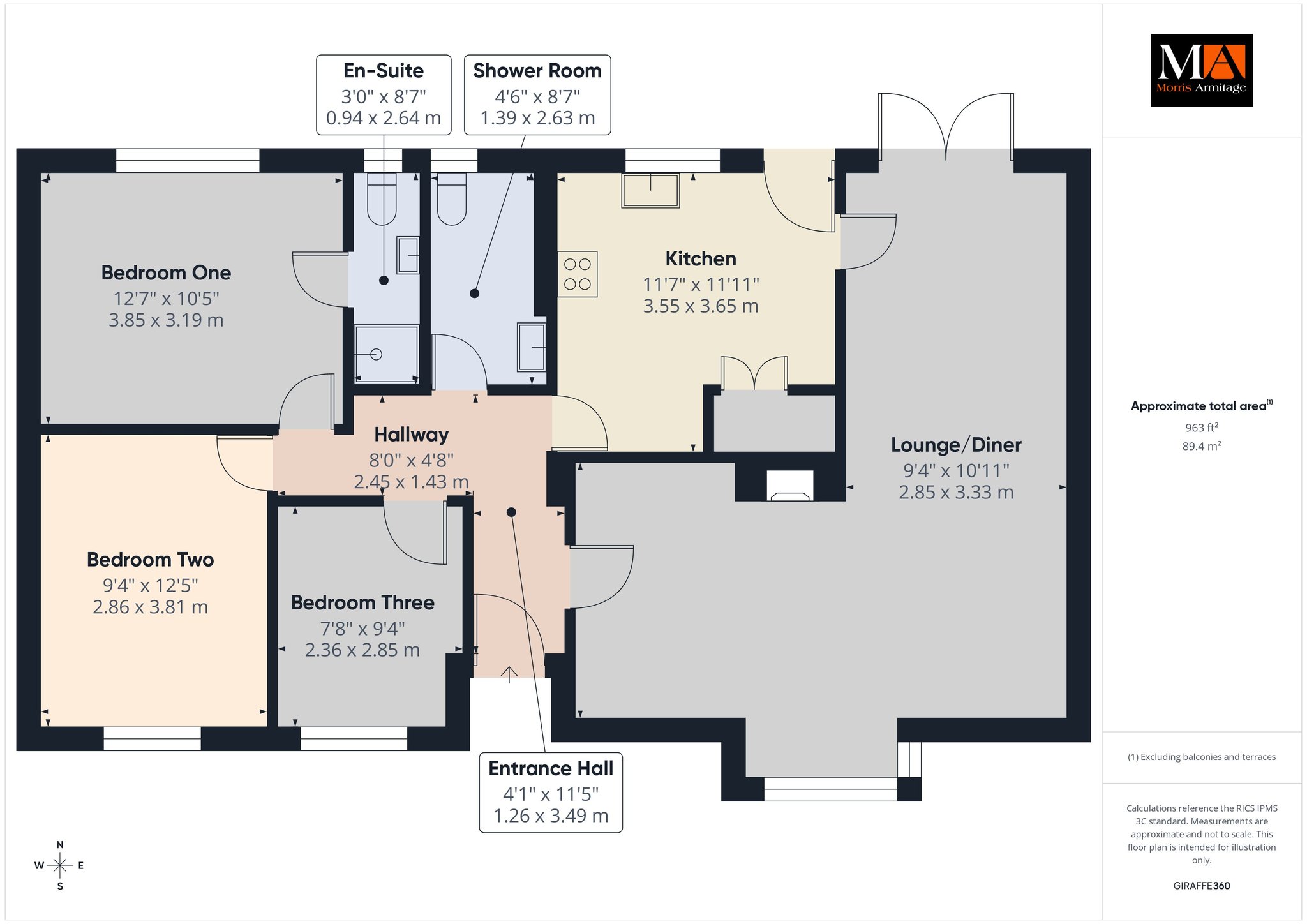 Bedroom Three 9’4” x 7’8” (2.85m x 2.36m)