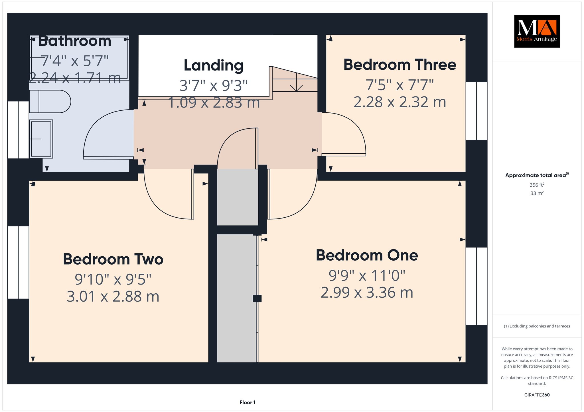 Bedroom One 11’0” x 9’9” (3.36m x 2.99m)