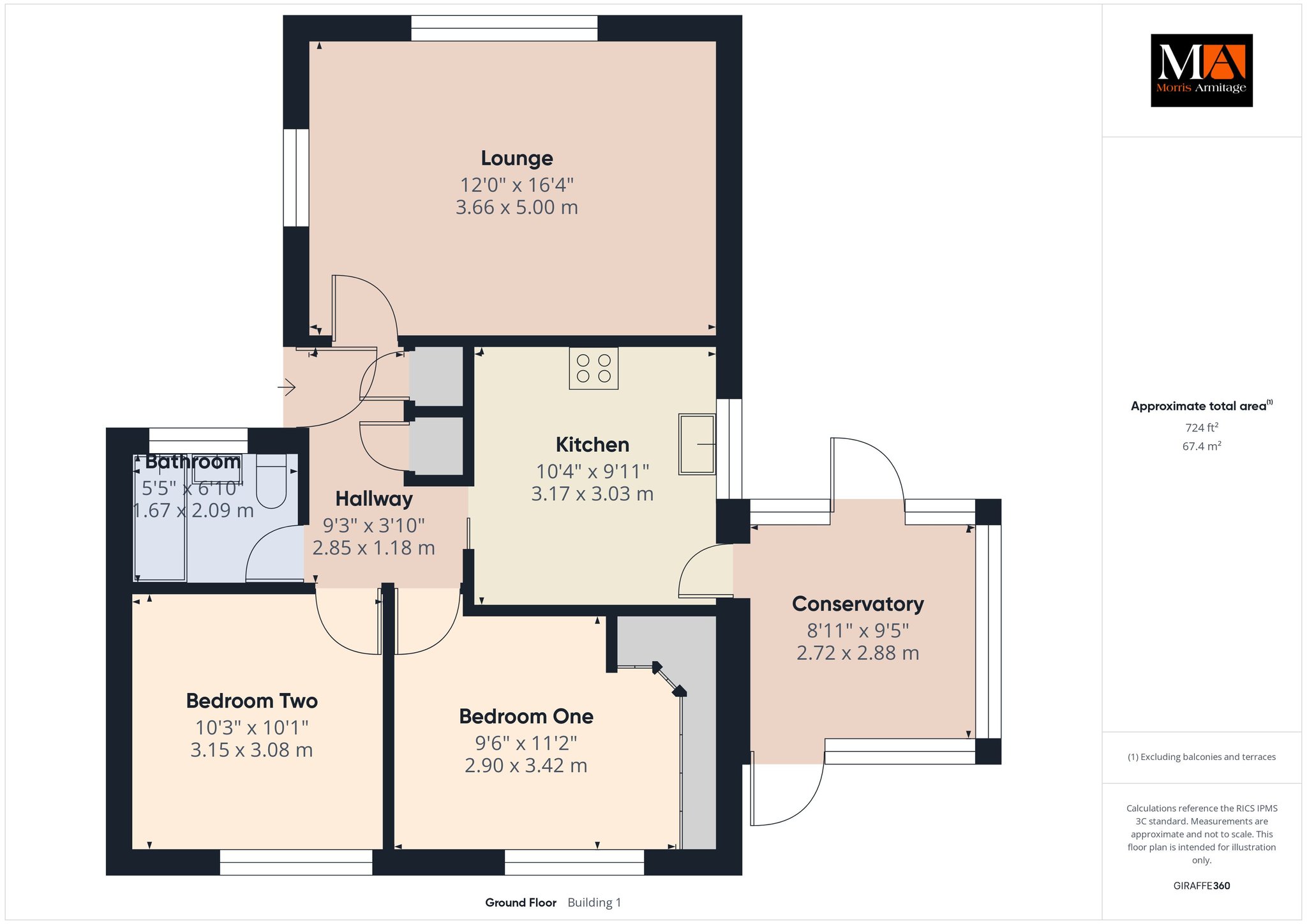 Conservatory 9’5” x 8’11” (2.88m x 2.72m)