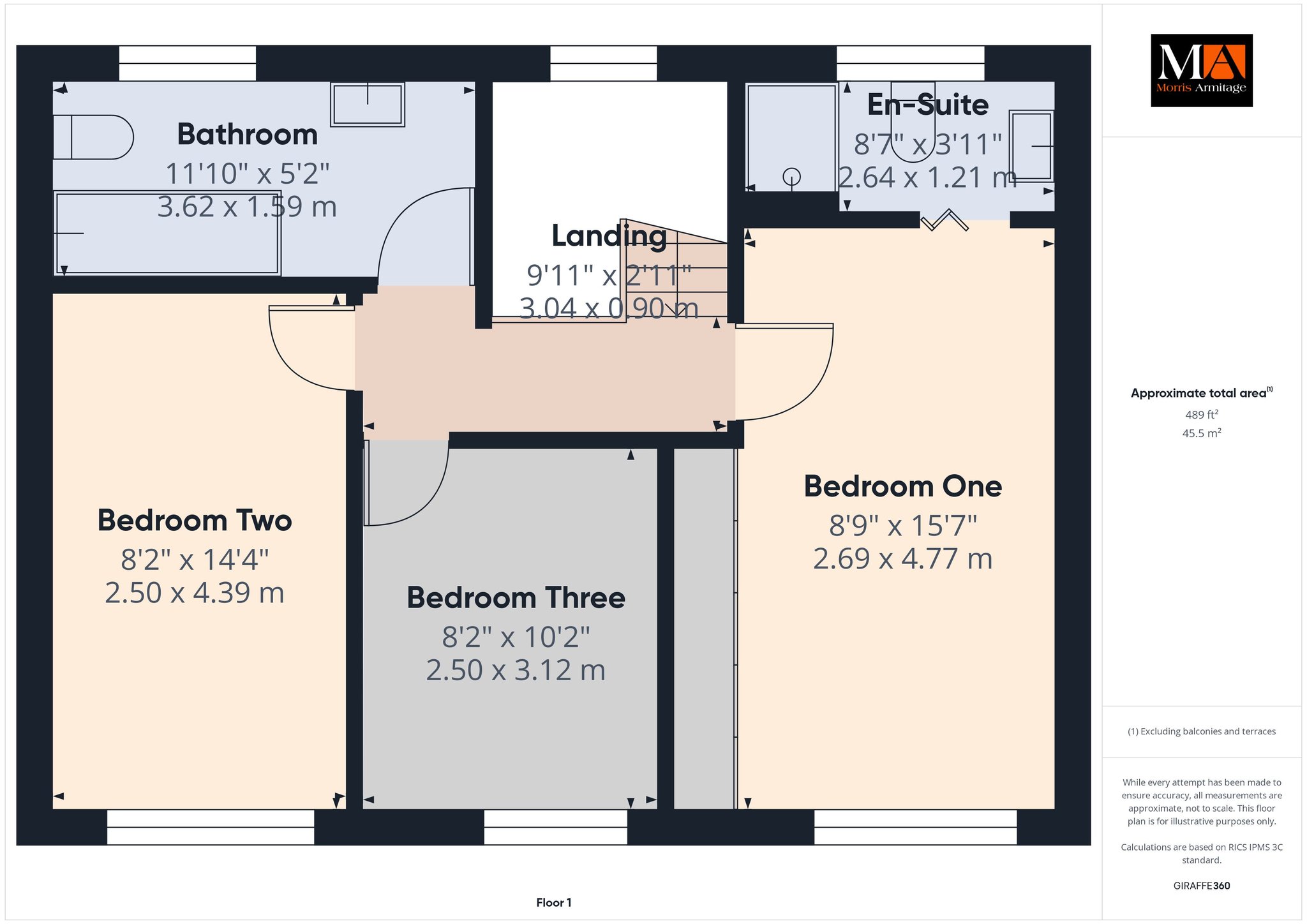 Bedroom One 15’7” x 8’9” (4.77m x 2.69m)