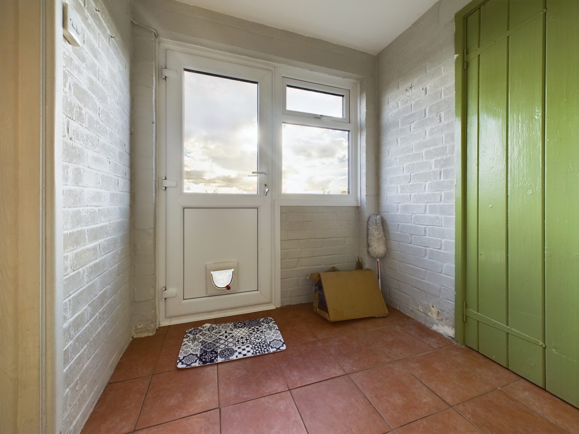 UPVC double glazed window to the rear aspect, door to storage cupboard housing floor mounted oil central heating boiler, tiled flooring, UPVC double glazed door to rear, door to cloakroom.