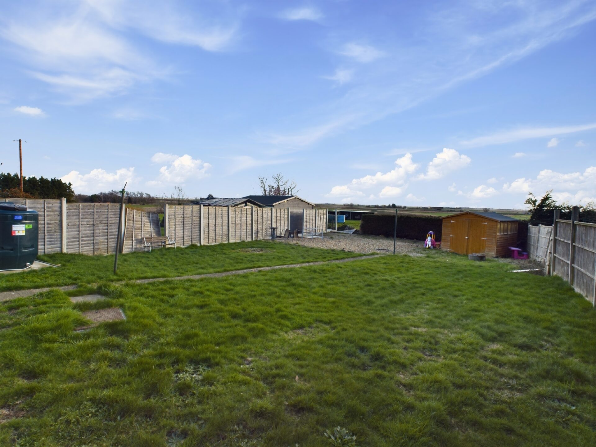 To the front of the property the garden is laid to shingle providing off road parking with a concrete pathway which leads to the front door and onto the side of the property leading to the rear garden. The rear garden is mainly laid to lawn with a concrete path leading to the bottom of the garden which is laid to shingle with a wooden storage shed, raised free standing oil tank, field views to the rear.
