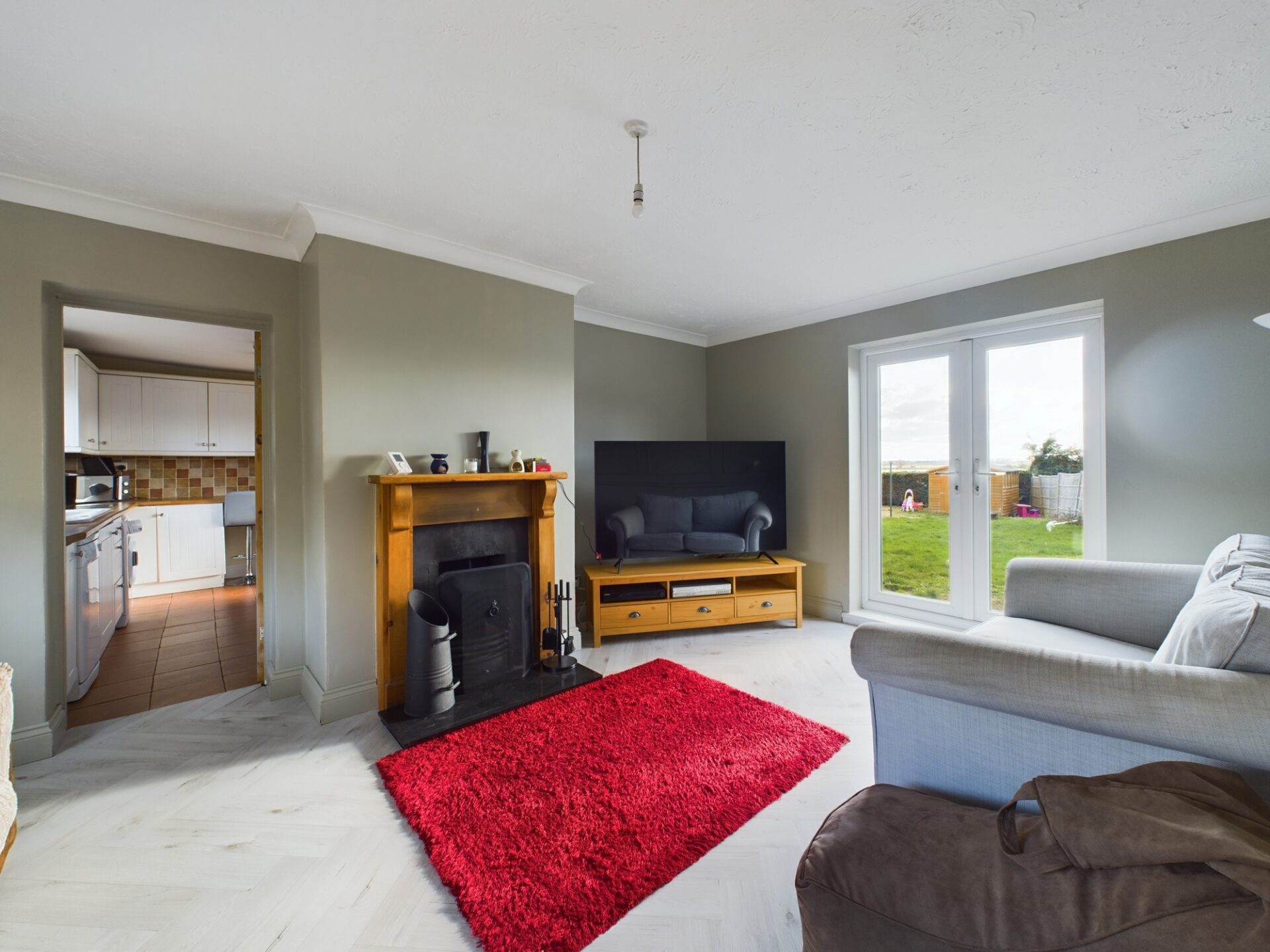 UPVC double glazed window to front aspect, UPVC double glazed patio doors to rear garden, wall mounted double panel radiator, central fireplace with open fire inset with wooden surround and mantle, T.V. and telephone points, textured and coved ceiling, door to under stairs storage cupboard, door to kitchen.
