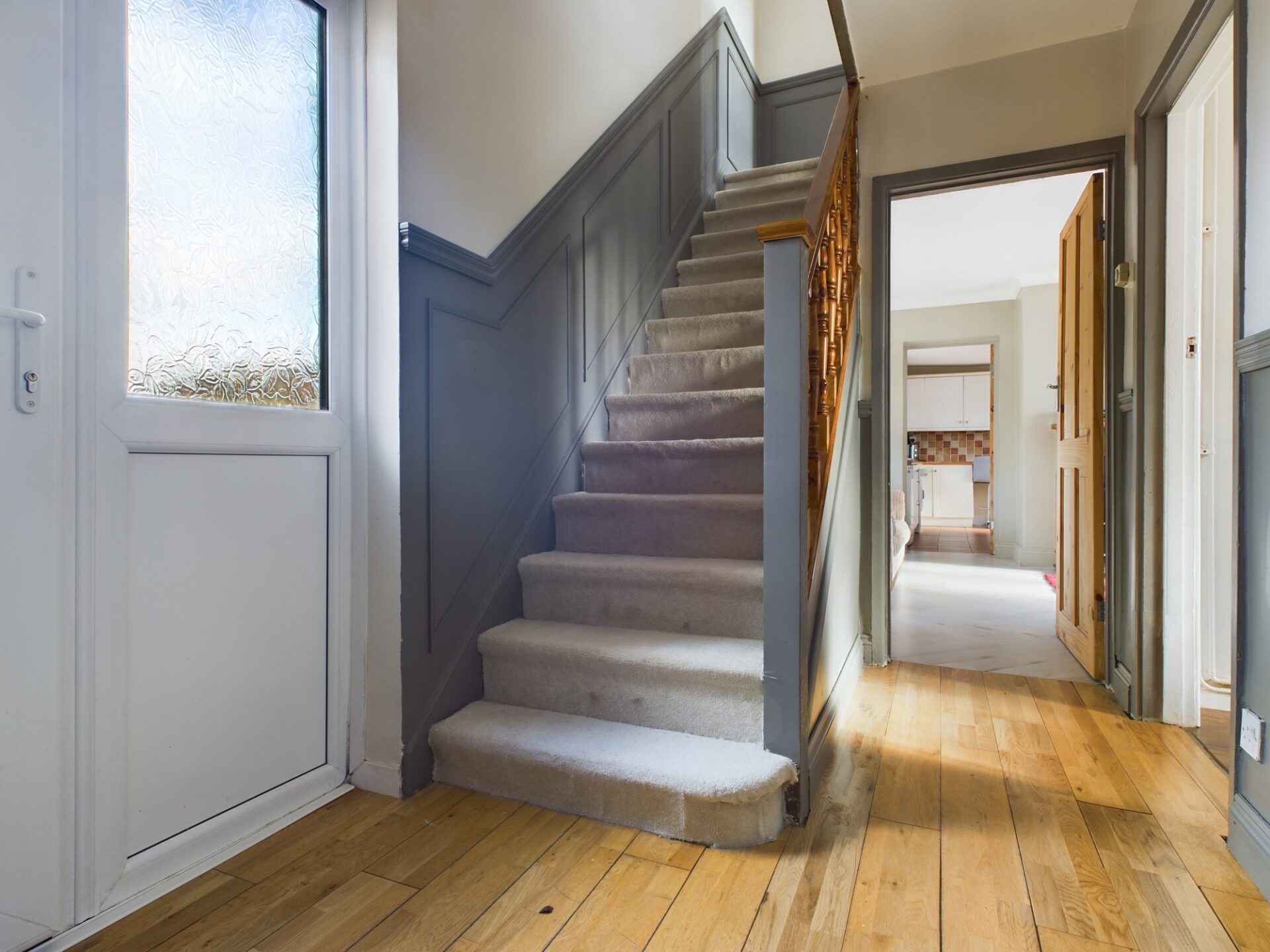 UPVC double glazed window to front aspect, wall mounted single panel radiator, laminate style flooring, stairs to first floor, doors to all rooms.