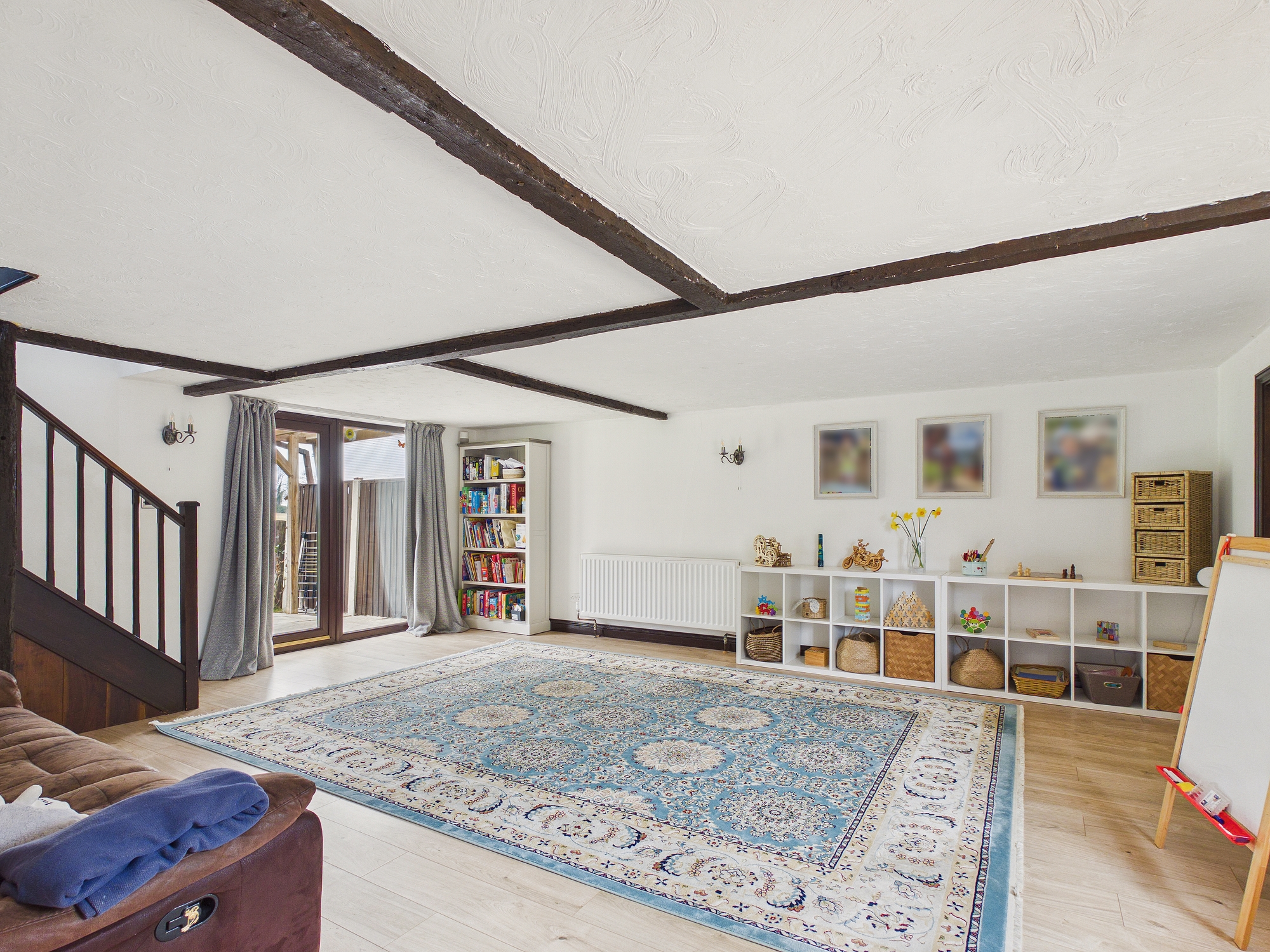 2 x uPVC double glazed windows to front, wall mounted double panel radiator, beams to ceiling, door to storage cupboard, doors to all rooms.