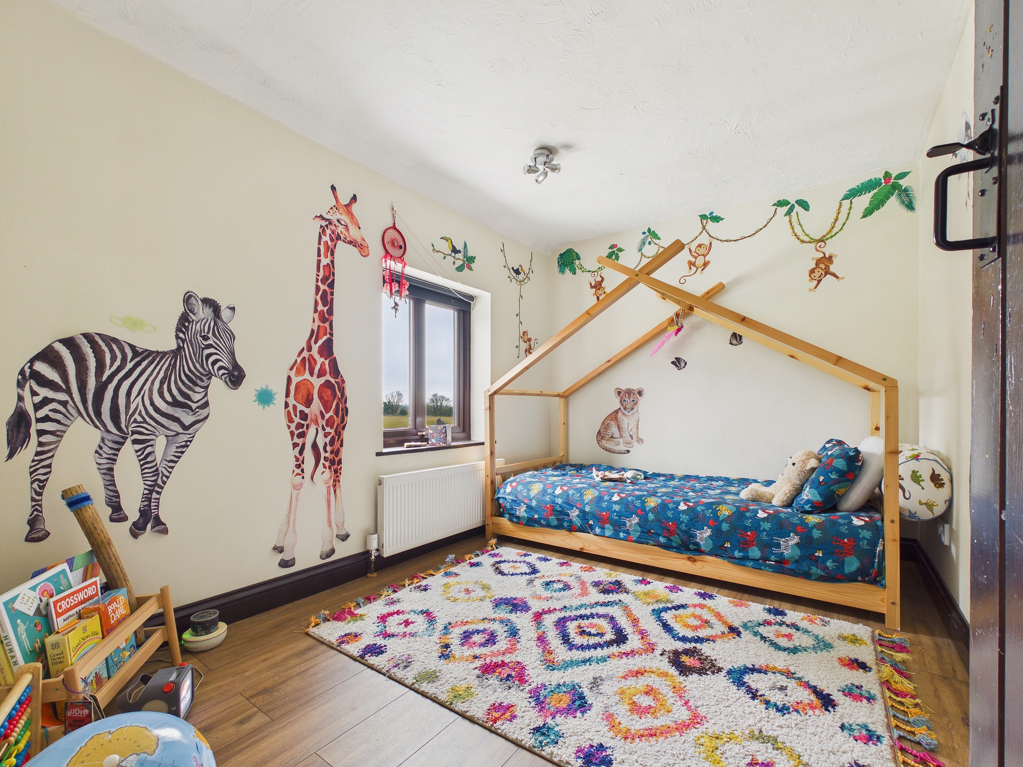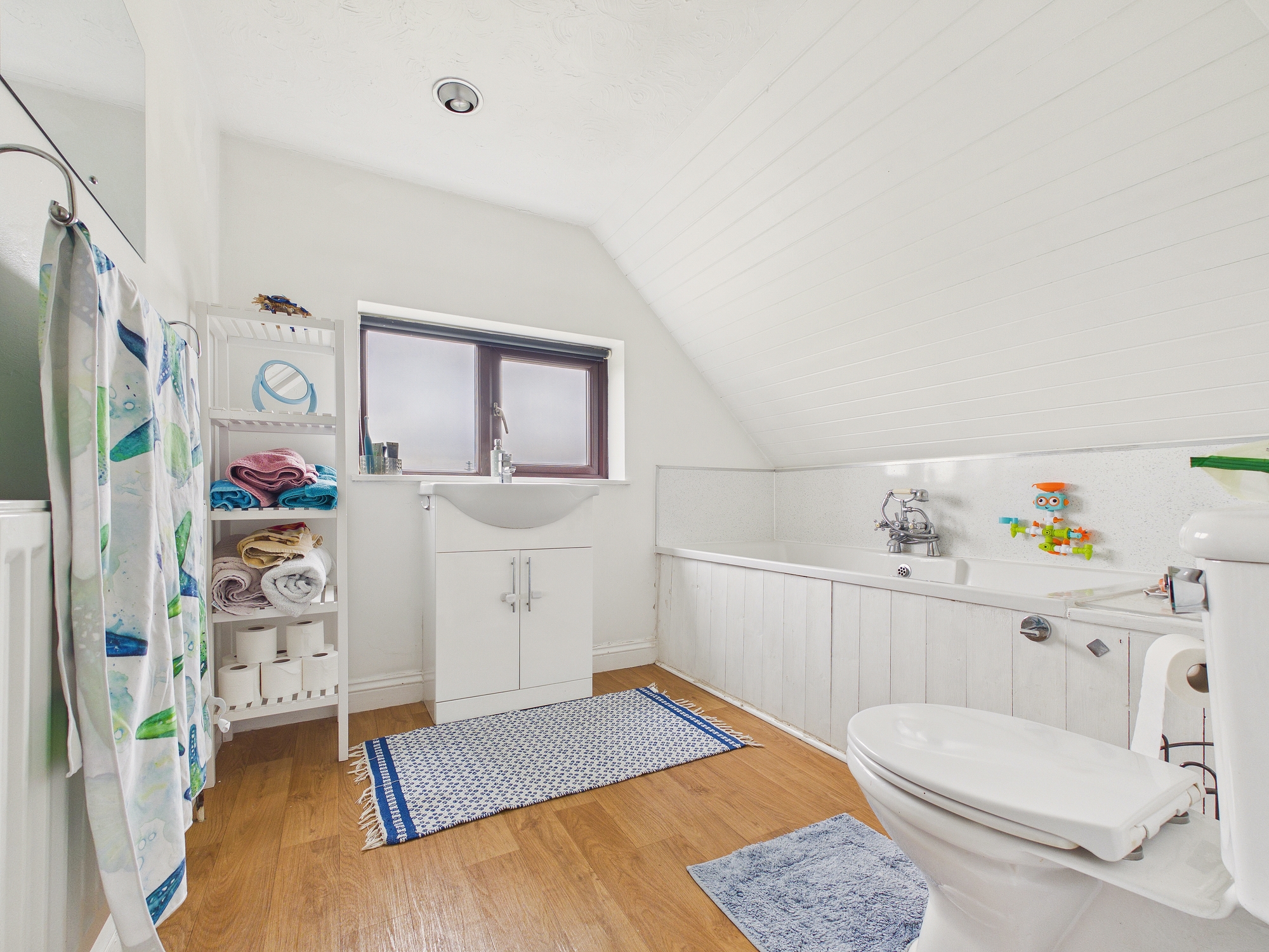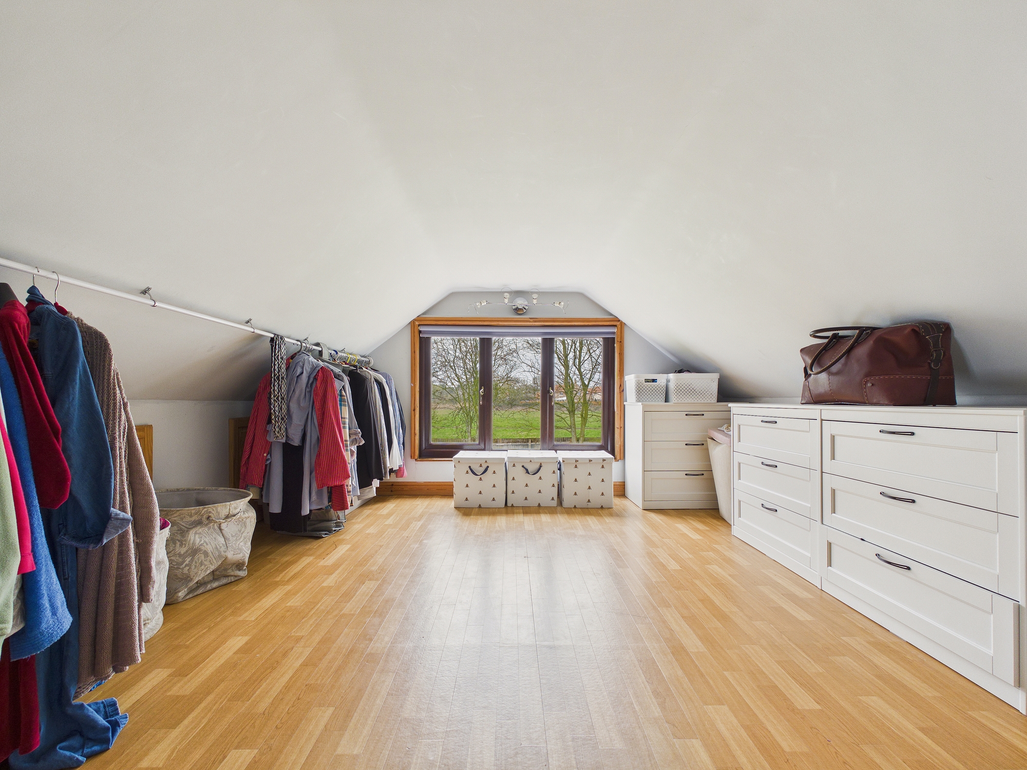 uPVC double glazed window to side, laminate style flooring, eaves storage, wall mounted single panel radiator.