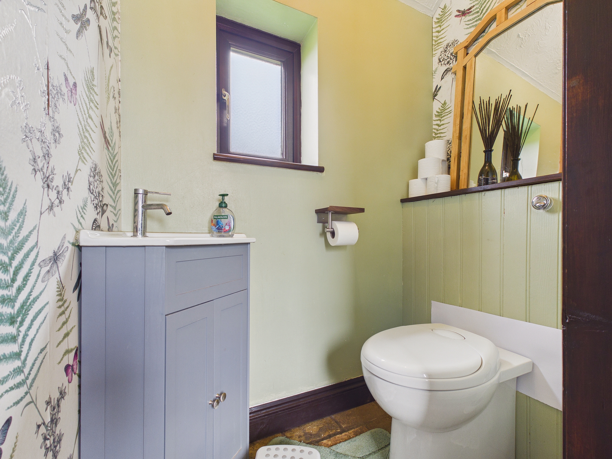 uPVC double glazed window to side, w.c., handwash basin inset to vanity unit.