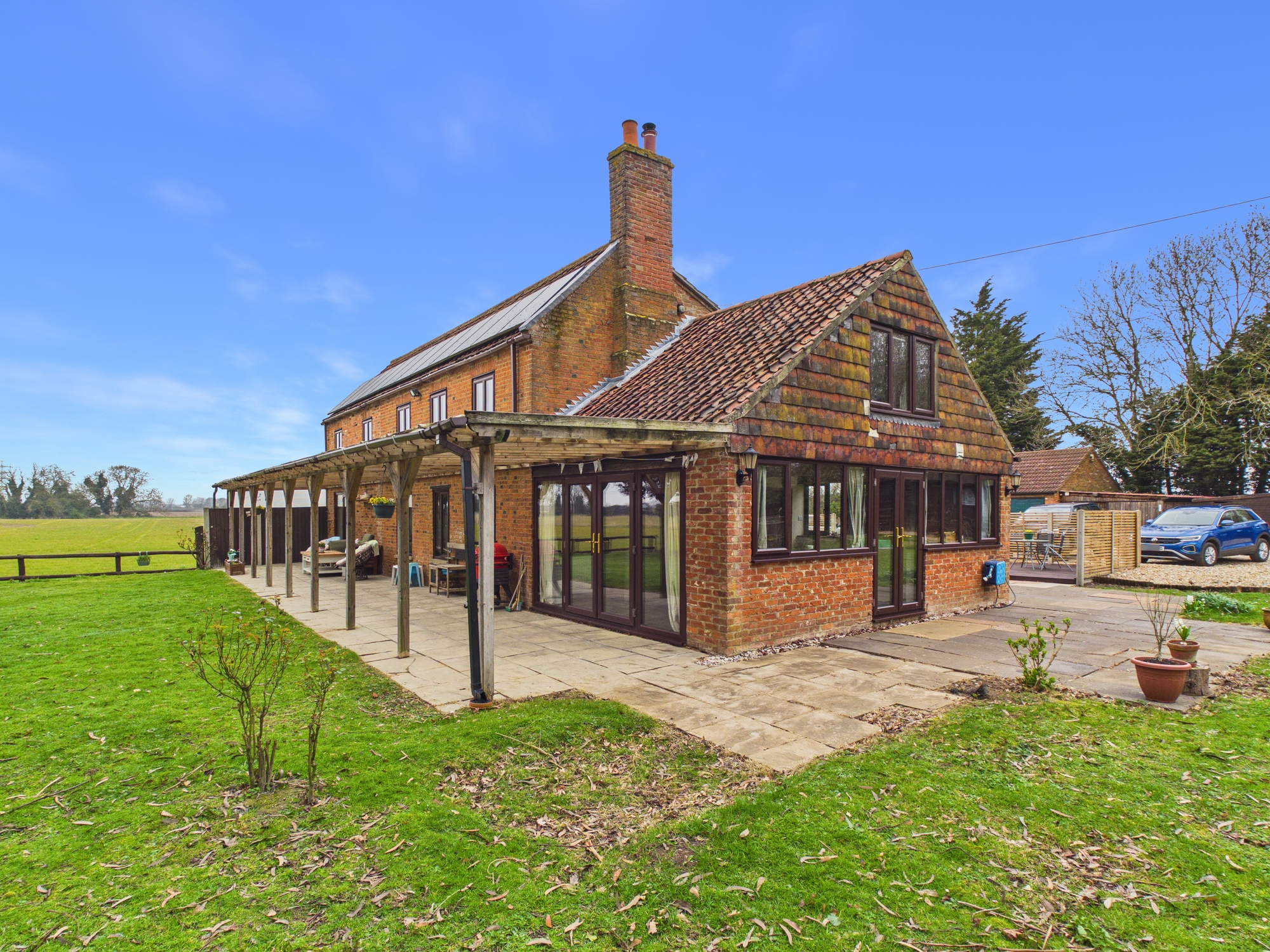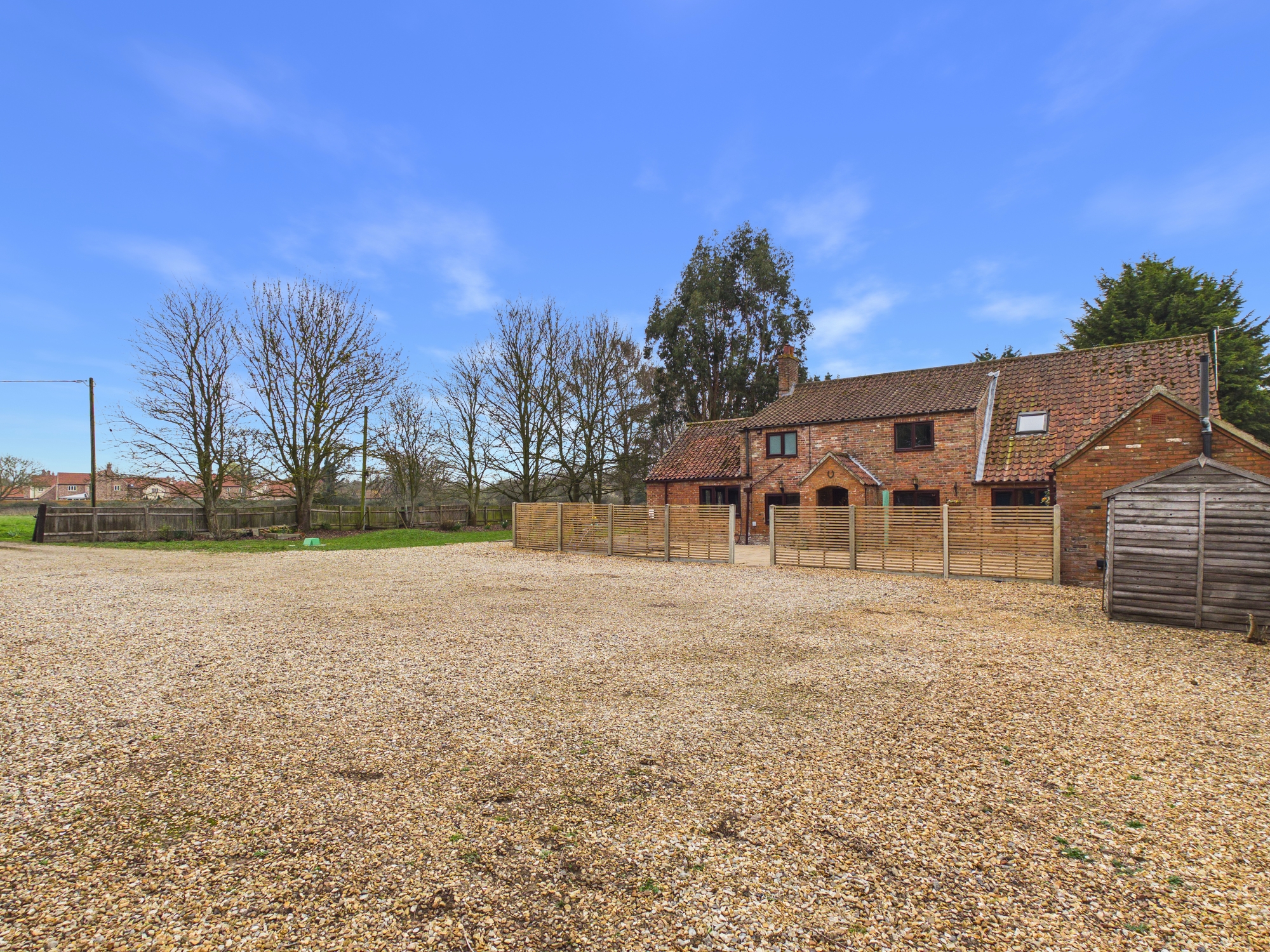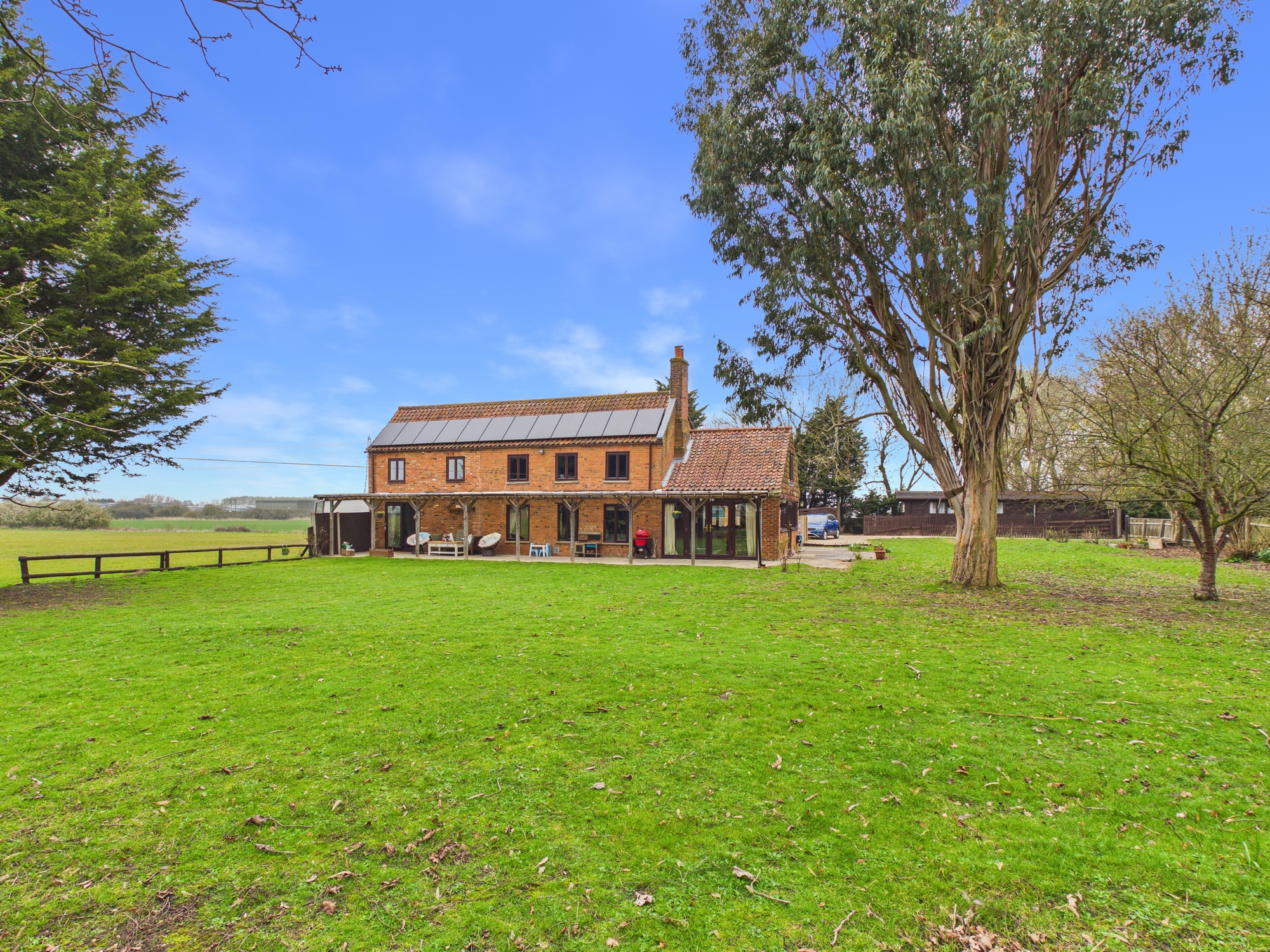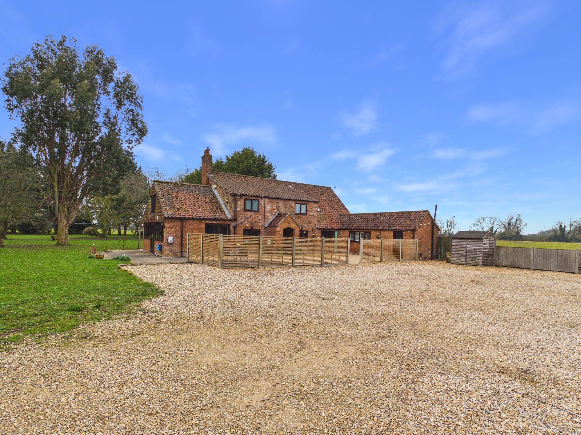 A fantastic opportunity to own this spacious four bedroom, detached family home with a triple garage, workshop and also a two bedroom lodge all set within around 1 acre (stms) of grounds whilst being surrounded by countryside. The property itself is brimming with character and generously sized rooms. The storm porch leads to the entrance hall with exposed brick flooring which serves the ground floor. The lounge has access to the rear garden and stairs to the first floor. The kitchen has integral appliances and leads to the separate utility and cloakroom. There is also an office, snug with multi-fuel burning stove and a dining room with views and access to the spacious gardens. The first floor landing serves the family bathroom, study and four bedrooms, one of which has the benefit of a dressing room and en-suite. Located approximately 4 miles from a mainline railway to Cambridge and London King’s Cross.