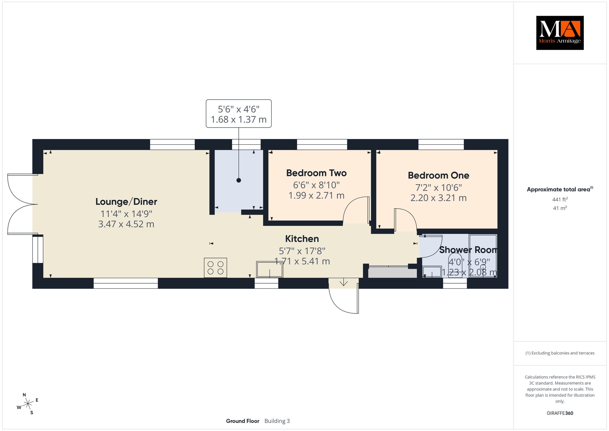 Kitchen 17’8” x 5’7” (5.41m x 1.71m)