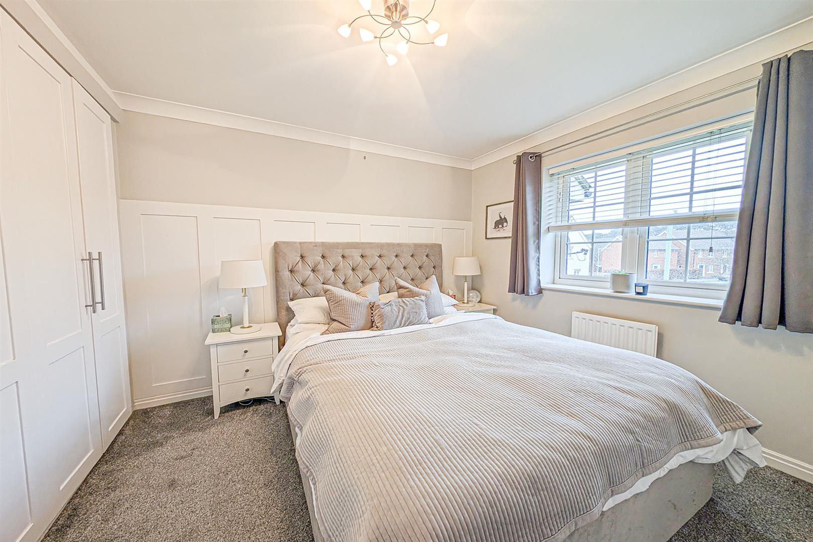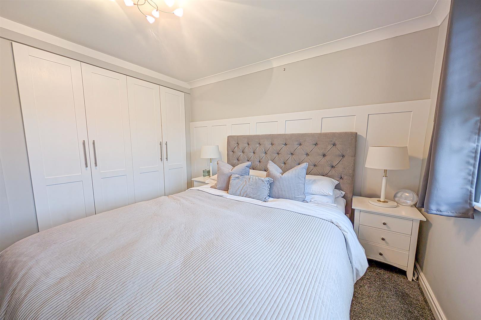 Beautifully presented double bedroom with built-in wardrobes. Radiator. Window to the front aspect. Doors to the en suite and landing.