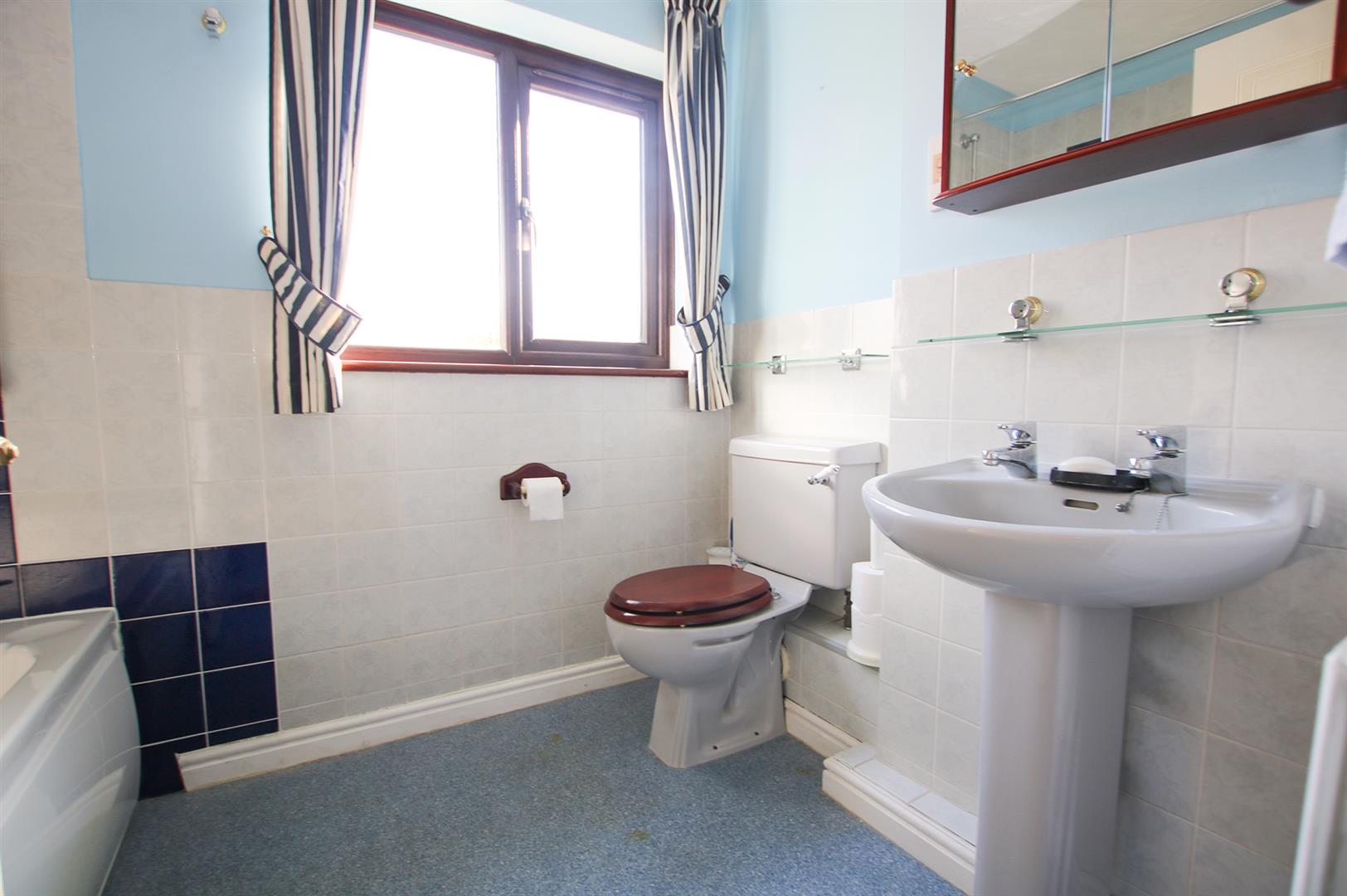 Suite comprising, low level WC, wash hand basin, bath with shower over. Obscured window to front aspect.