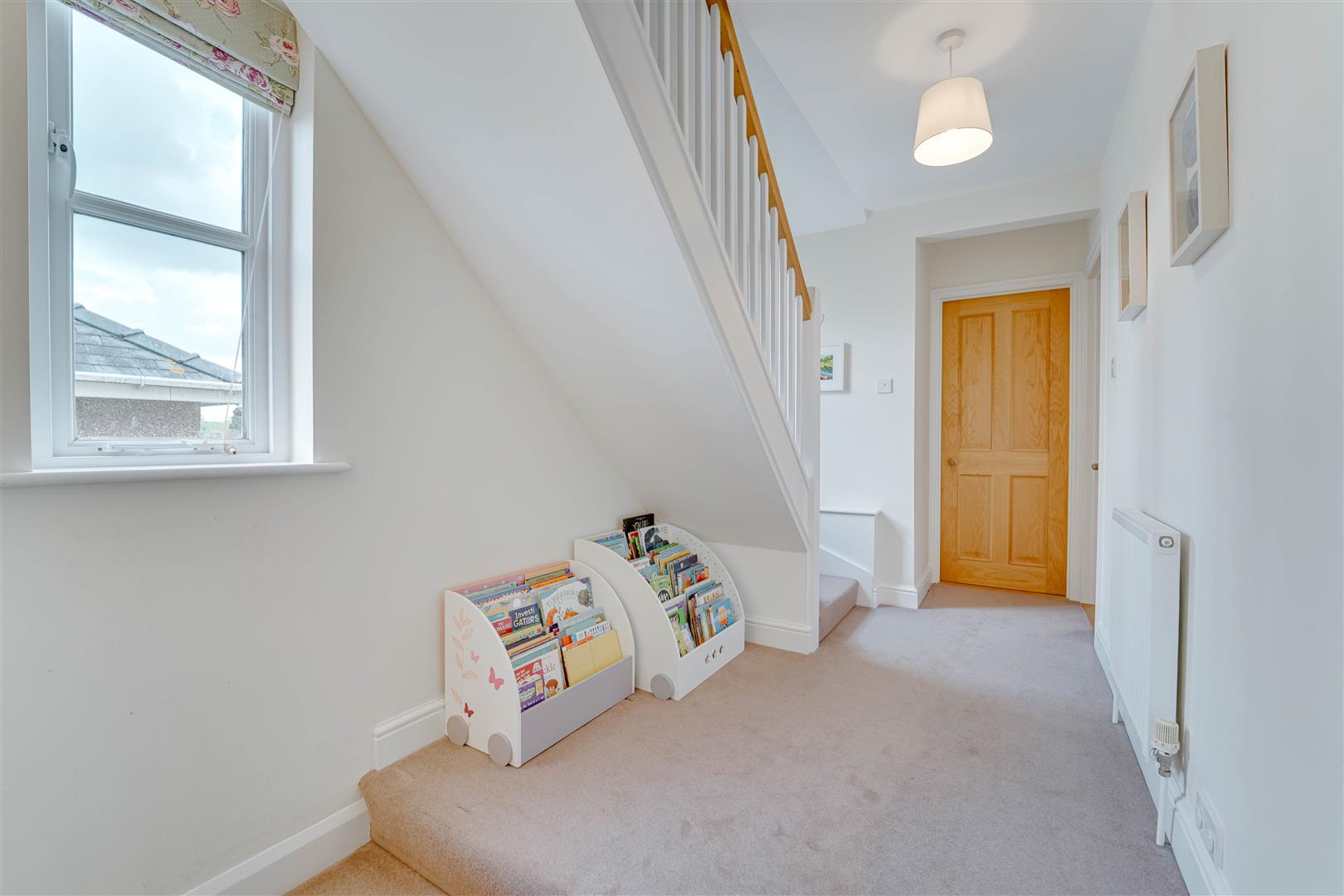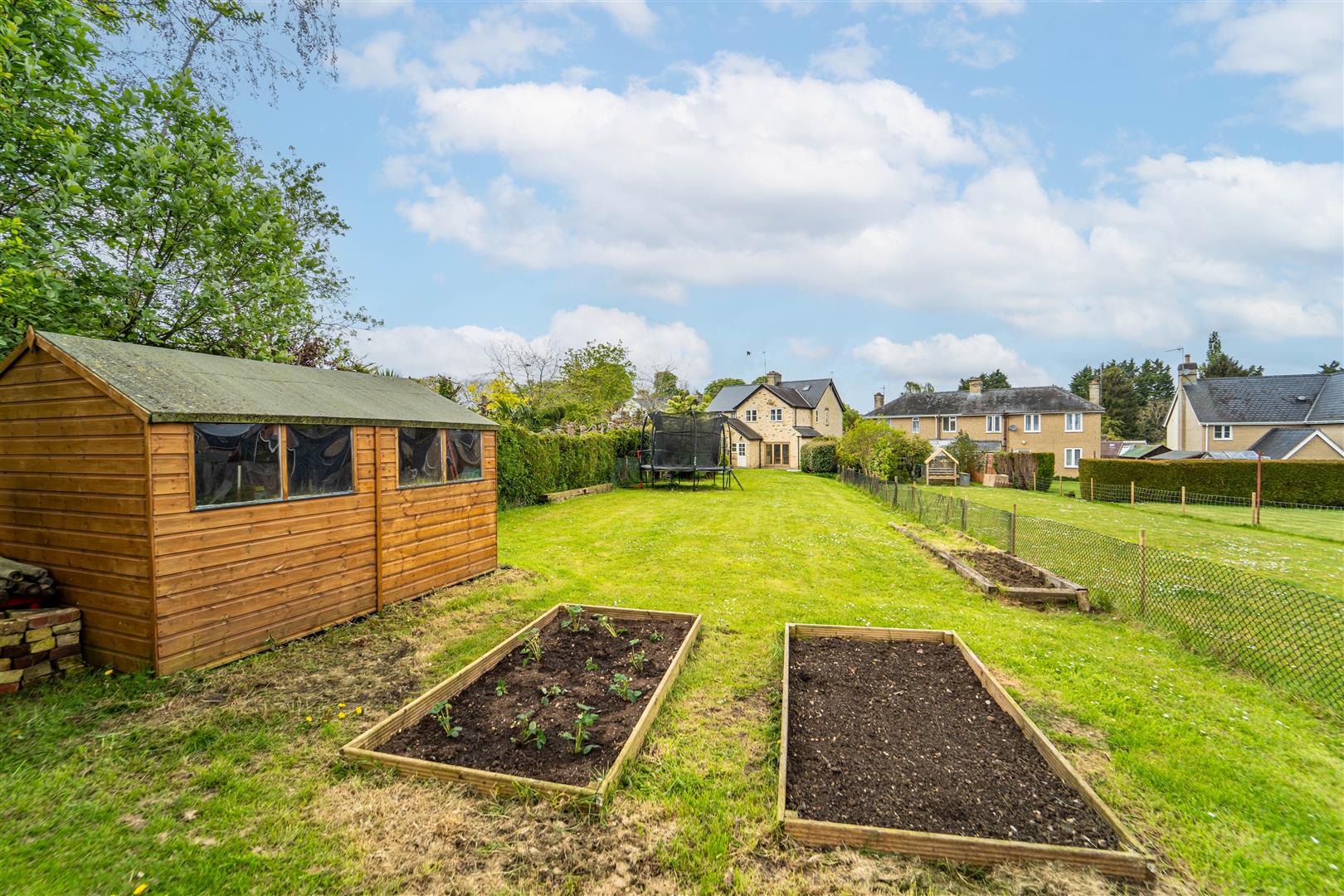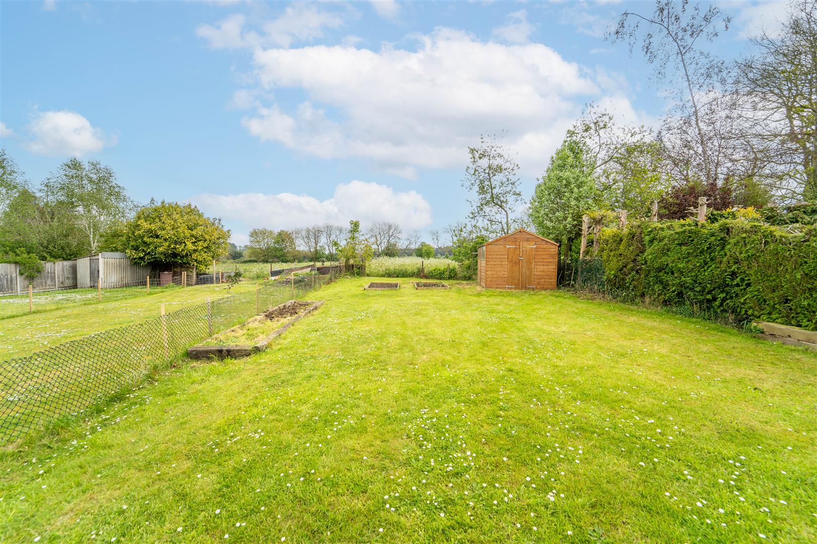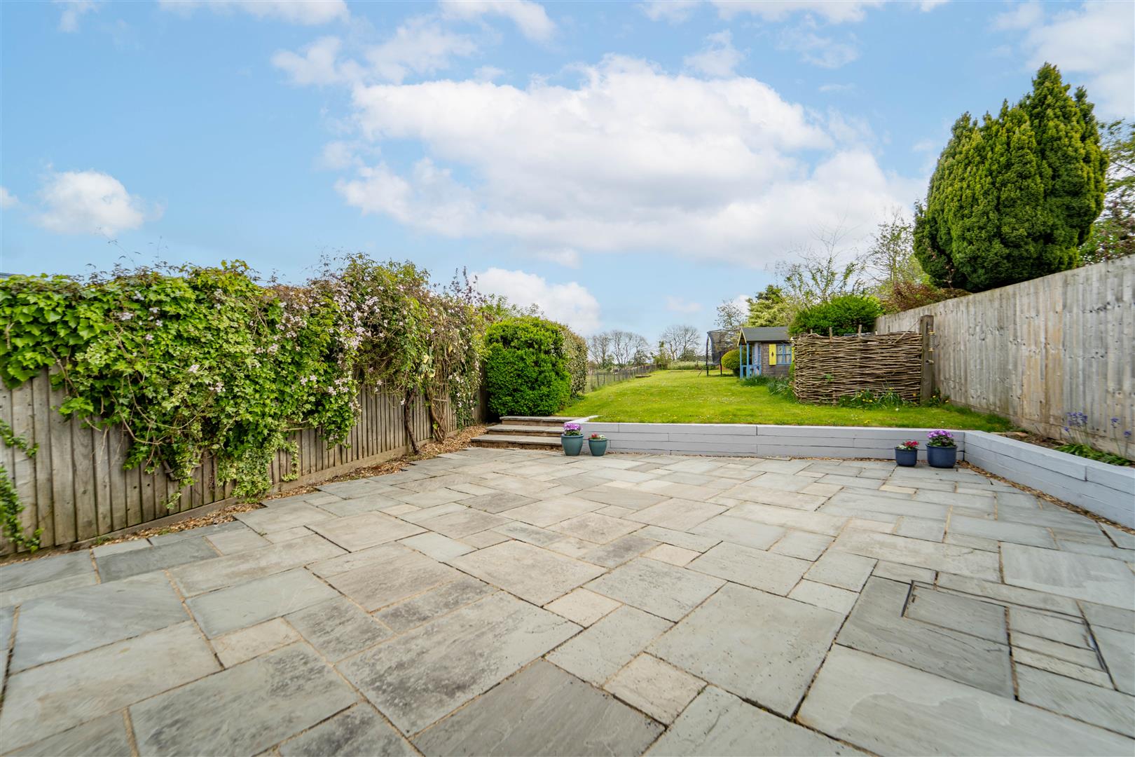 Well presented enclosed rear garden with an extensive paved patio with steps leading up to the lawn area with a variety of mature shrubs, raised flower beds, wooden playhouse, timber garden shed and delightful views over looking the open fields. Approx. 110 ft.