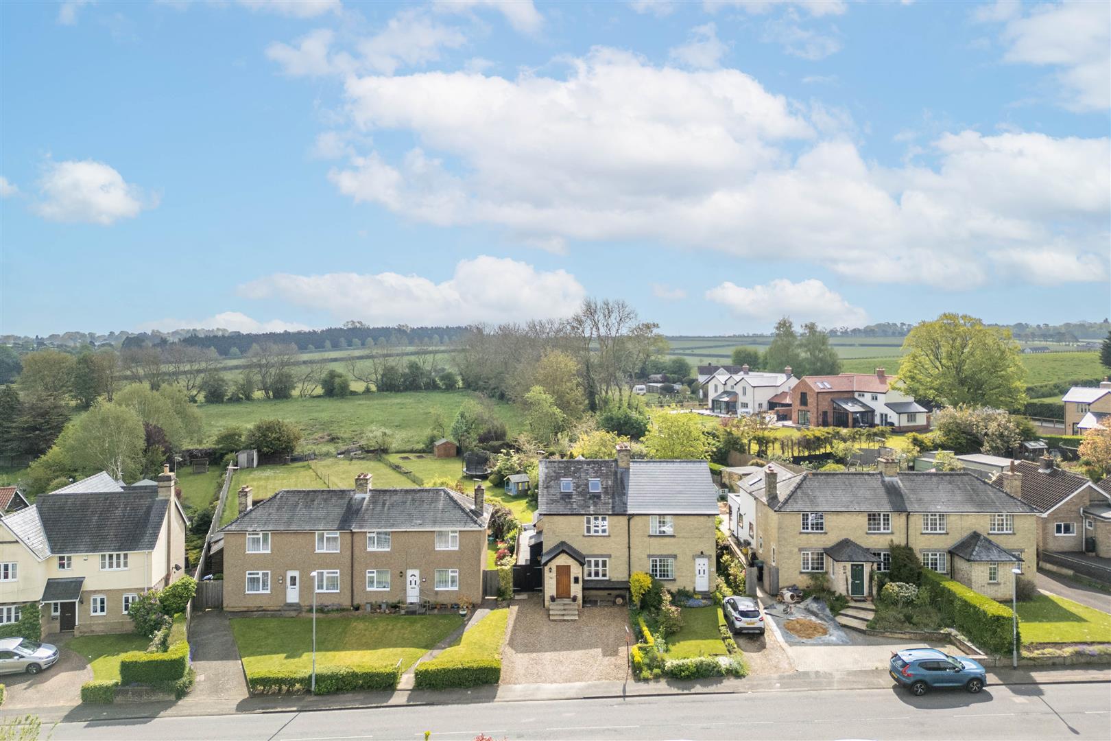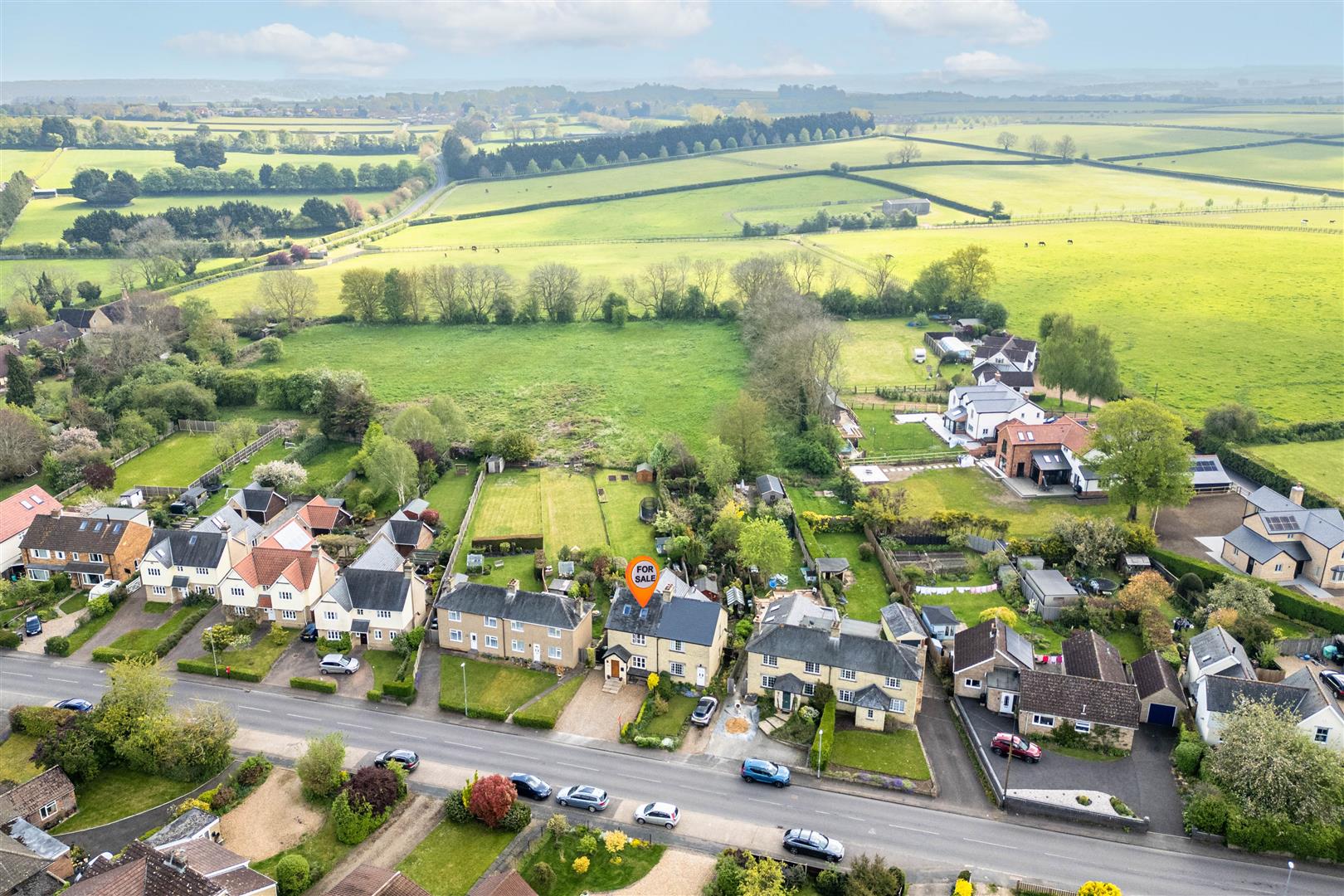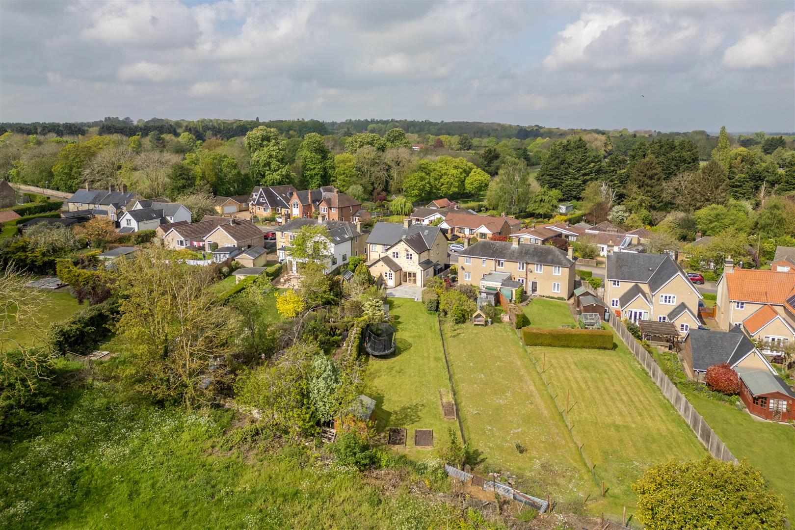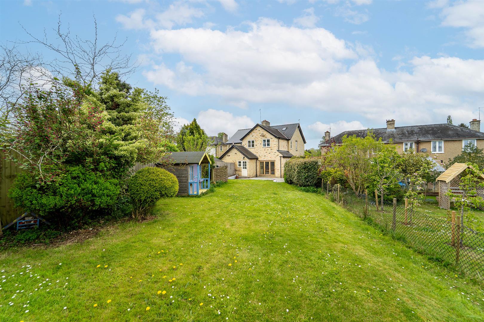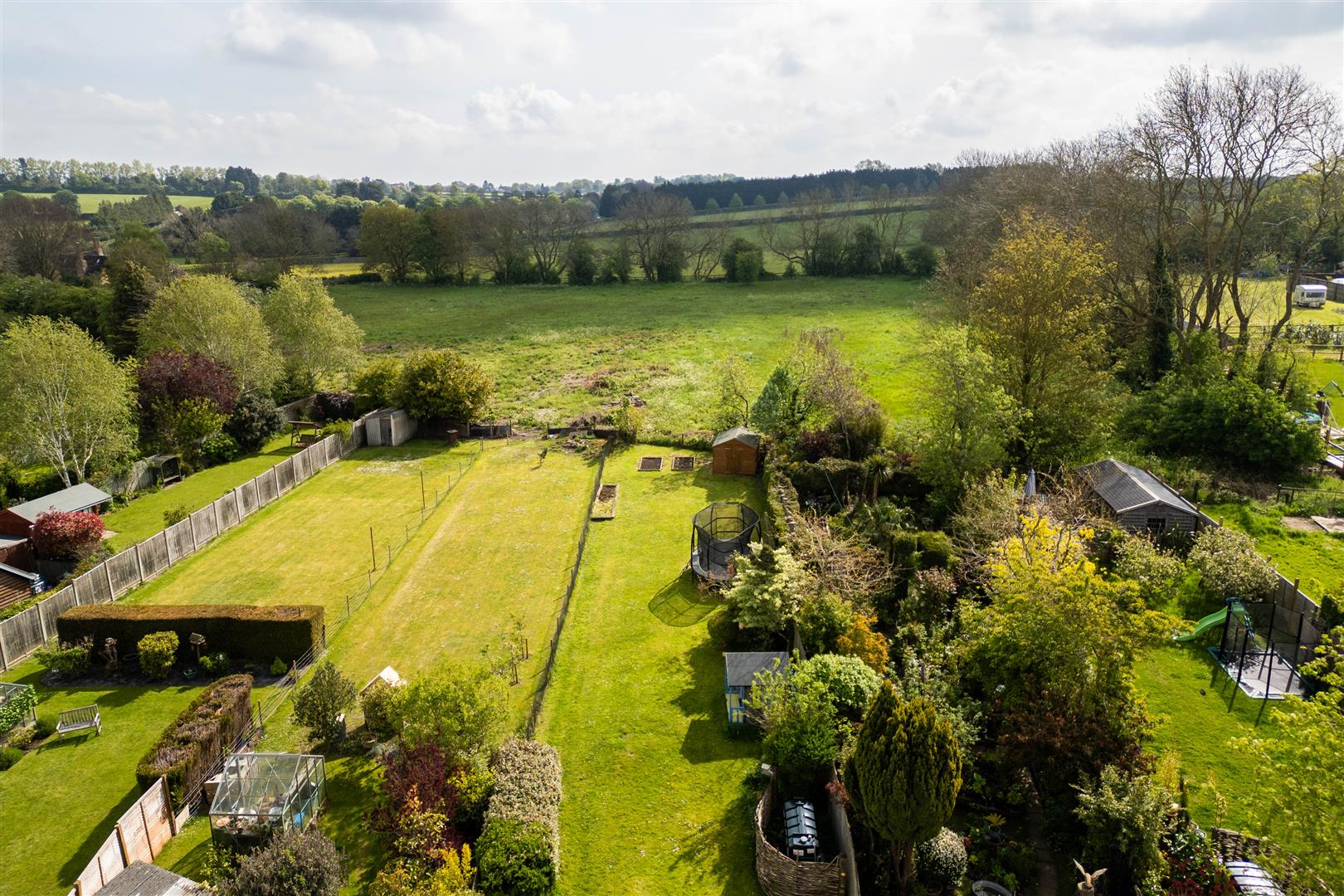Well presented enclosed rear garden with an extensive paved patio with steps leading up to the lawn area with a variety of mature shrubs, raised flower beds, wooden playhouse, timber garden shed and delightful views over looking the open fields. Approx. 110 ft.