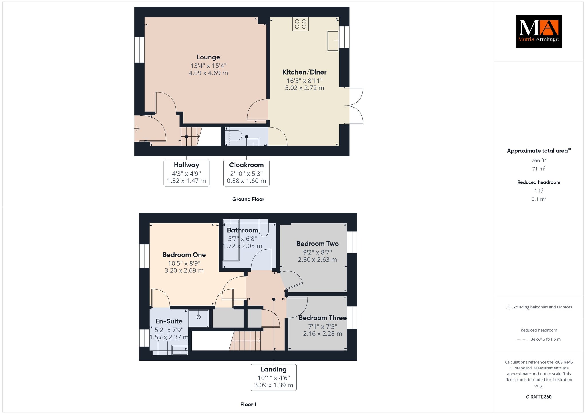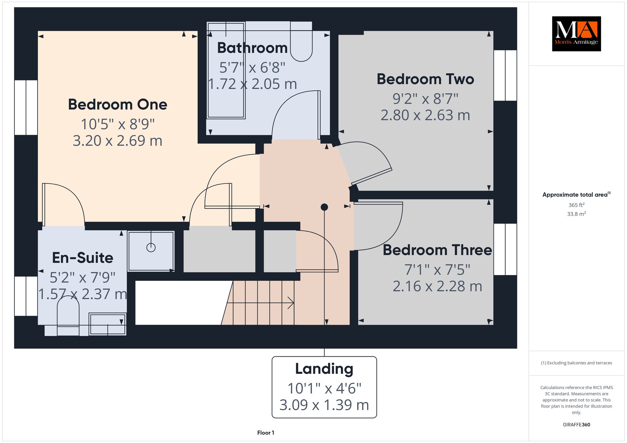 Bedroom One 10’5” x 8’9” (3.20m x 2.69m)