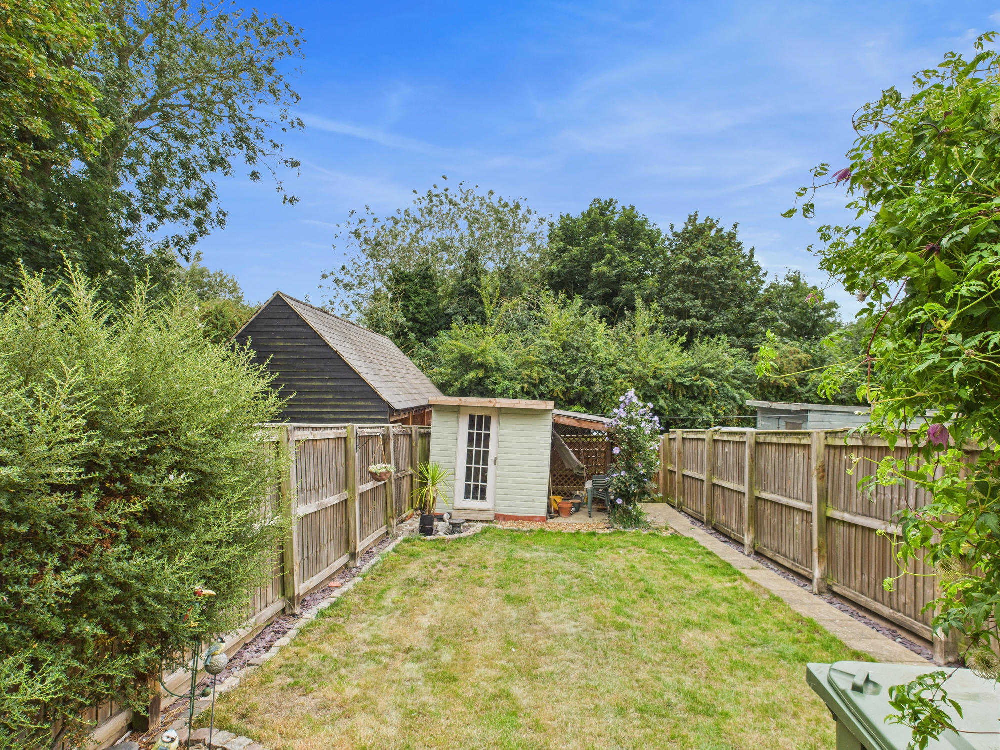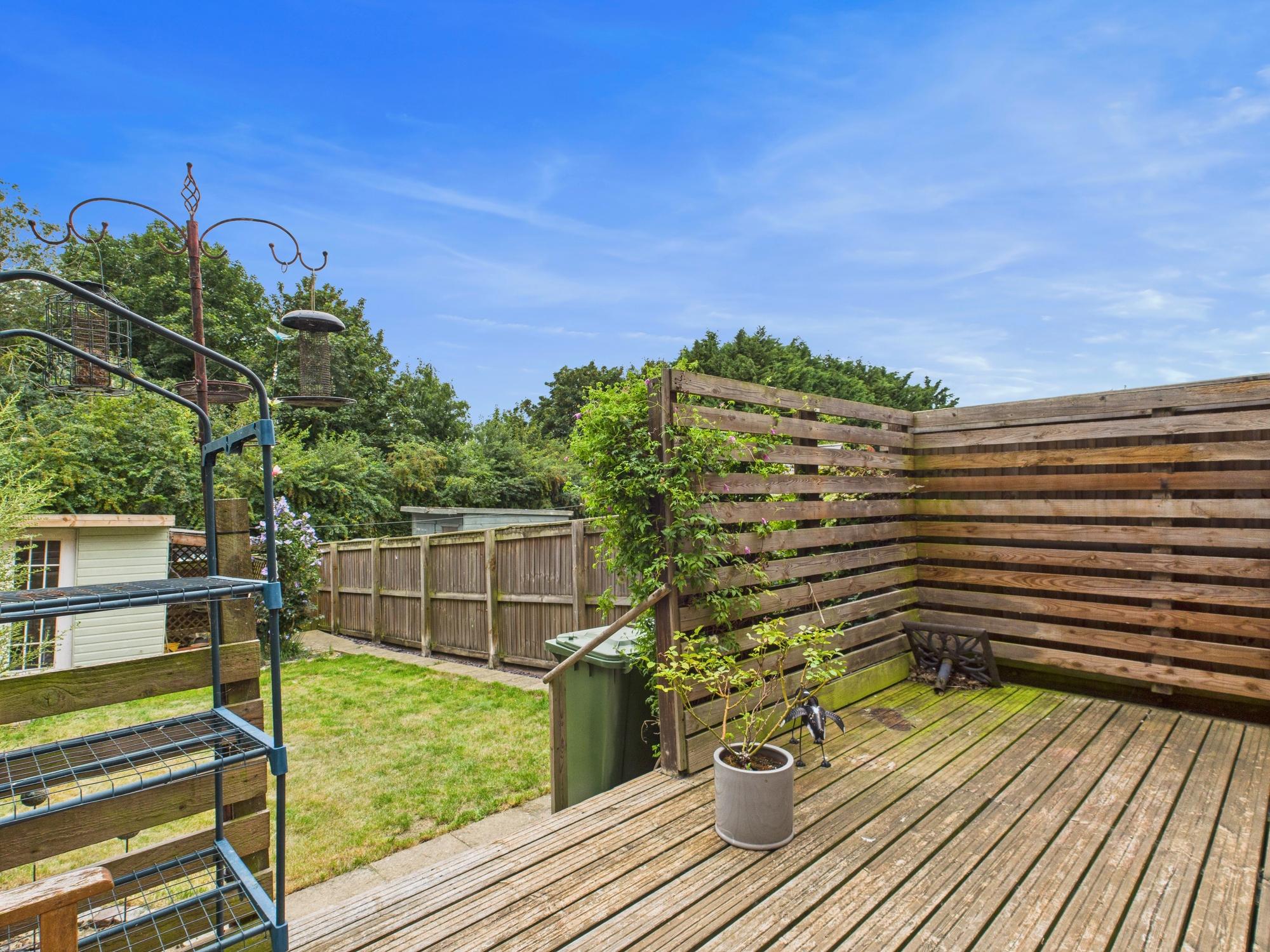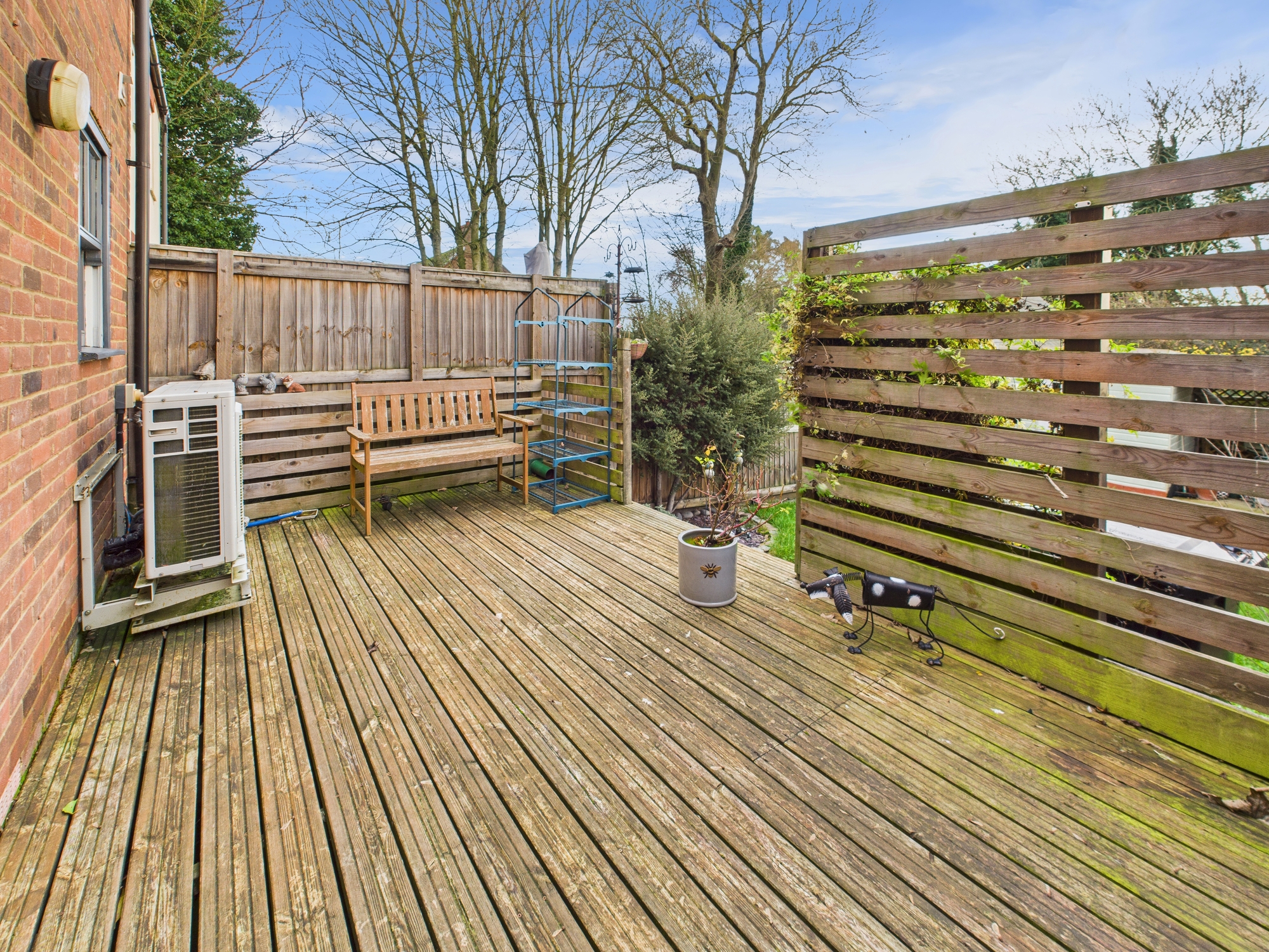 The front of the property is laid to slate with some shrubs inset enclosed by a low level brick wall with a path leading to the front door. There is a shared driveway giving access to the rear where there are two parking spaces within a shared carport. Directly behind the property there is a decking area with steps down to the garden. This area is mainly laid to lawn with slate to borders and a wooden storage shed inset with a pedestrian gate leading through to the carport.