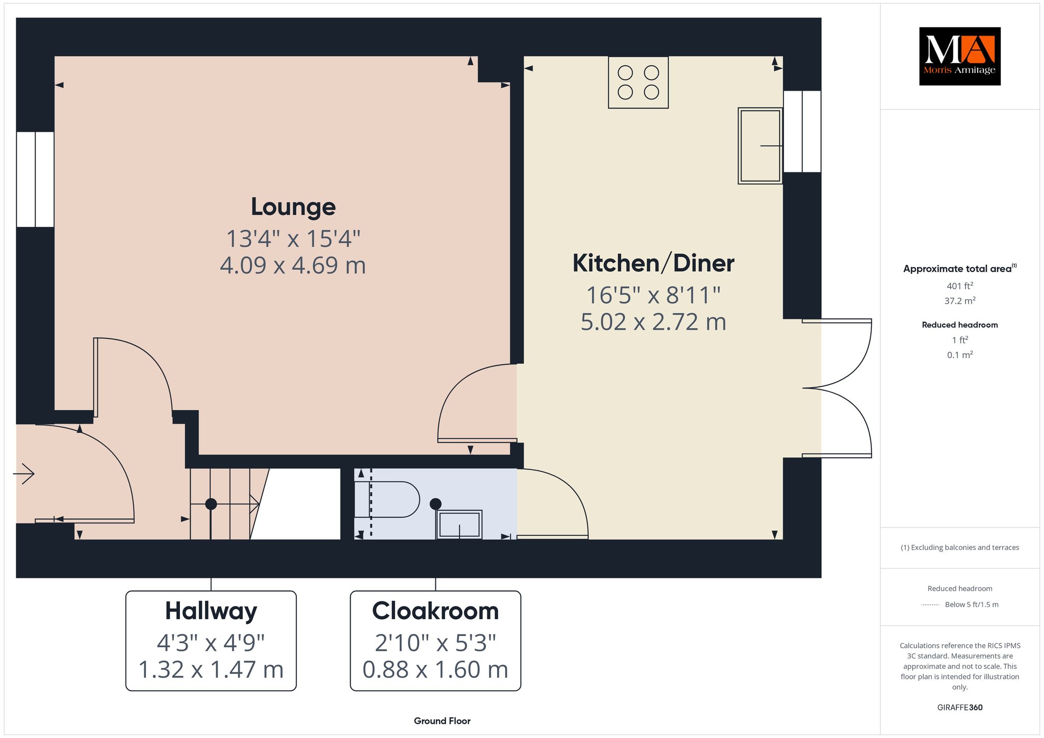 Kitchen/ Diner 16'5” x 8’11" (5.02m x 2.72m)