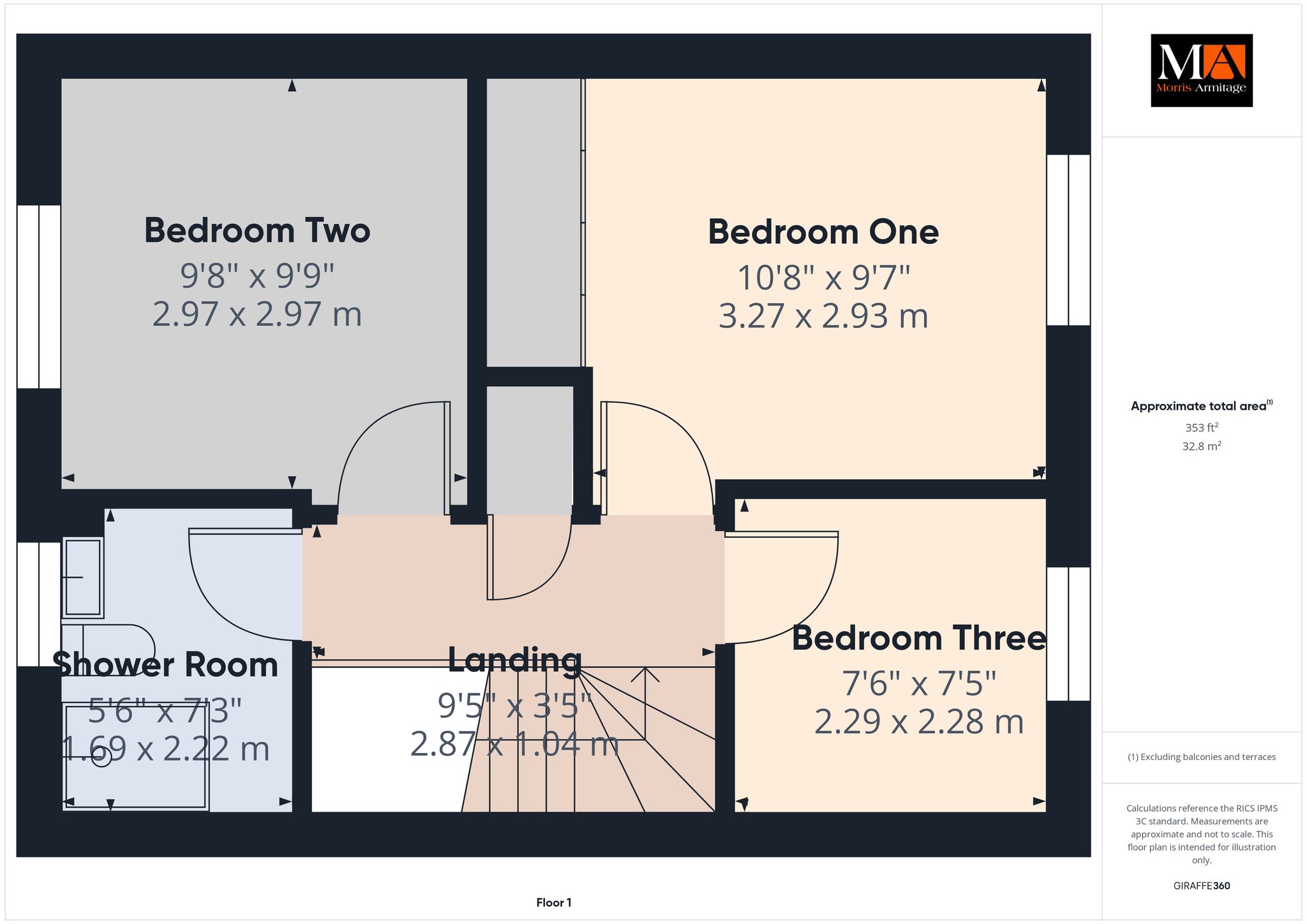 Bedroom One 10’8” x 9’7” (3.27m x 2.93m)