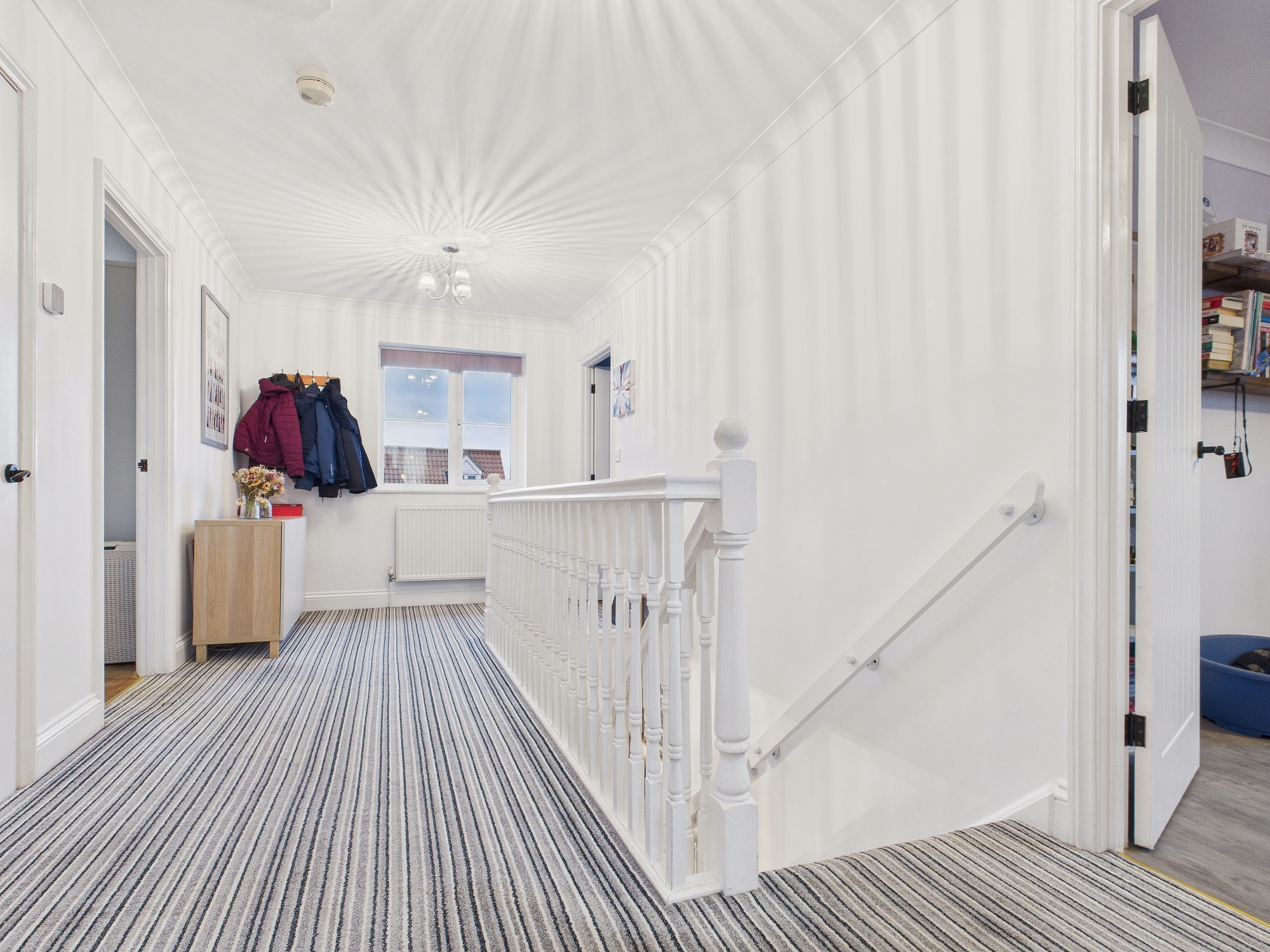 uPVC double glazed window to the front, wall mounted double panel radiator, loft hatch with ladder, door to airing cupboard housing hot water cylinder and shelving, coved ceiling, doors to all rooms.