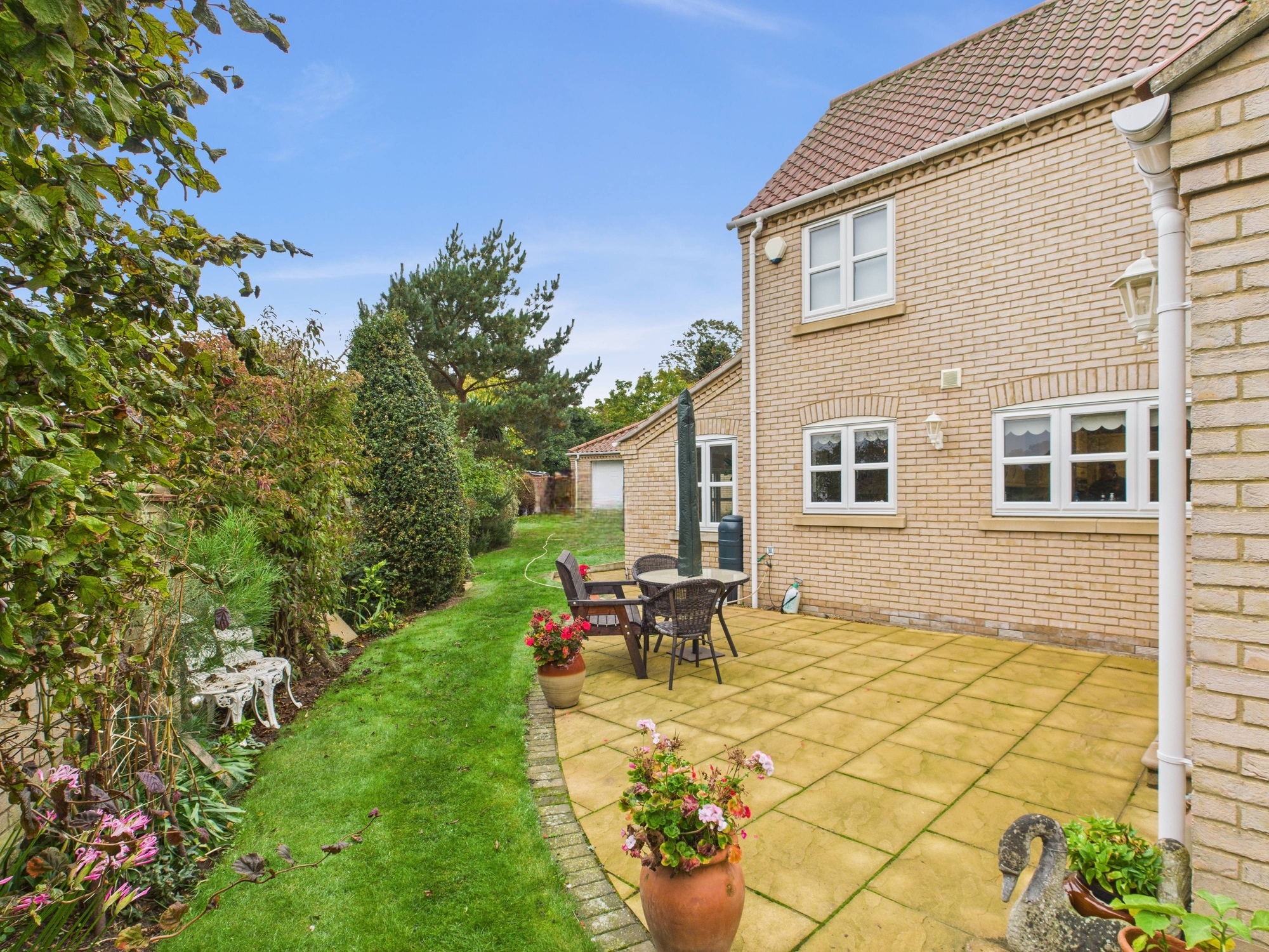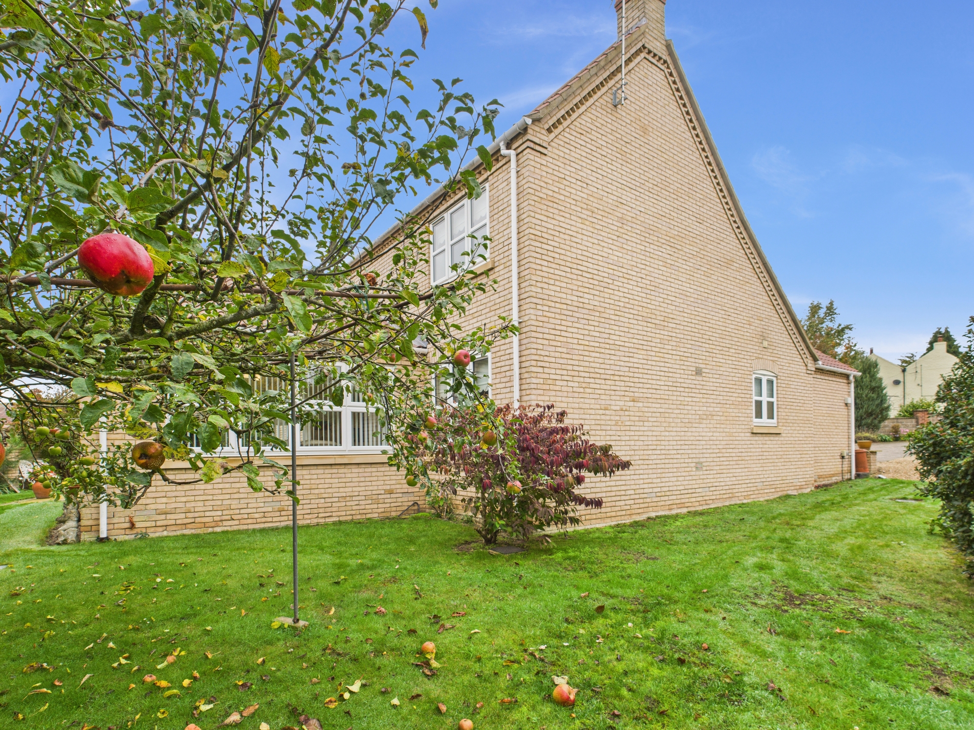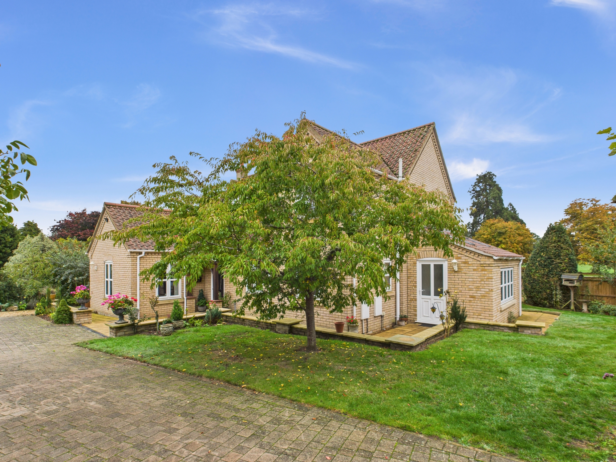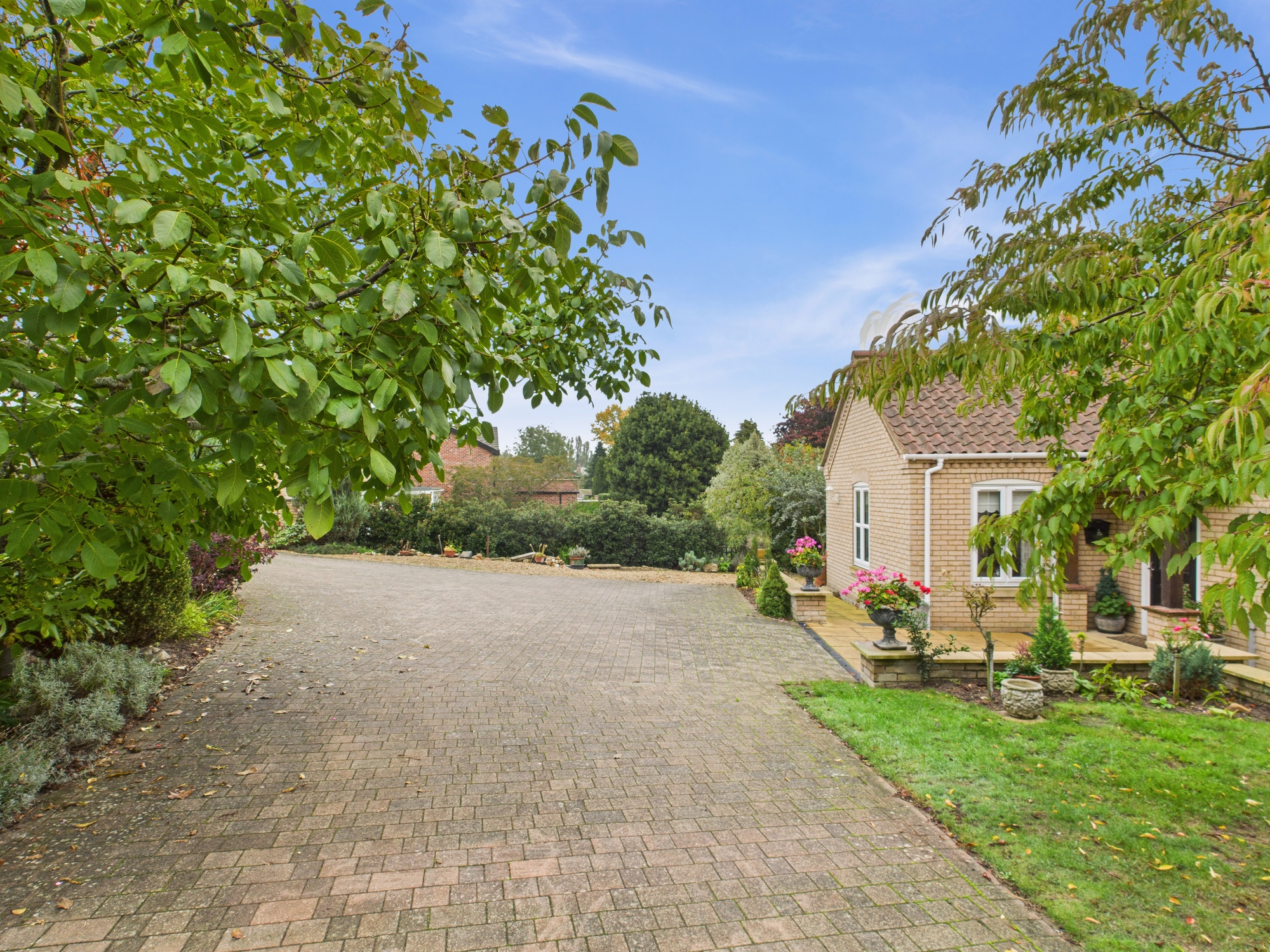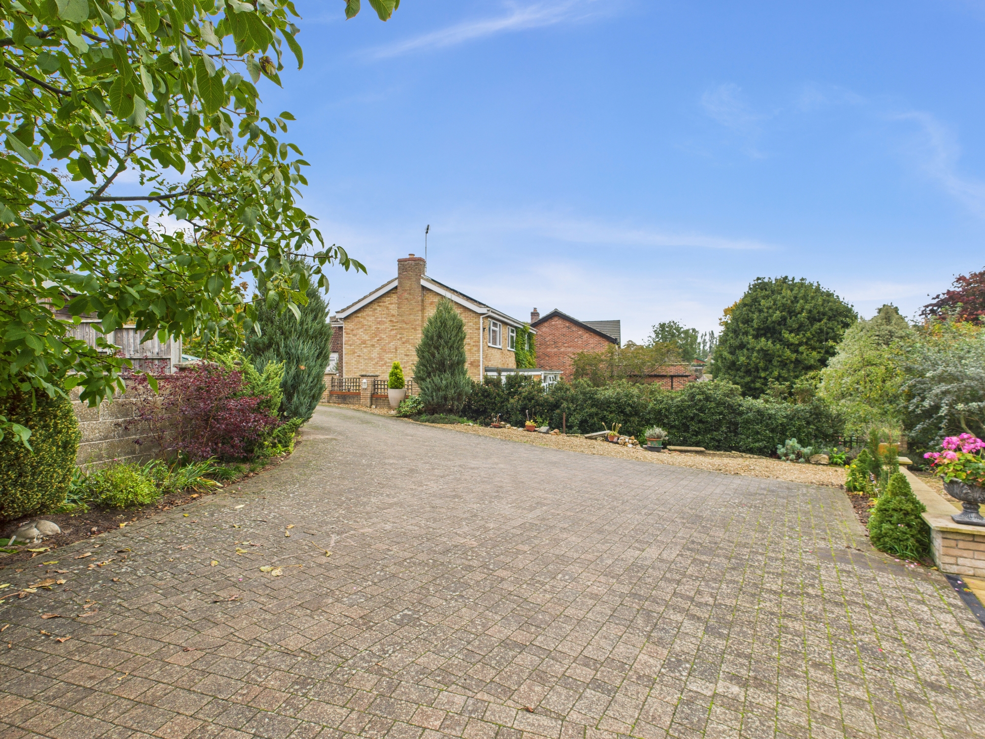 The property is approached via a long driveway opening to a block paved area providing parking for multiple vehicles. This then continues to the detached, tandem garage. Also to the front, there are areas of lawn and borders housing various plants and shrubs. Paving extends down to the front entrance door with a low-level brick wall directly in front. A pathway continues around to the side and extends around the rear to the patio. Overall, there is over a third of an acre of grounds and gardens. Lawns wrap around both sides and directly to the rear, with a multitude of trees (including fruit trees), mature shrubbery, plants and flowers dispersed throughout. The largest area of garden sweeps down to the side where there is also a further garage/storage building. Overall, the house enjoys a high level of privacy throughout the garden.