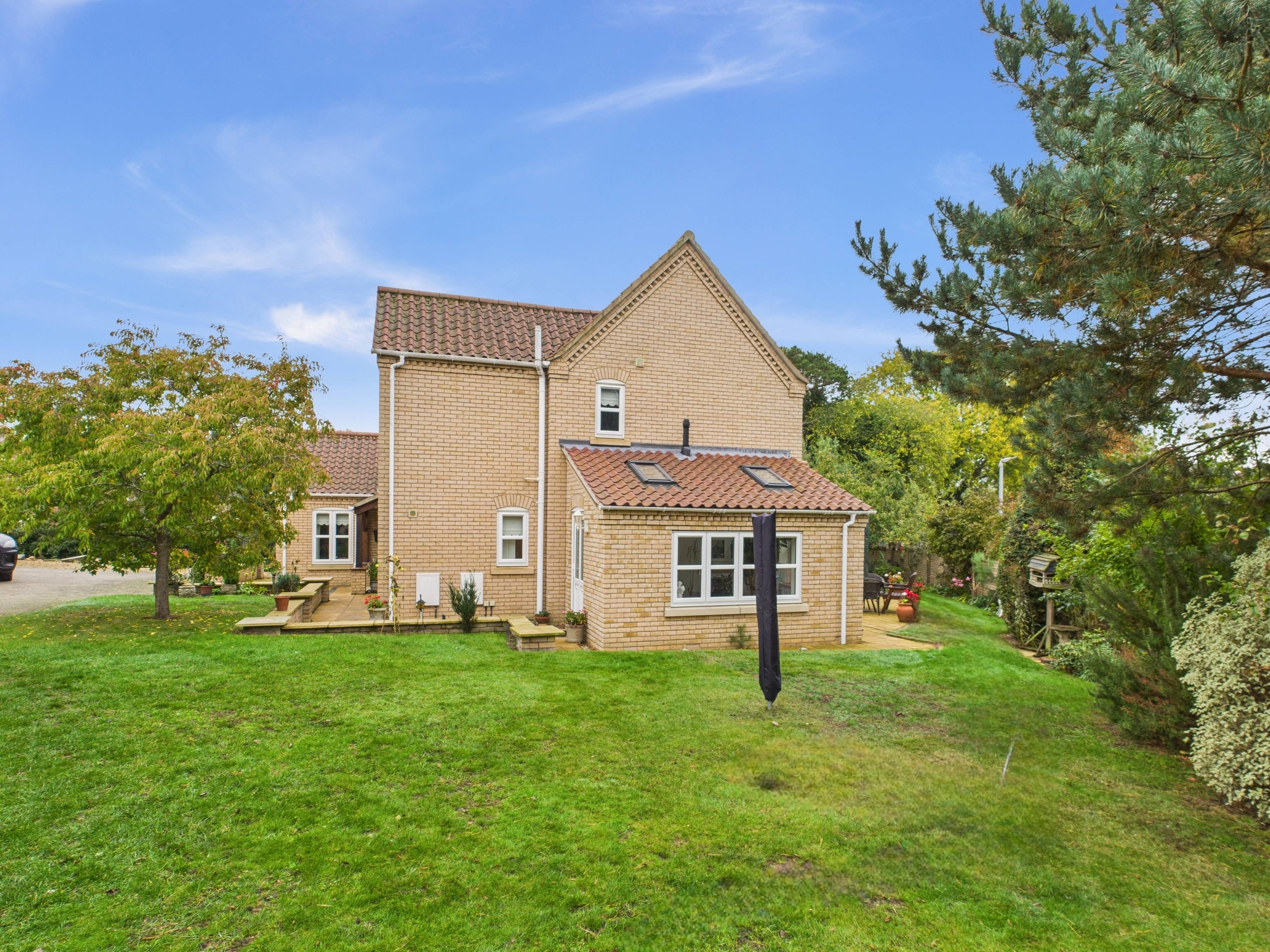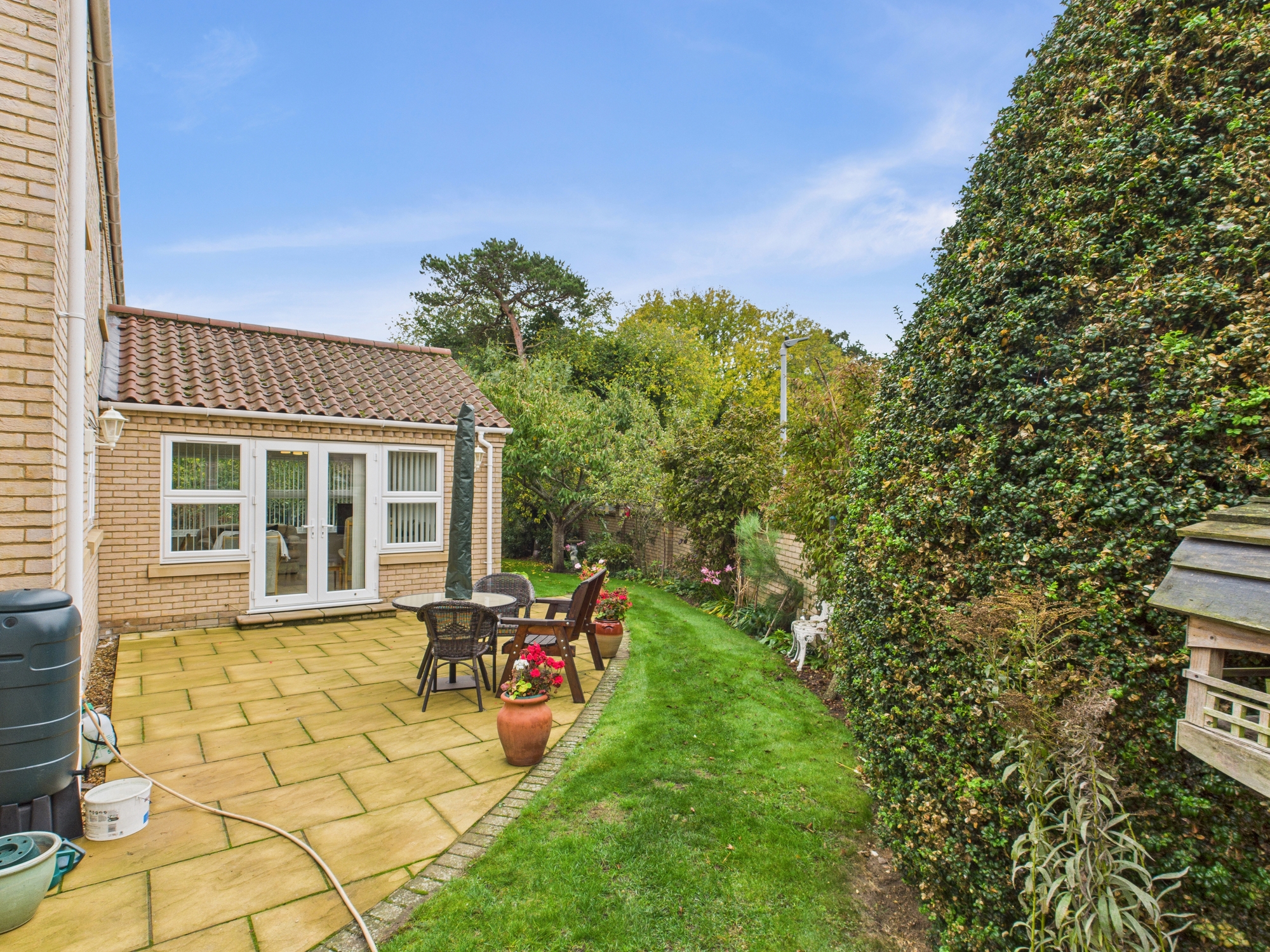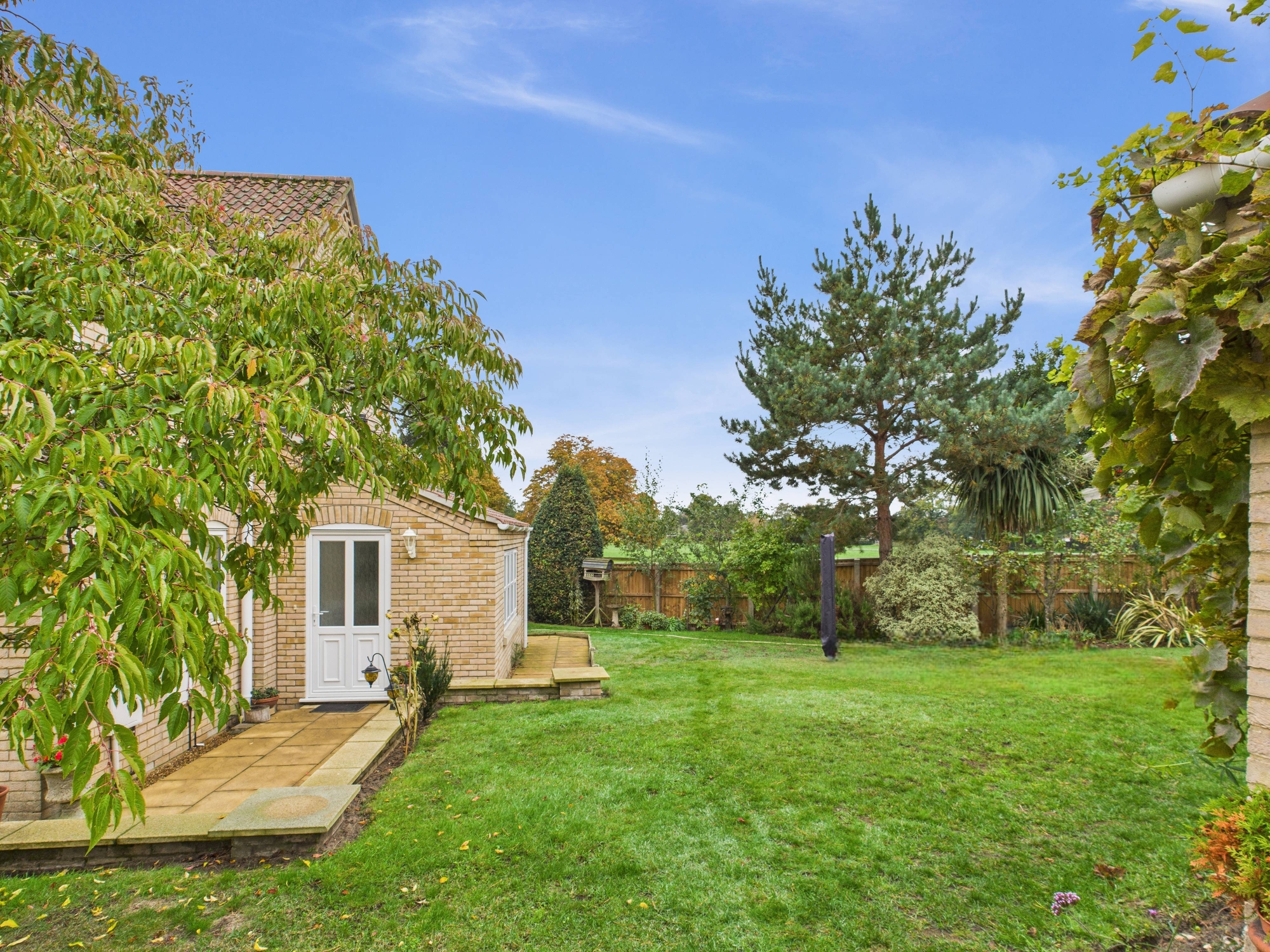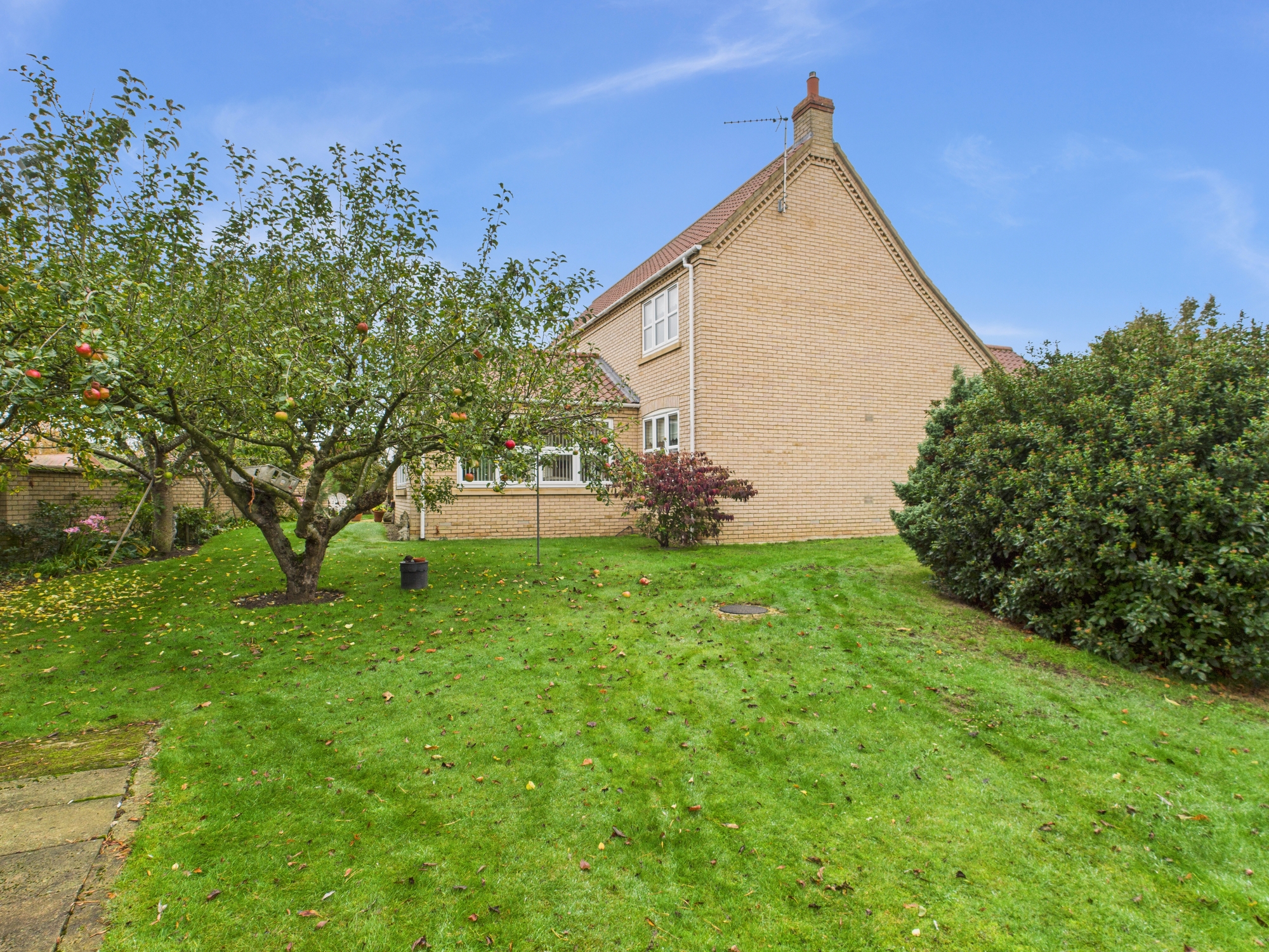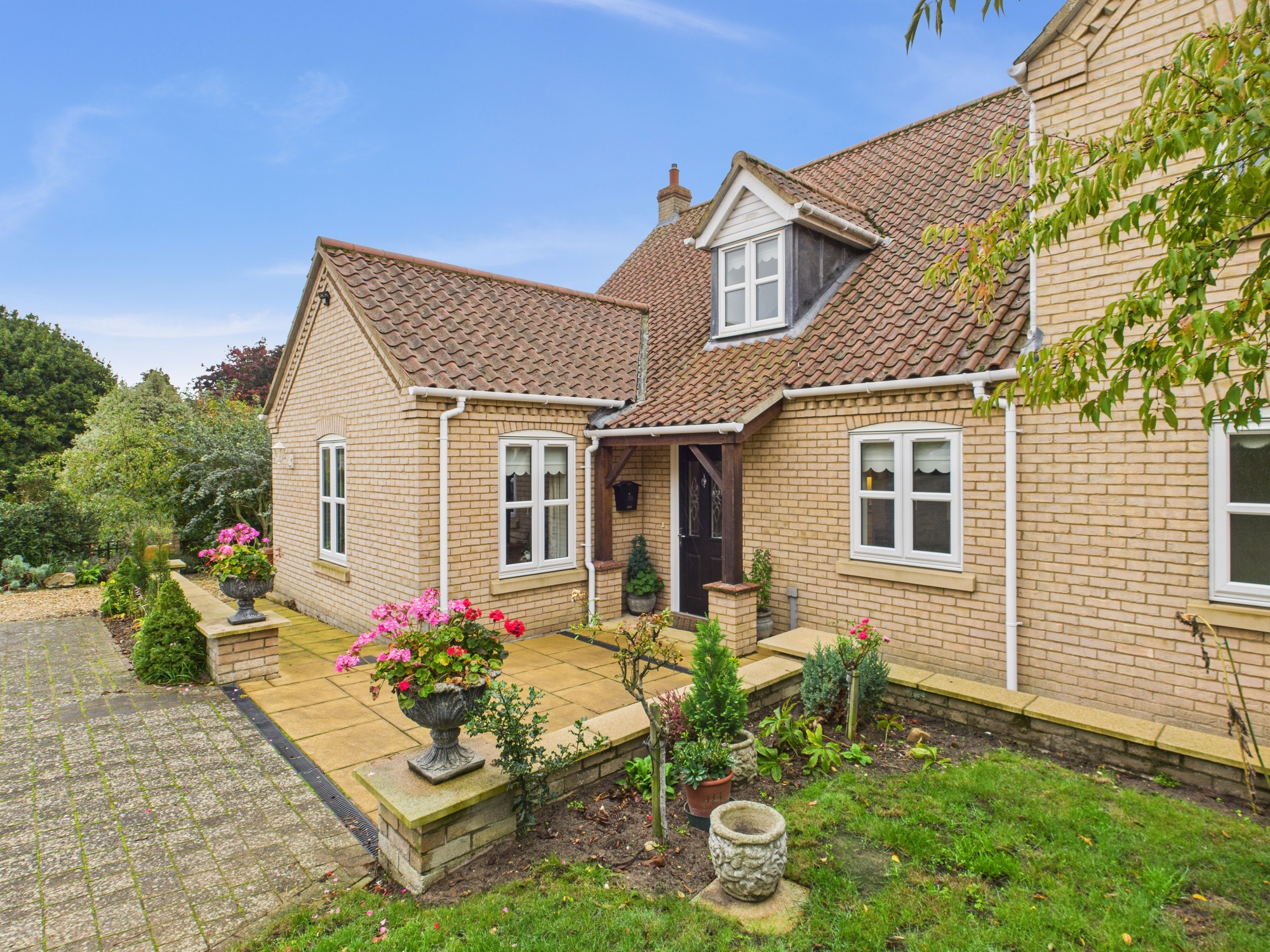 The property is approached via a long driveway opening to a block paved area providing parking for multiple vehicles. This then continues to the detached, tandem garage. Also to the front, there are areas of lawn and borders housing various plants and shrubs. Paving extends down to the front entrance door with a low-level brick wall directly in front. A pathway continues around to the side and extends around the rear to the patio. Overall, there is over a third of an acre of grounds and gardens. Lawns wrap around both sides and directly to the rear, with a multitude of trees (including fruit trees), mature shrubbery, plants and flowers dispersed throughout. The largest area of garden sweeps down to the side where there is also a further garage/storage building. Overall, the house enjoys a high level of privacy throughout the garden.