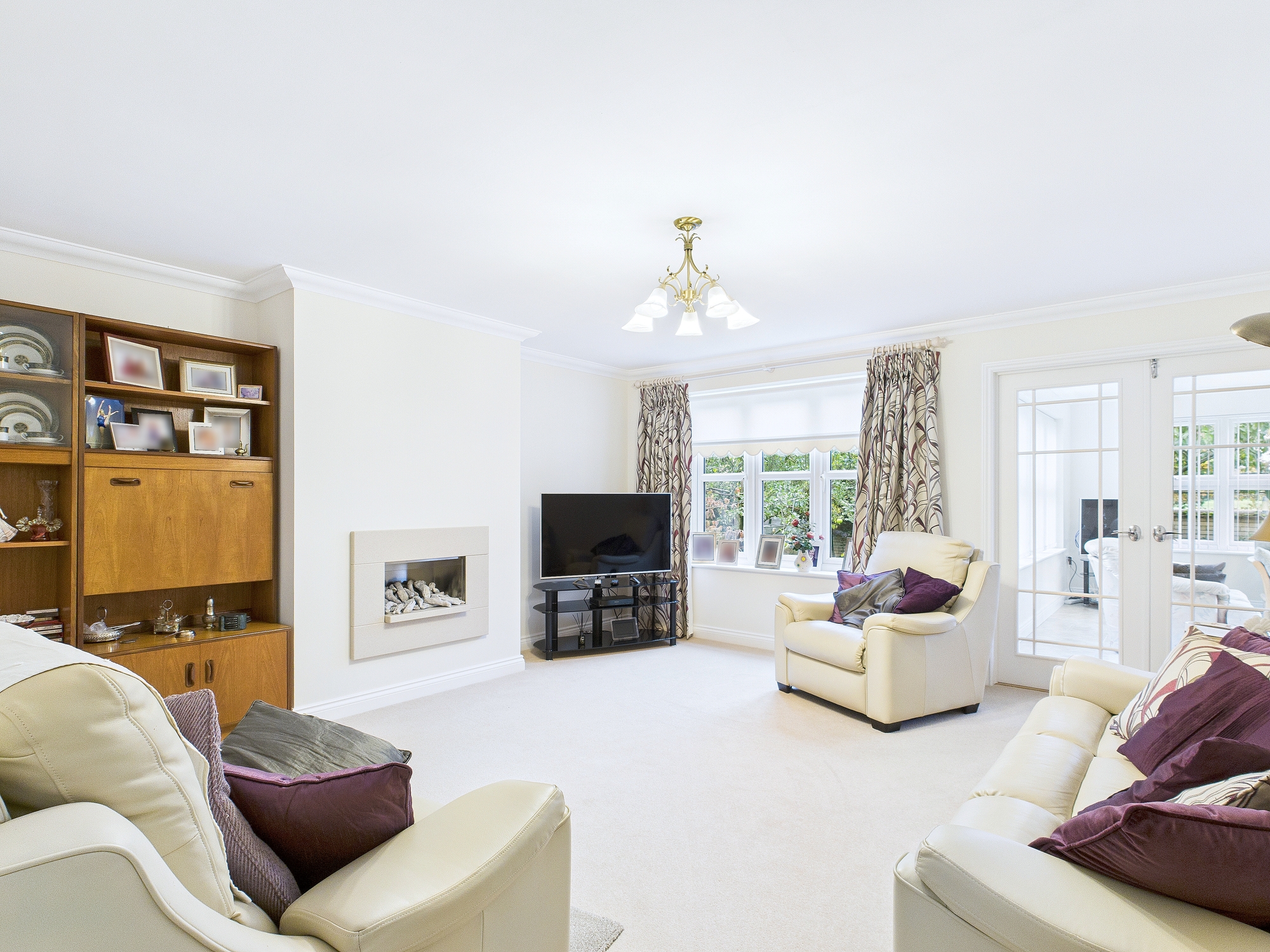 uPVC double glazed window to the rear aspect, central fireplace with inset log effect, gas fireplace, coved ceiling, glazed double opening doors leading to the garden room.