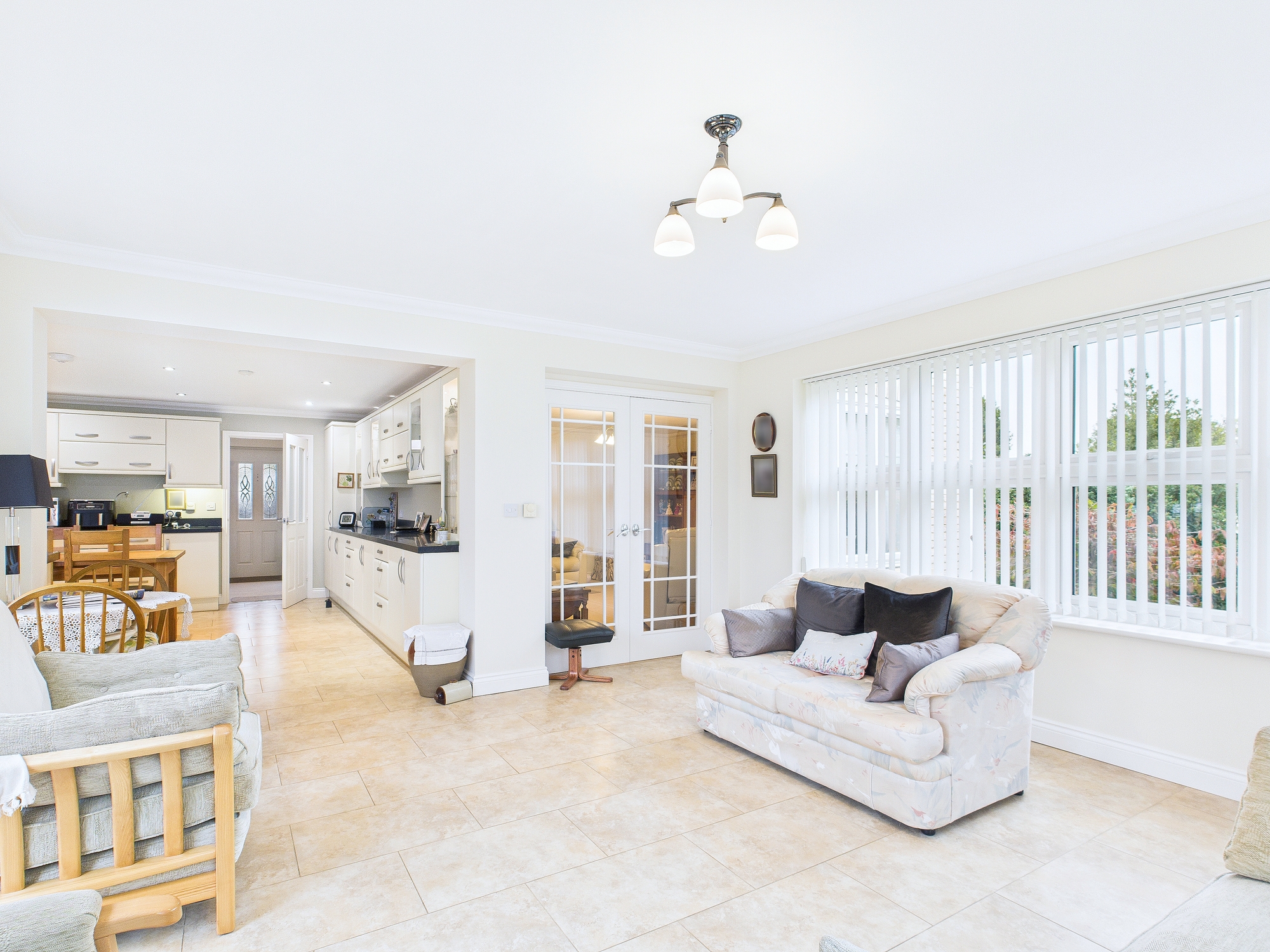 uPVC double glazed windows providing a triple aspect over the rear gardens, coved ceiling, uPVC double glazed double opening doors to the rear patio.