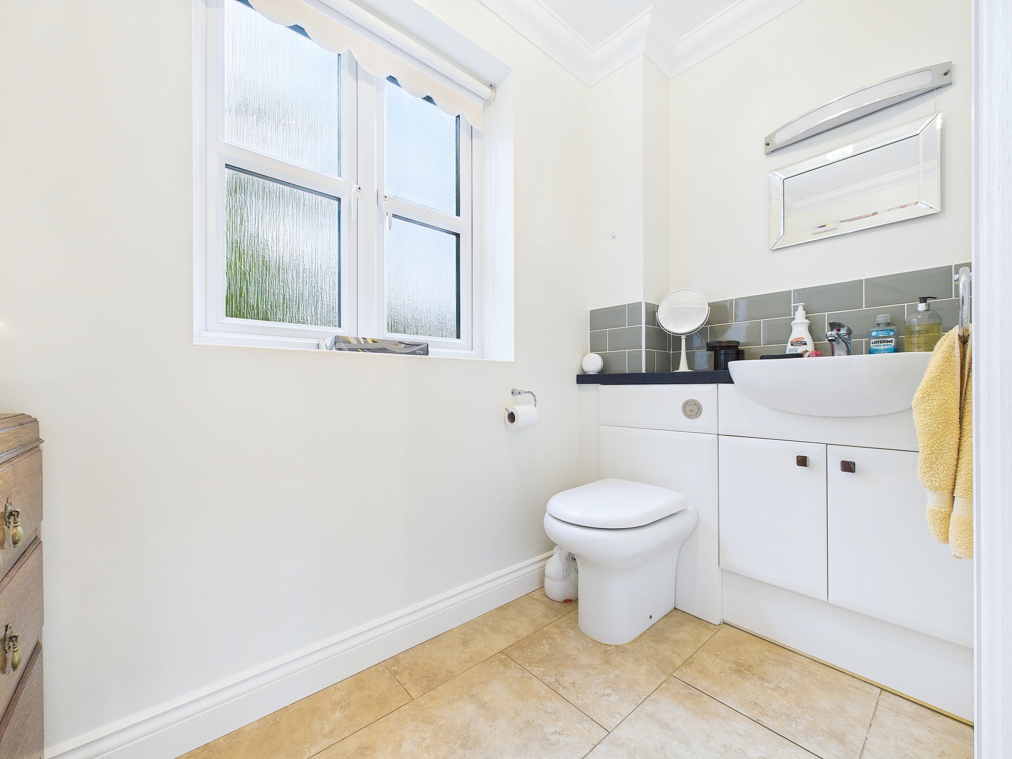 uPVC double glazed window to the front, concealed cistern w.c, with handwash basin inset, ceramic floor tiling, coved ceiling, extractor.