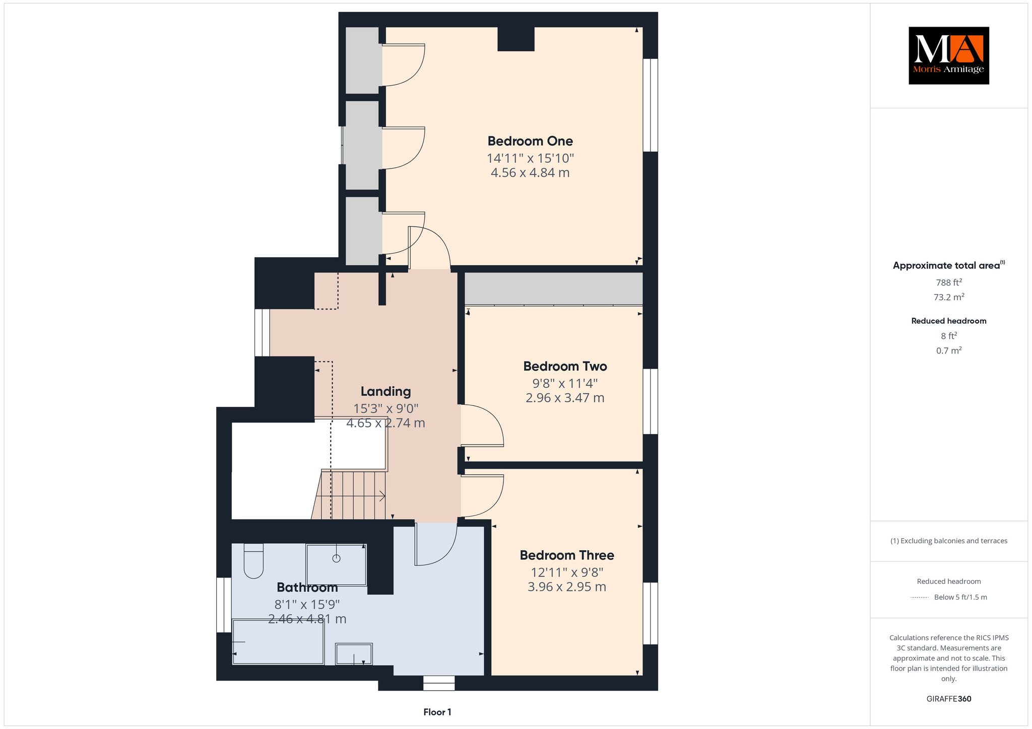 Bedroom One 15’10” x 14’11” (4.84m x 4.56m)
