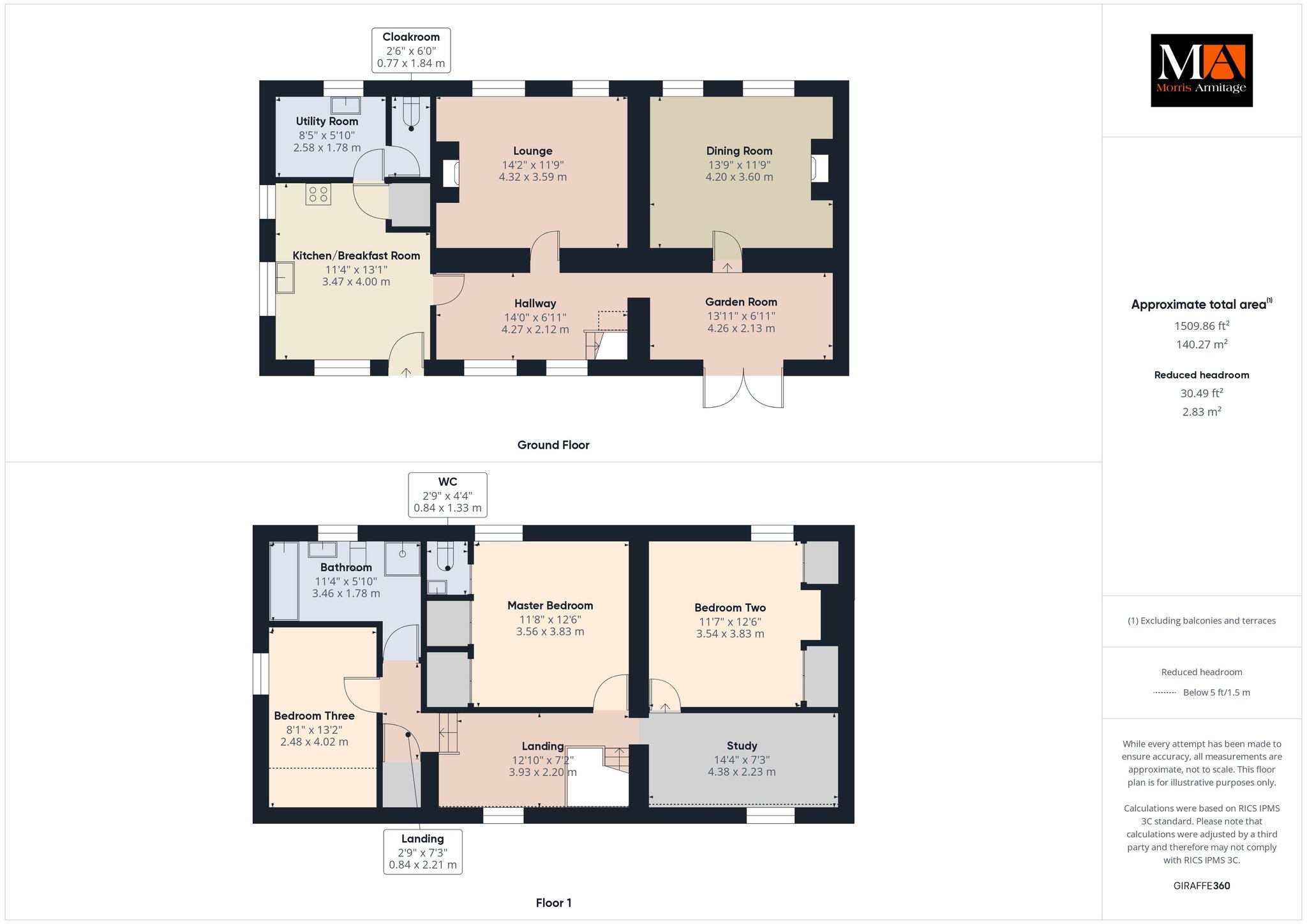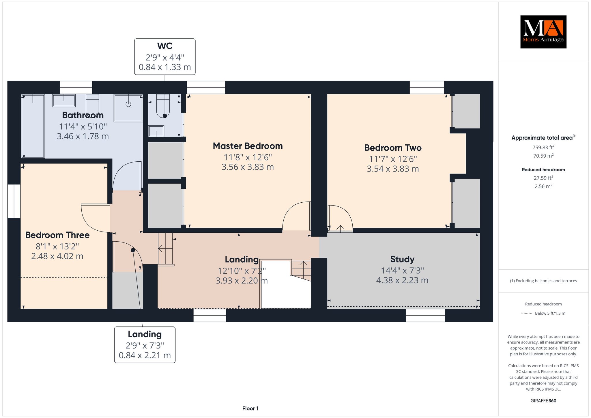 Study Area 14’4” x 7’3” (4.38m x 2.23m)