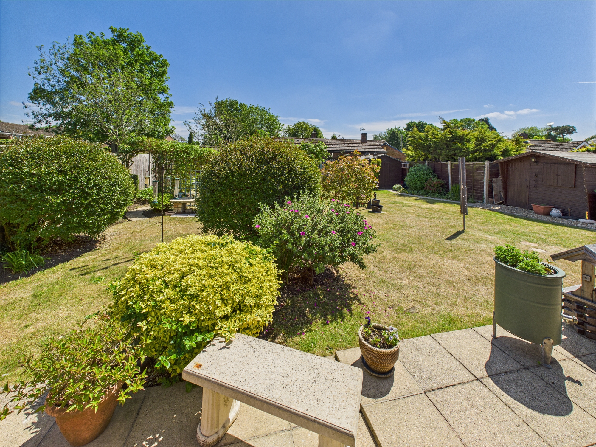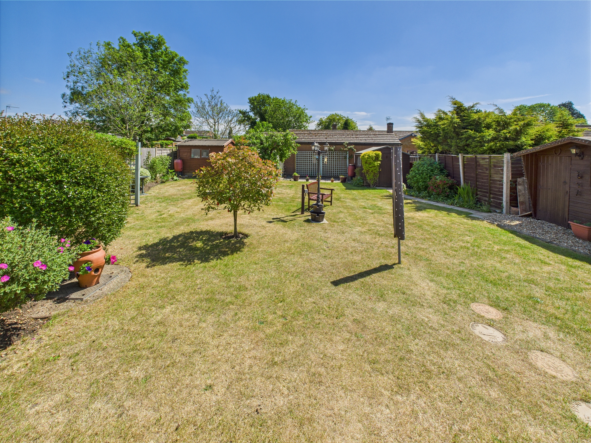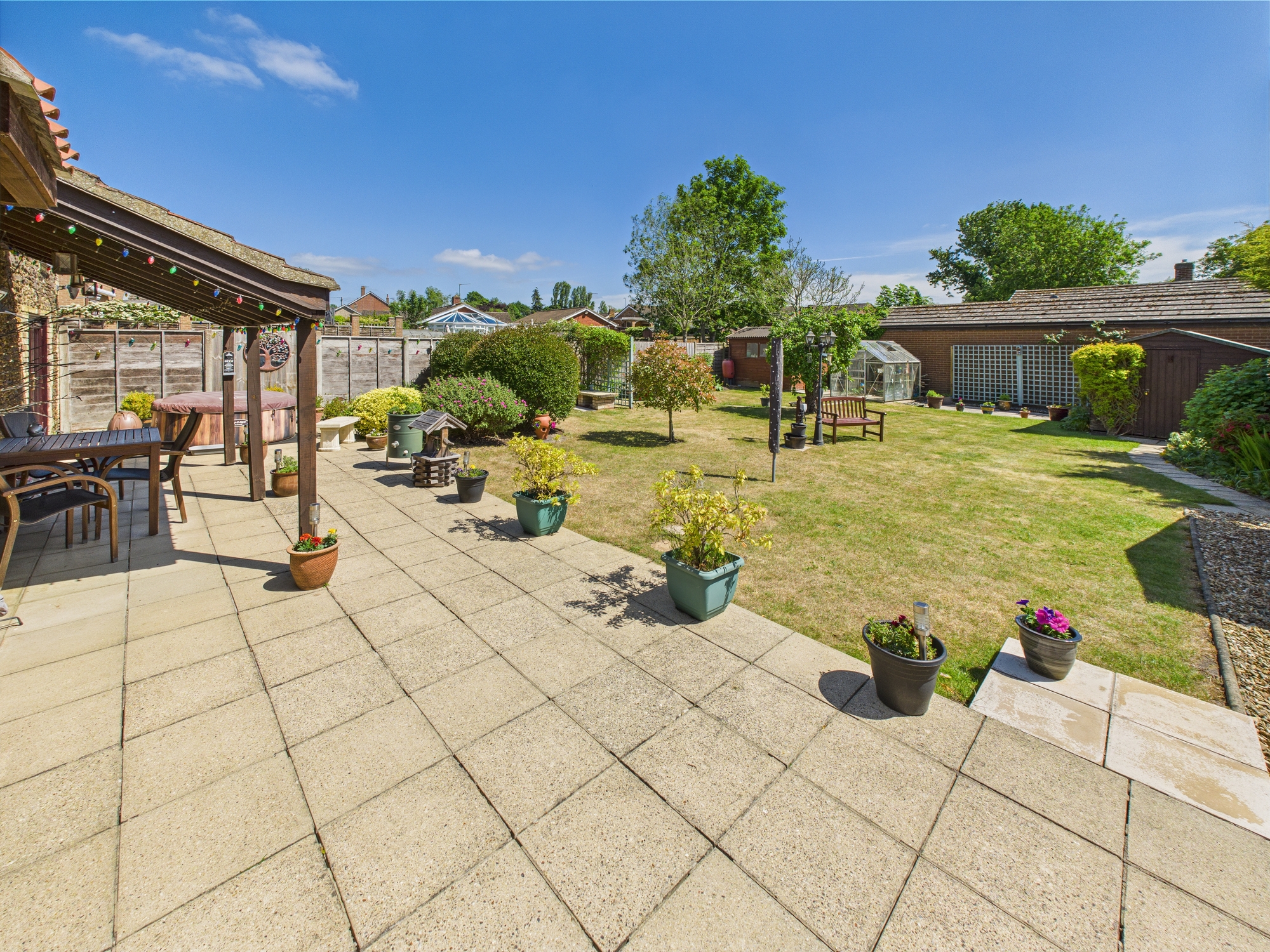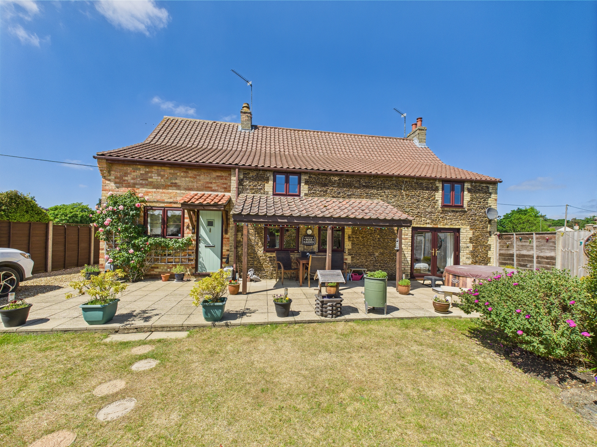 The front of the property is laid to shingle with bushes and shrubs inset with an original wall to the boundary. The shingle continues to the side providing off road parking. The rear garden is mainly laid to lawn with a patio and covered seating area, wooden storage sheds/outbuildings and a greenhouse all enjoying a southern aspect.