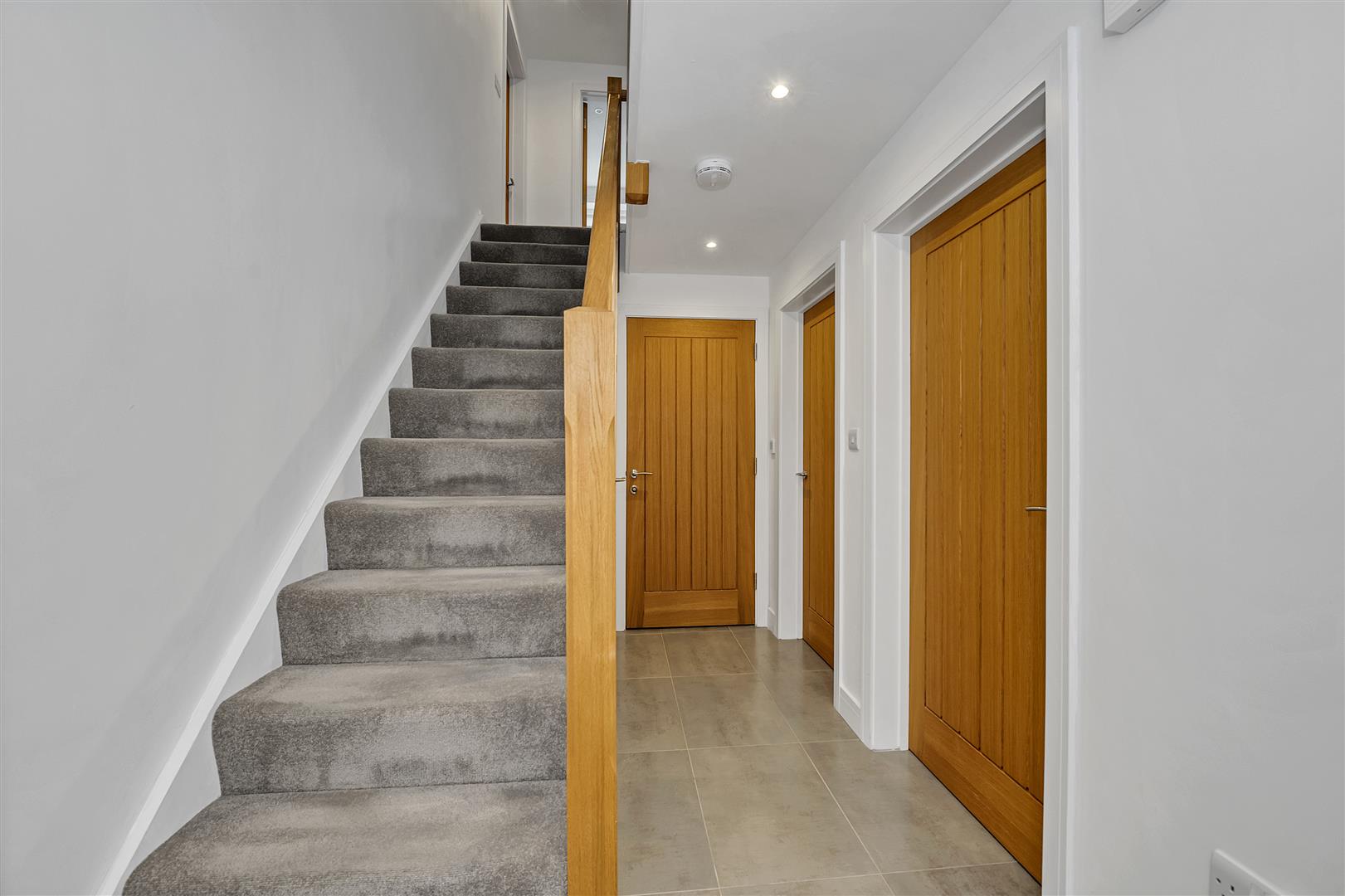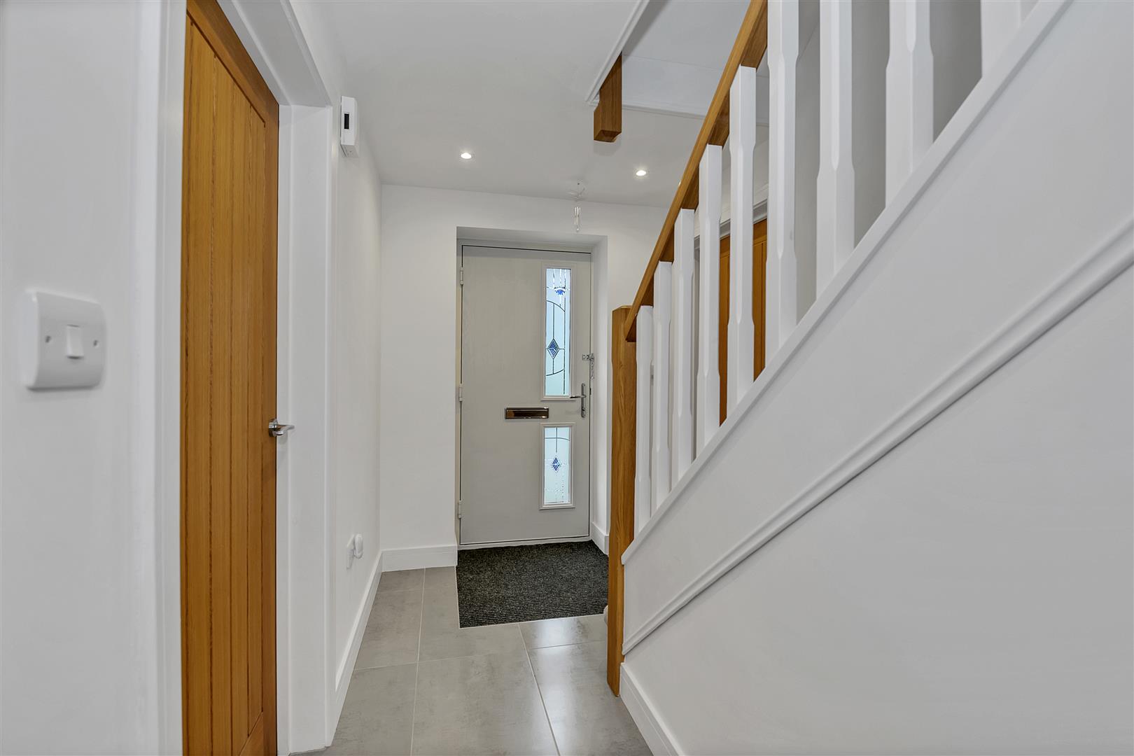 With staircase rising to the first floor, built in under stair storage cupboard, recessed ceiling lighting, doors to: