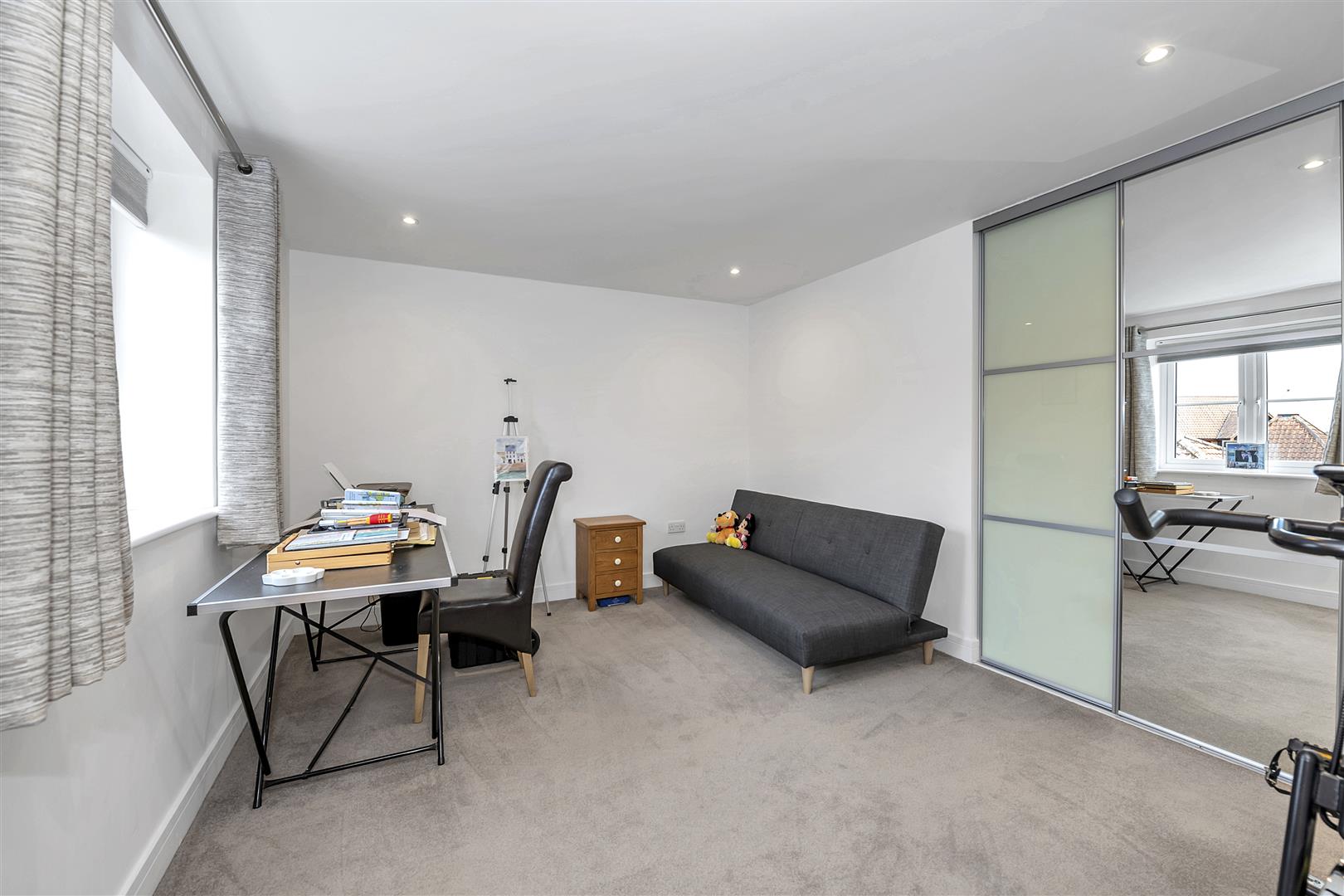 With window to the front aspect, carpeted flooring, recessed ceiling lighting.