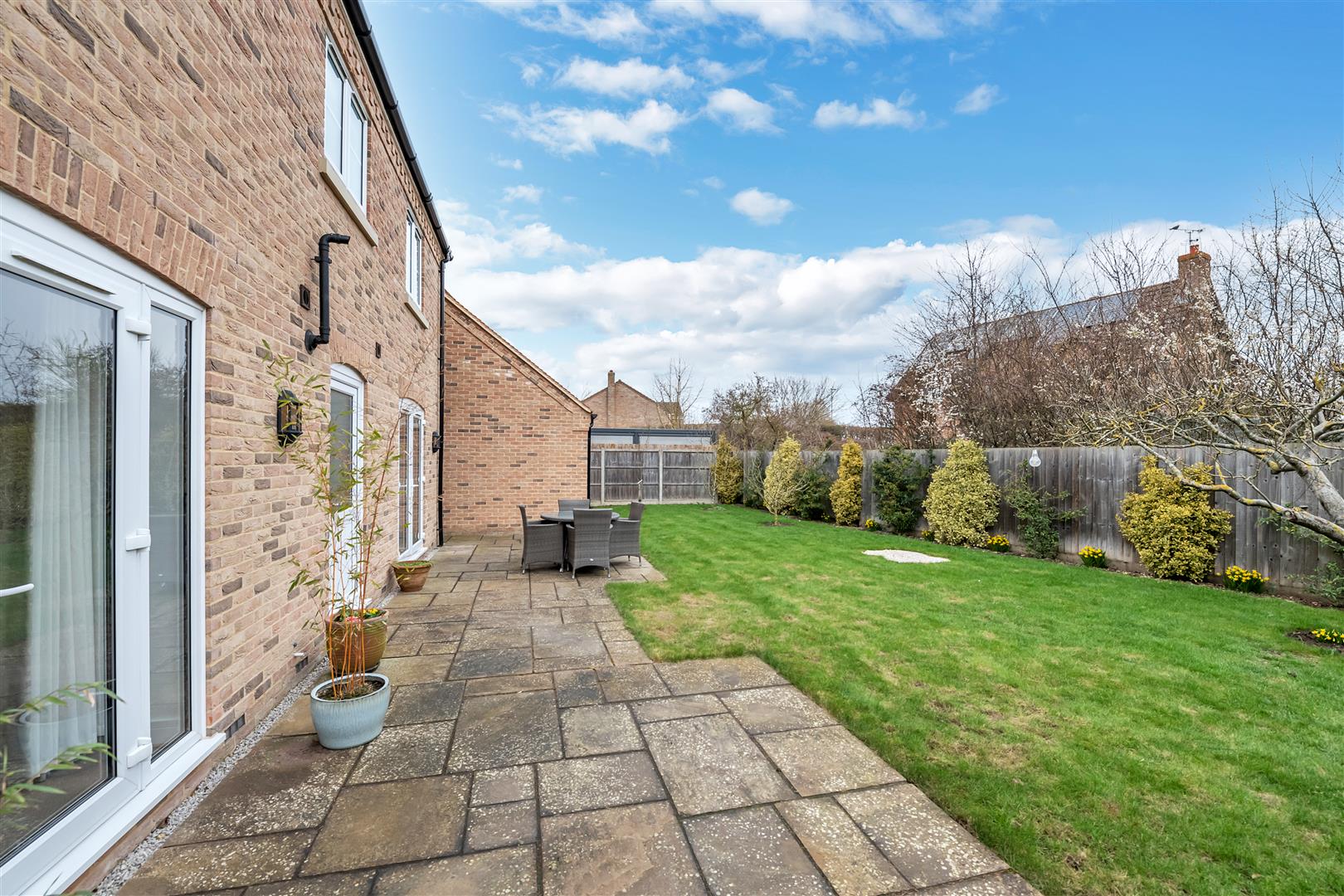 Well presented secluded garden laid mainly to lawn with a variety of shrub borders and fruit trees, patio area and timber fenced surround, outside tap, lighting, with gated access out to the front of the property.